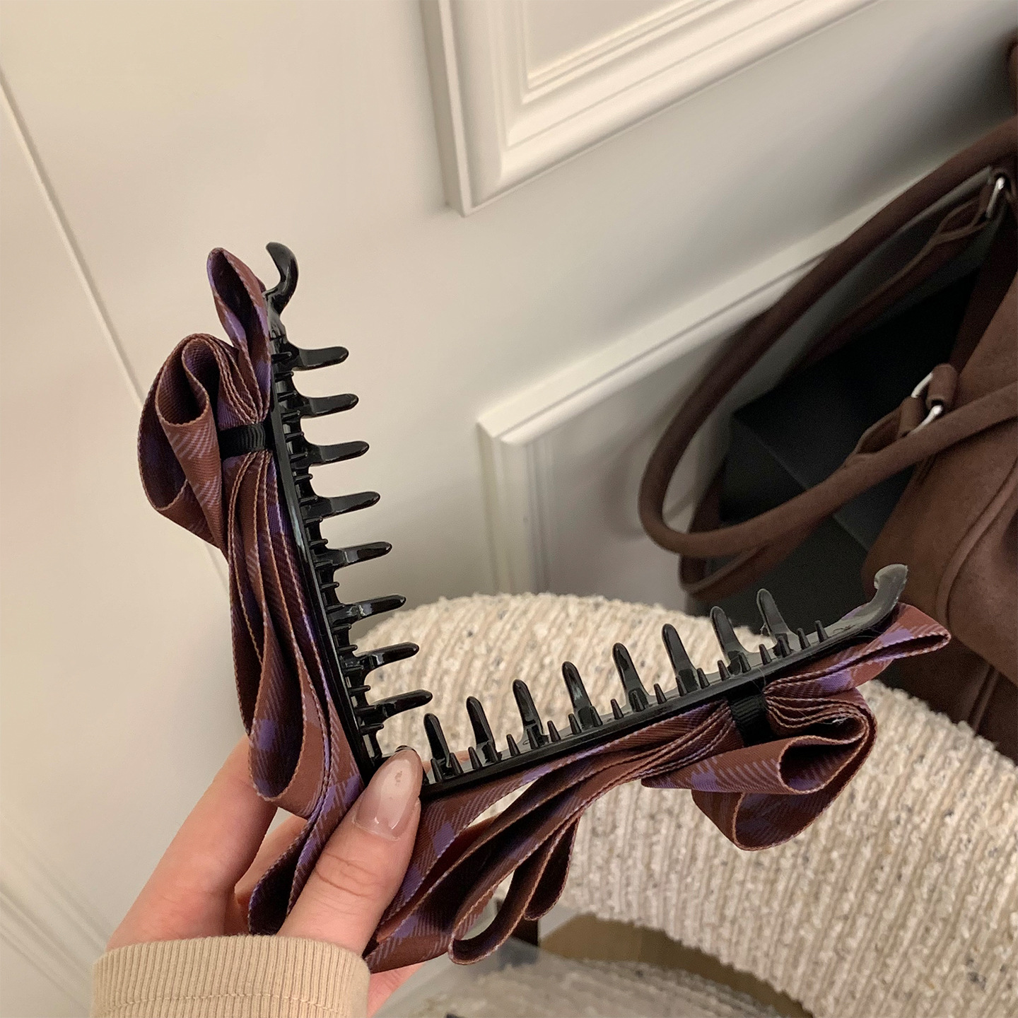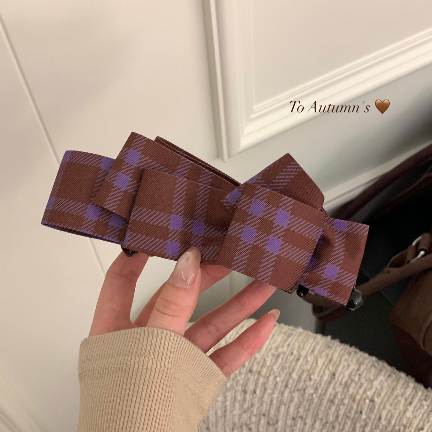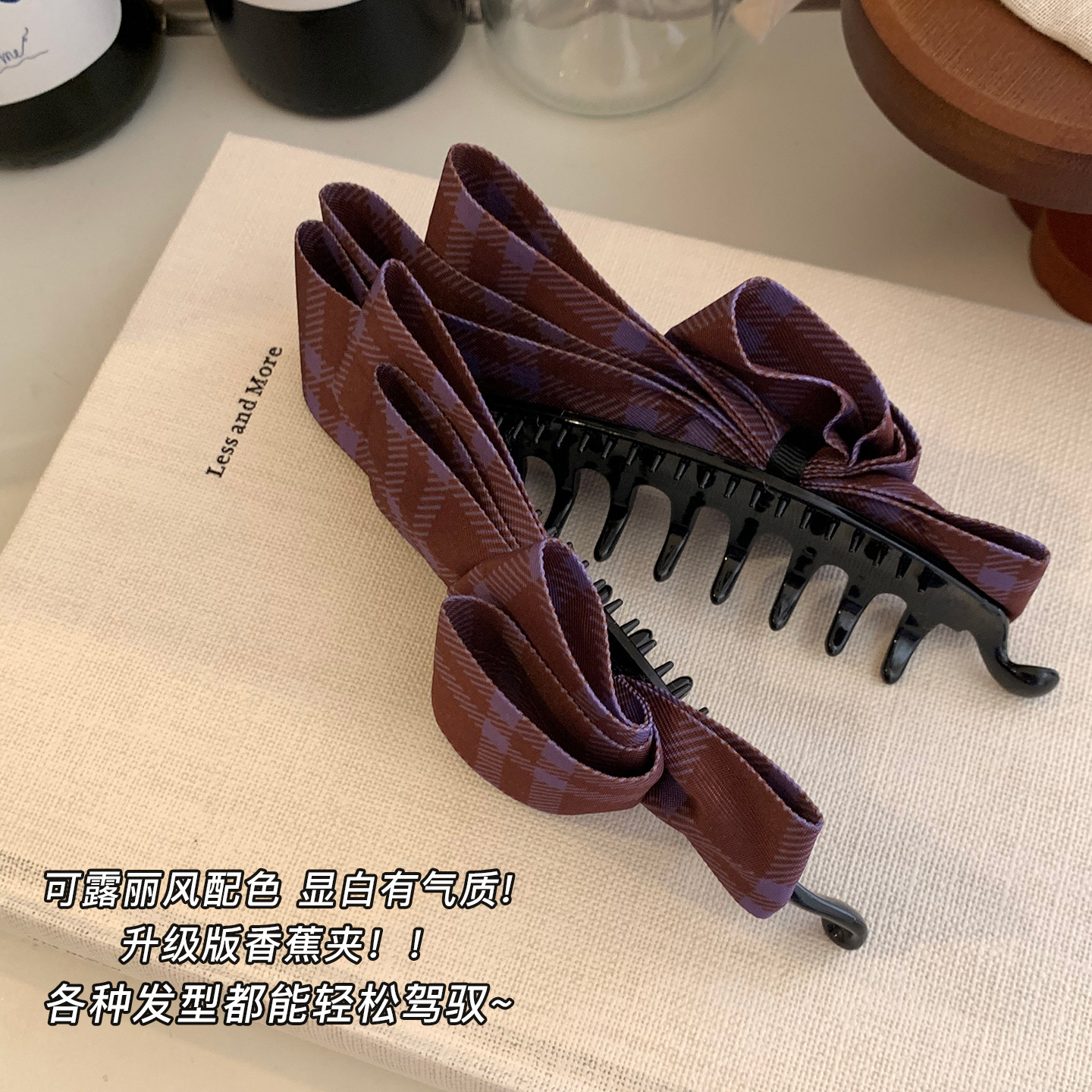 明星同款可露丽紫色格纹香蕉夹女后脑勺发夹高级感马尾竖夹发饰