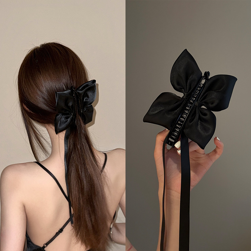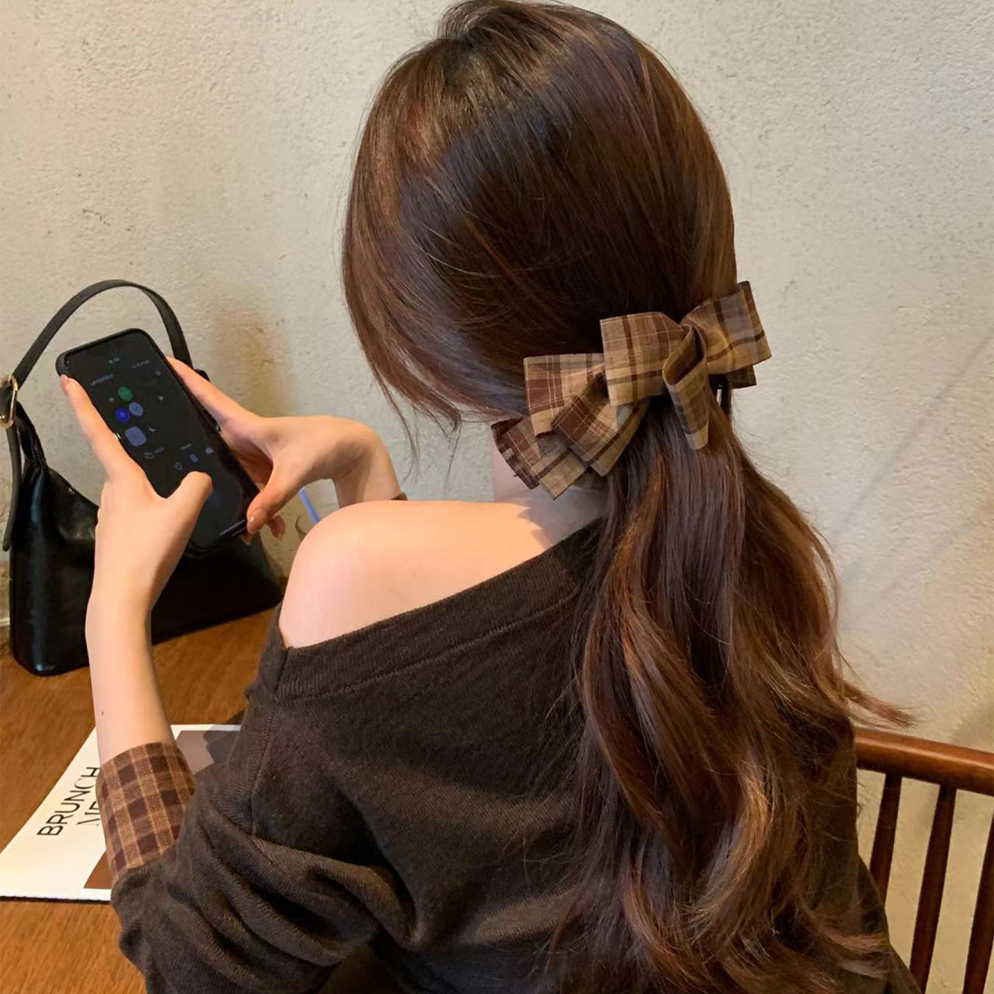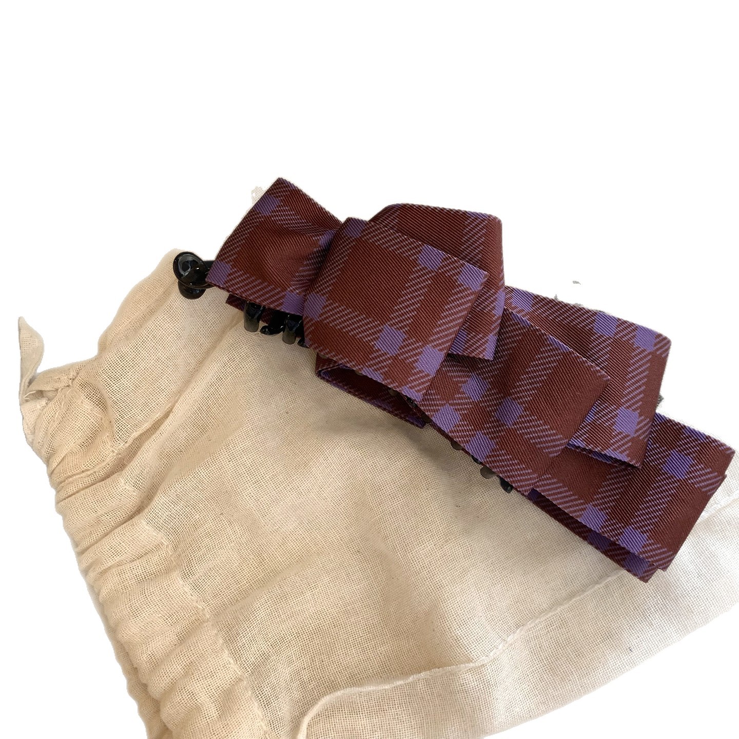 明星同款可露丽紫色格纹香蕉夹女后脑勺发夹高级感马尾竖夹发饰