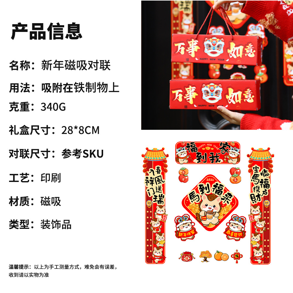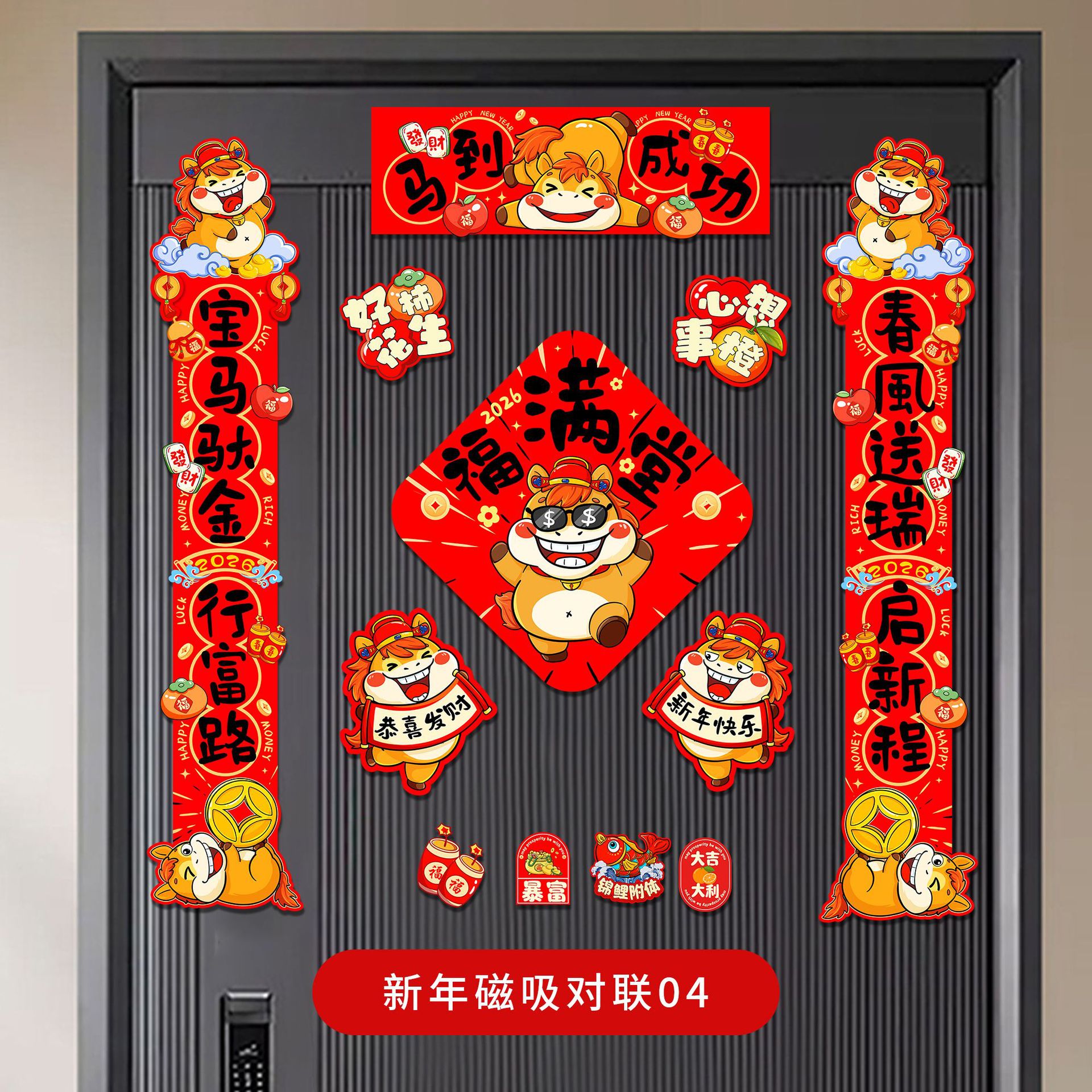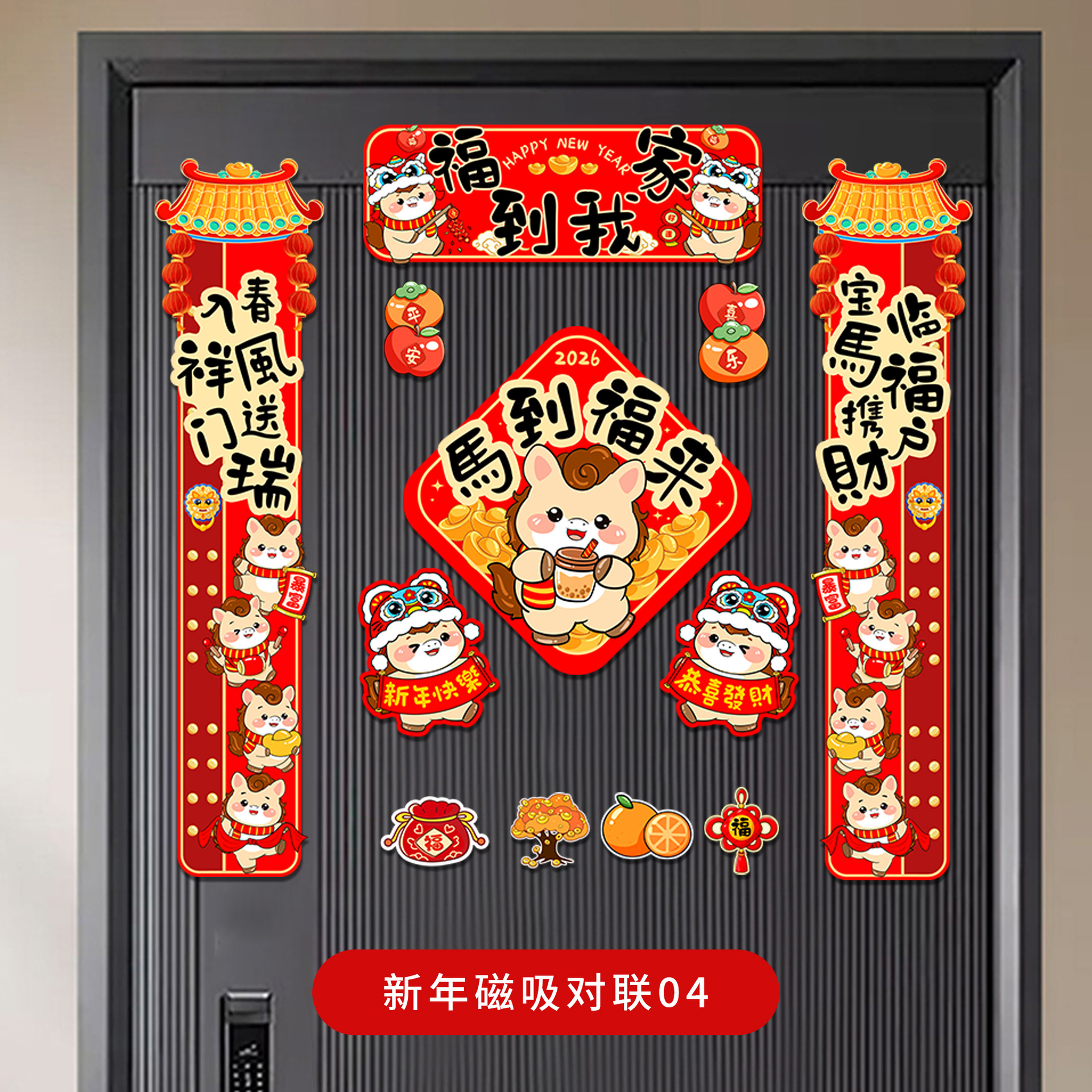 2026马年对联春节新年磁吸对联过年货福字入户大门贴卡通创意春联