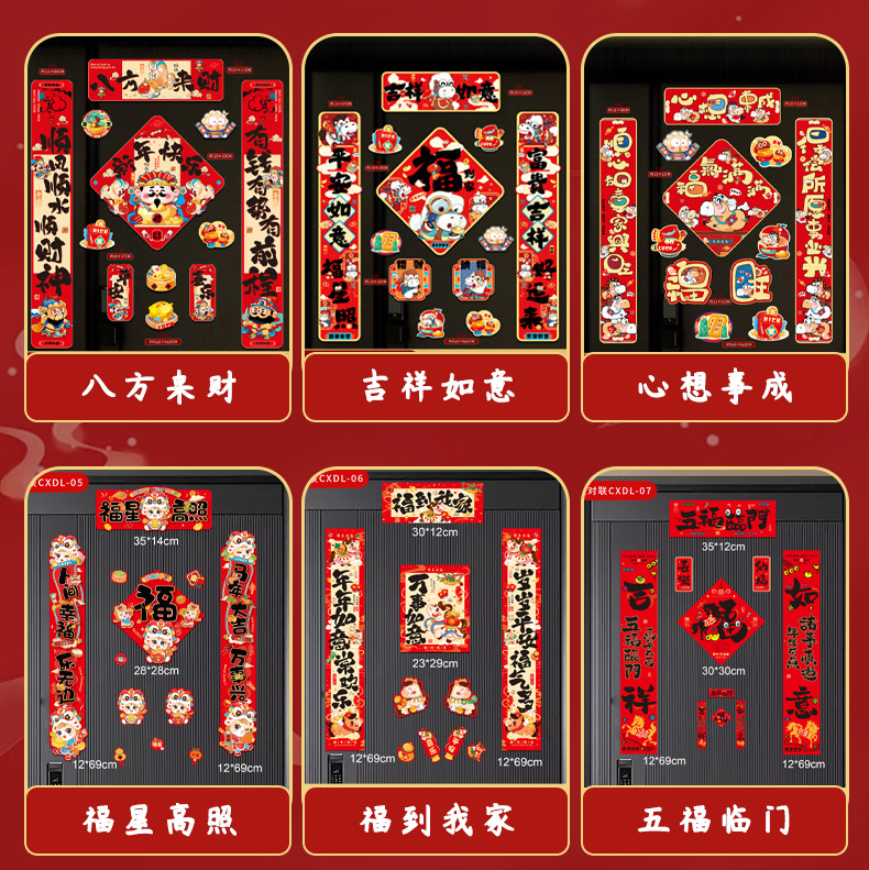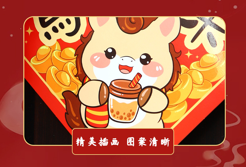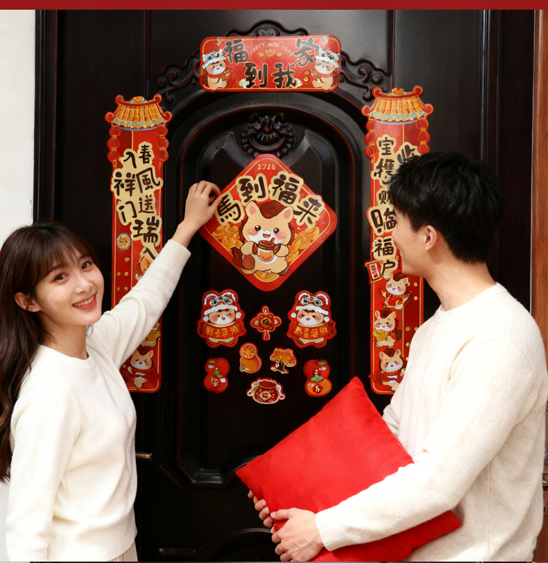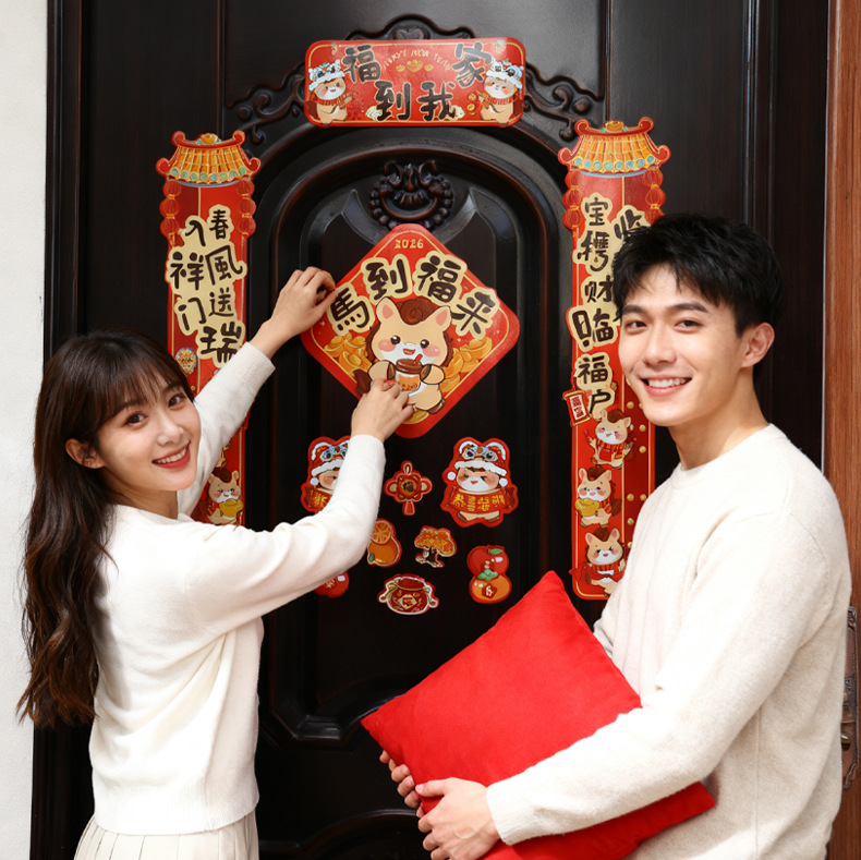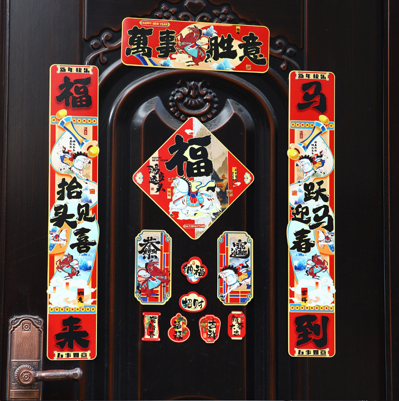 2026马年对联春节新年磁吸对联过年货福字入户大门贴卡通创意春联