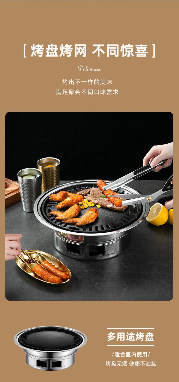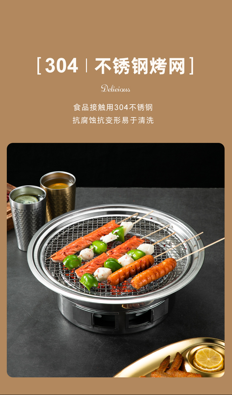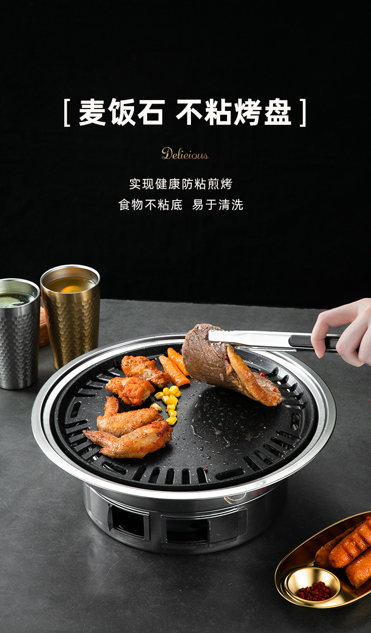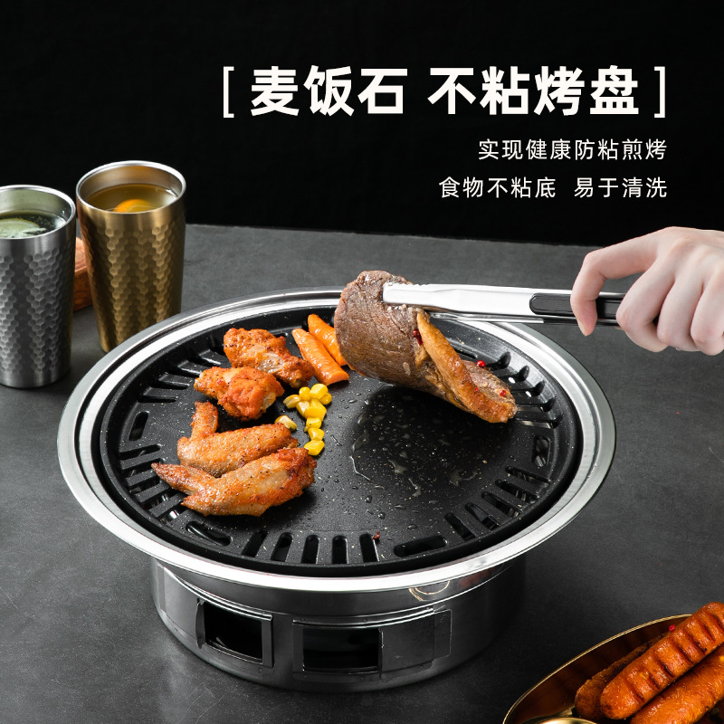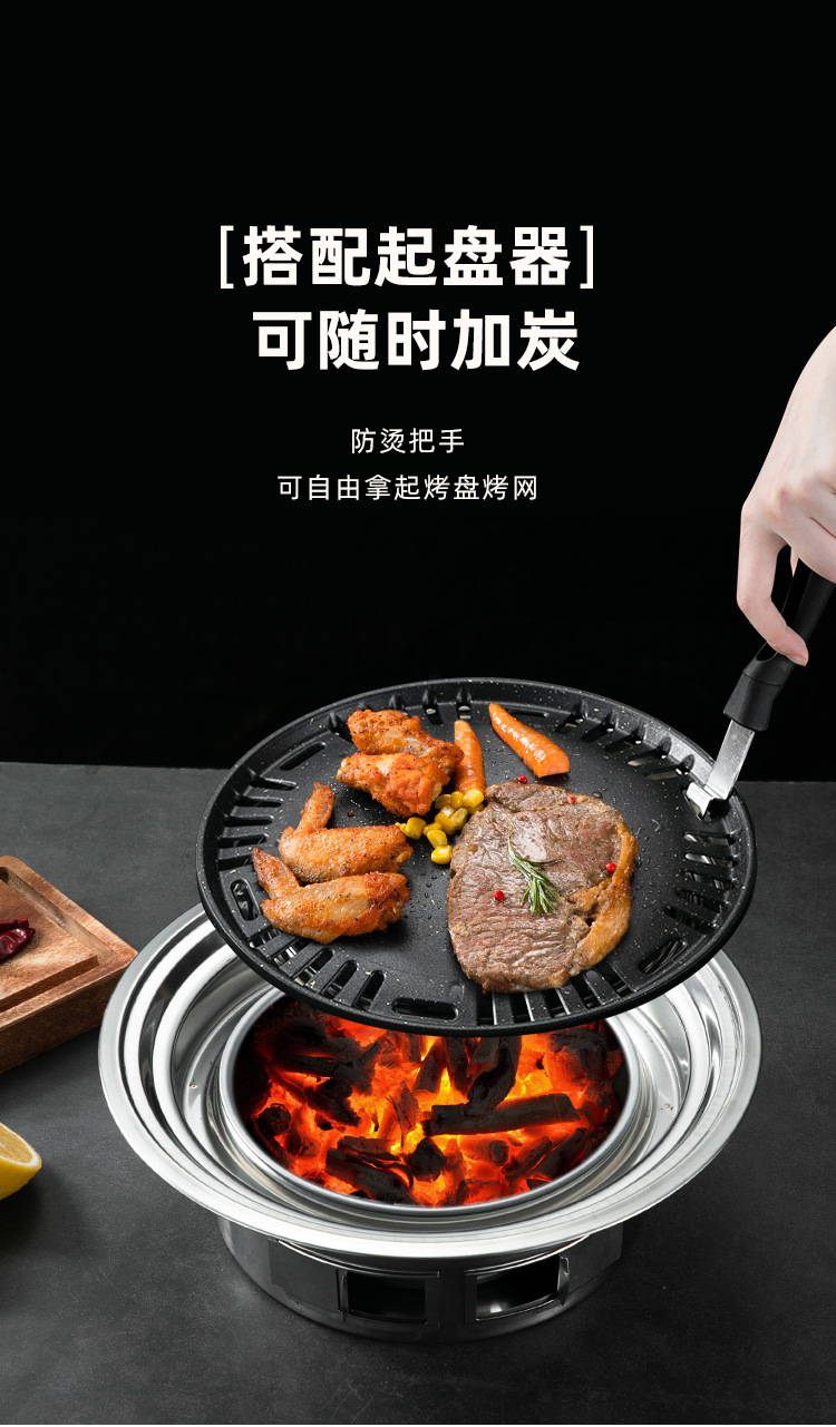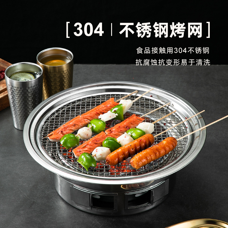 韩式烤肉烤串炉户外不锈钢无烟烤炉碳烤盘圆形烧烤店商用便携商用