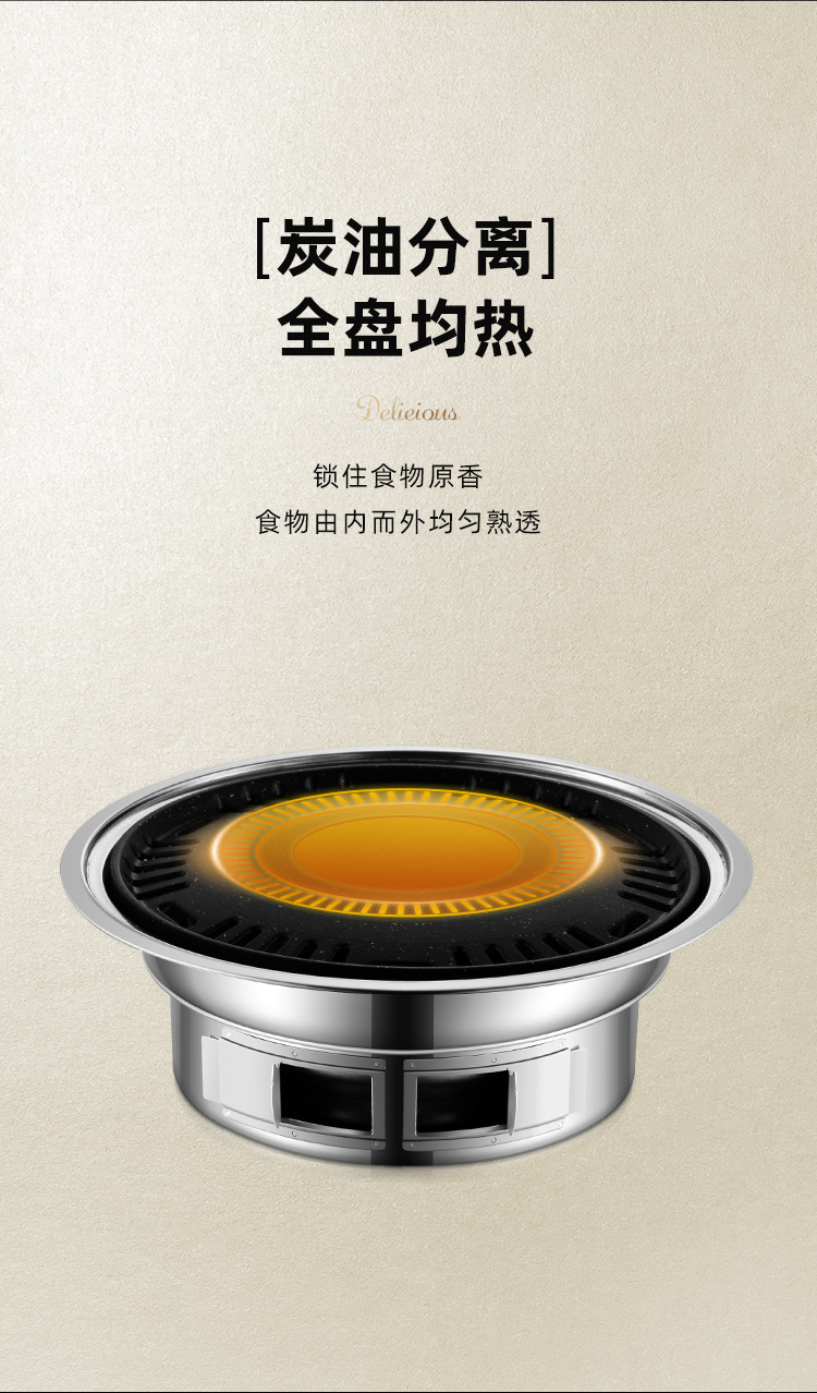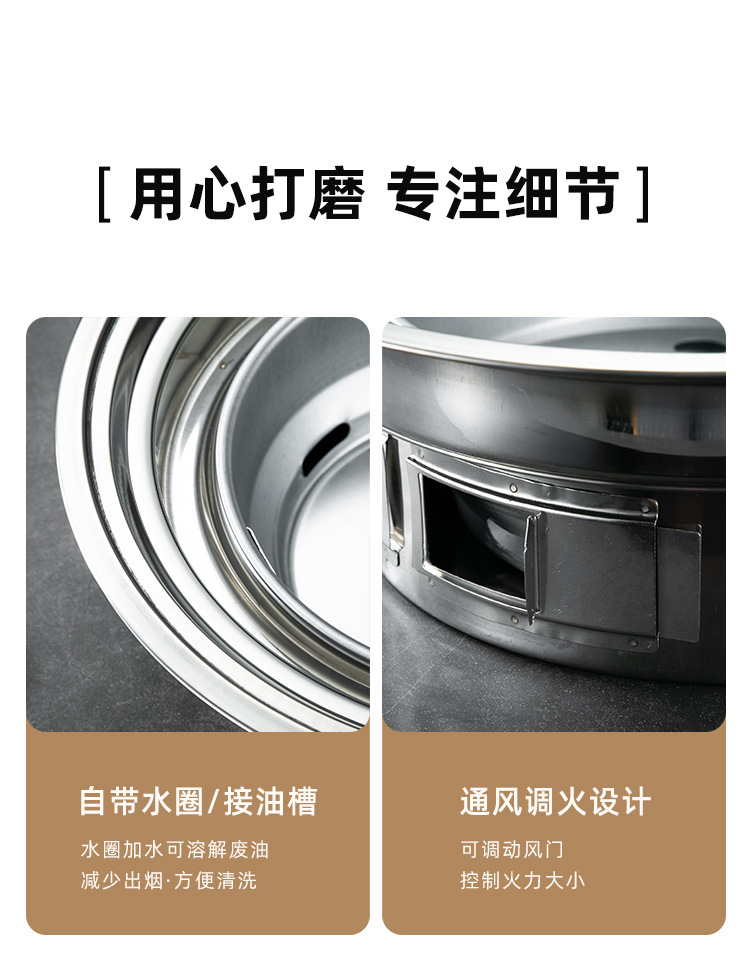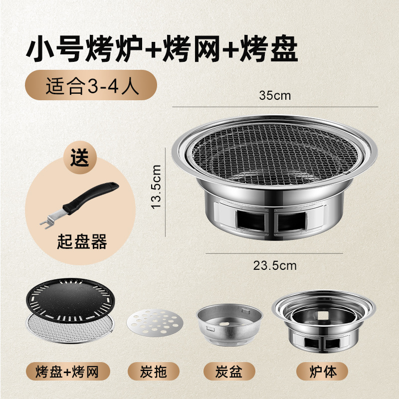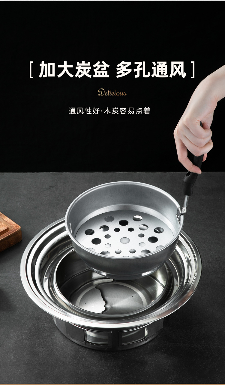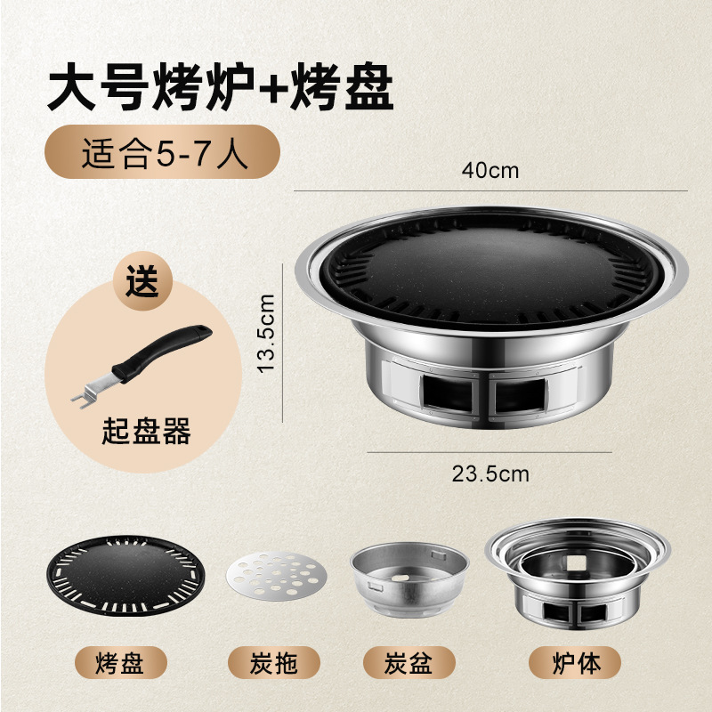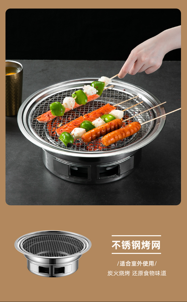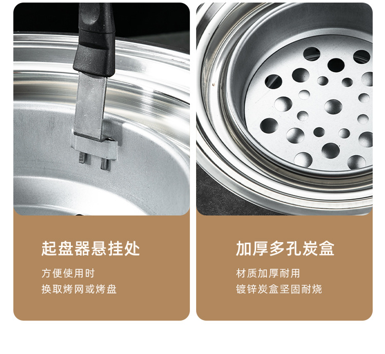 韩式烤肉烤串炉户外不锈钢无烟烤炉碳烤盘圆形烧烤店商用便携商用