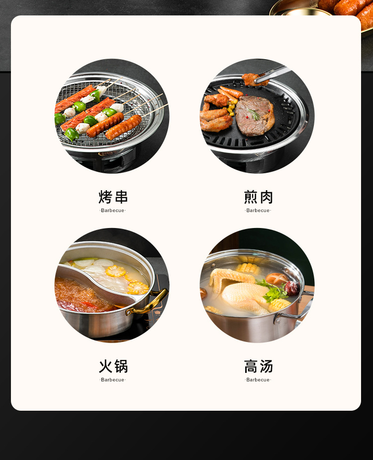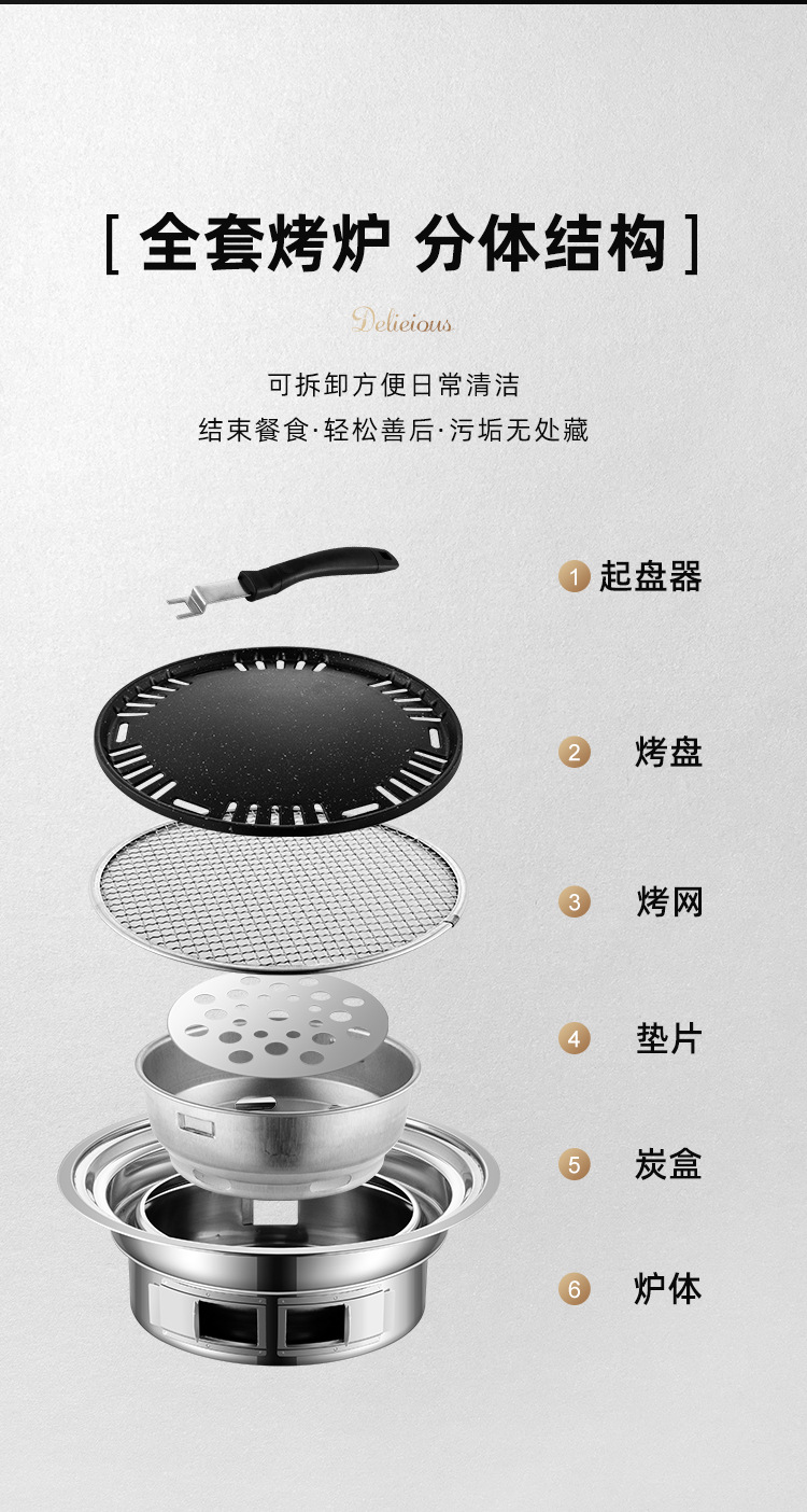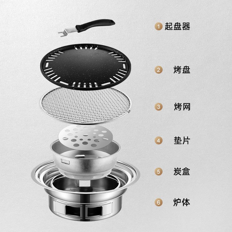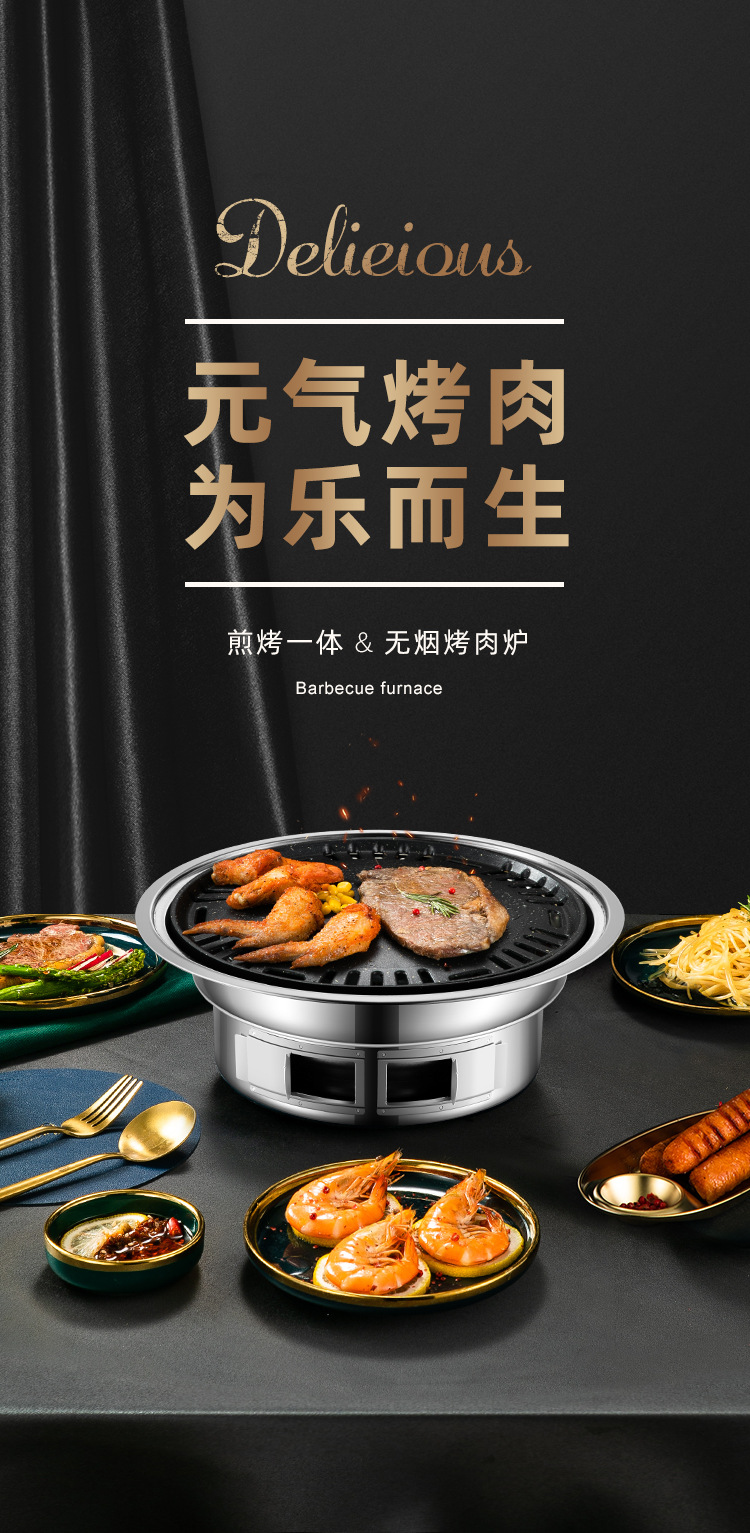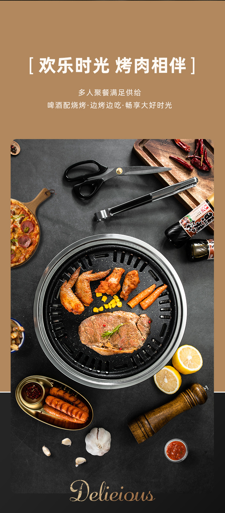 韩式烤肉烤串炉户外不锈钢无烟烤炉碳烤盘圆形烧烤店商用便携商用