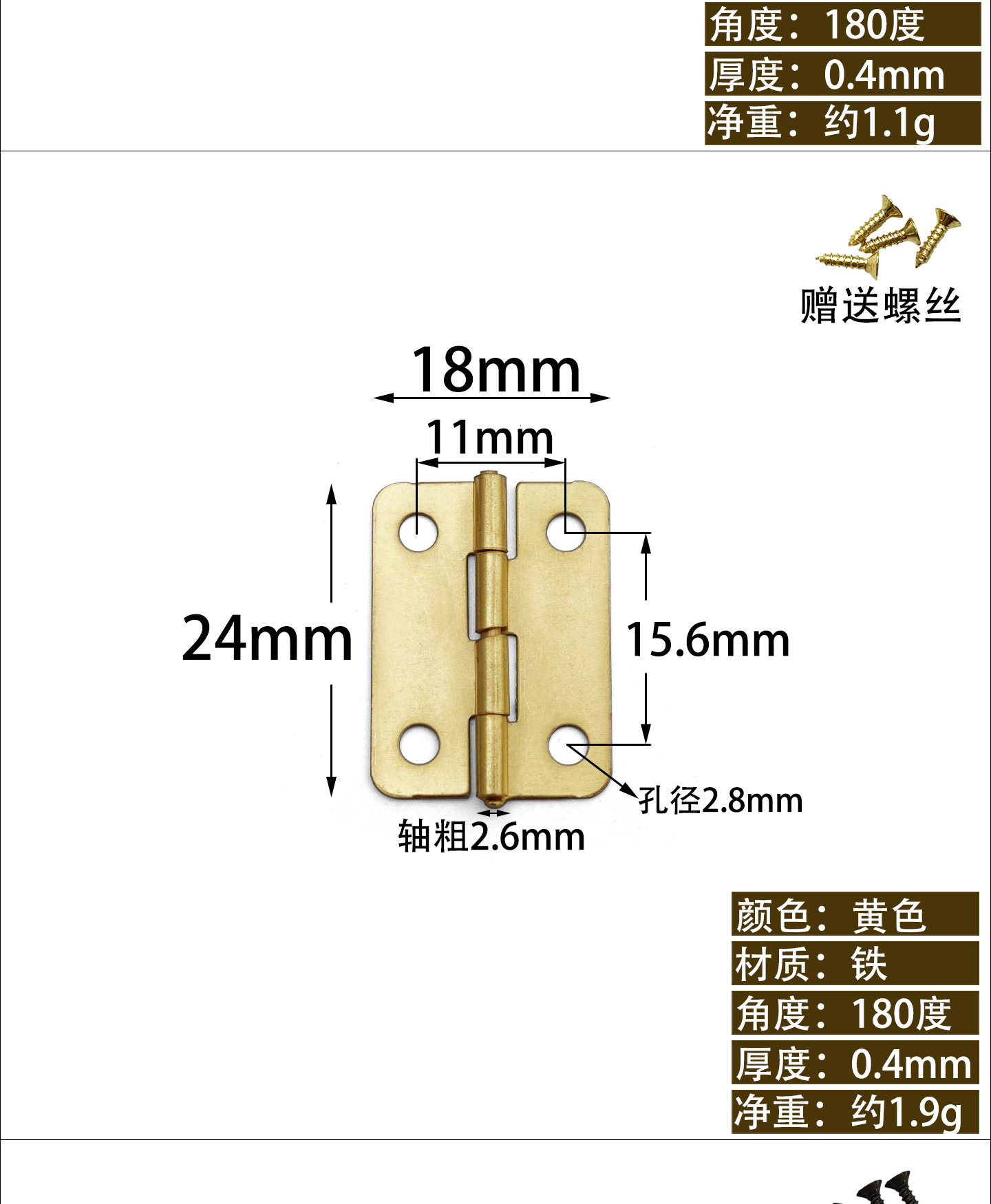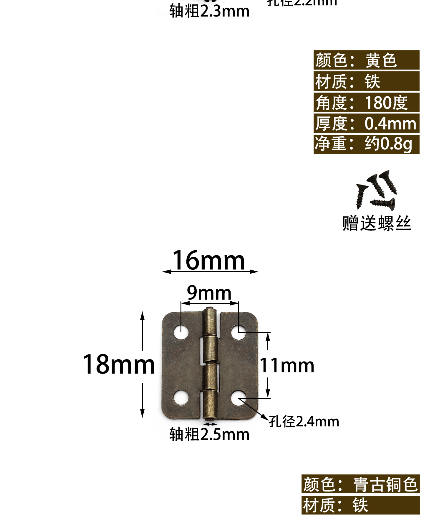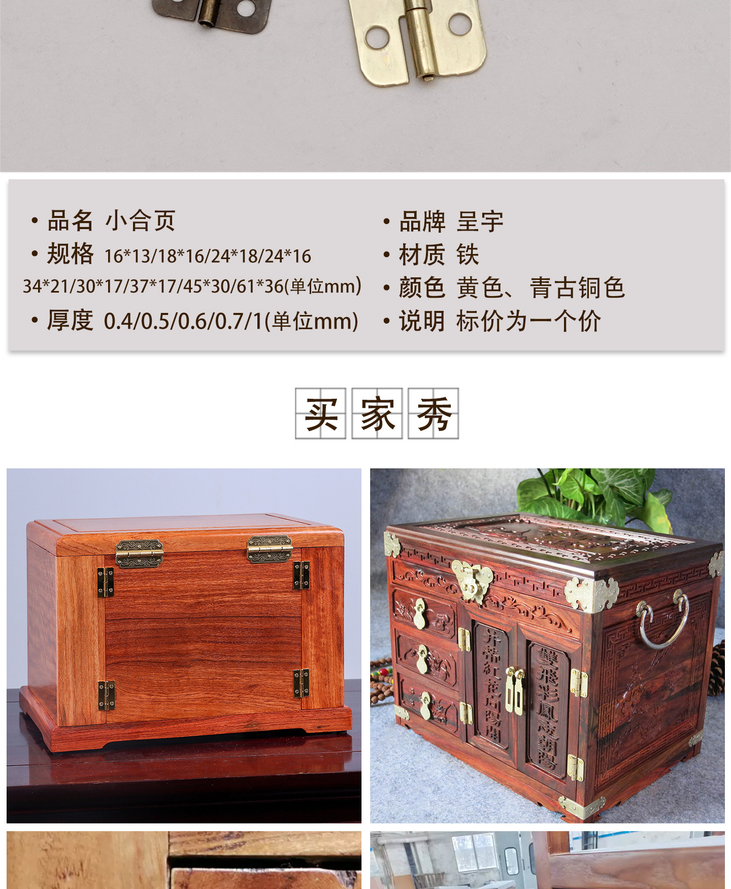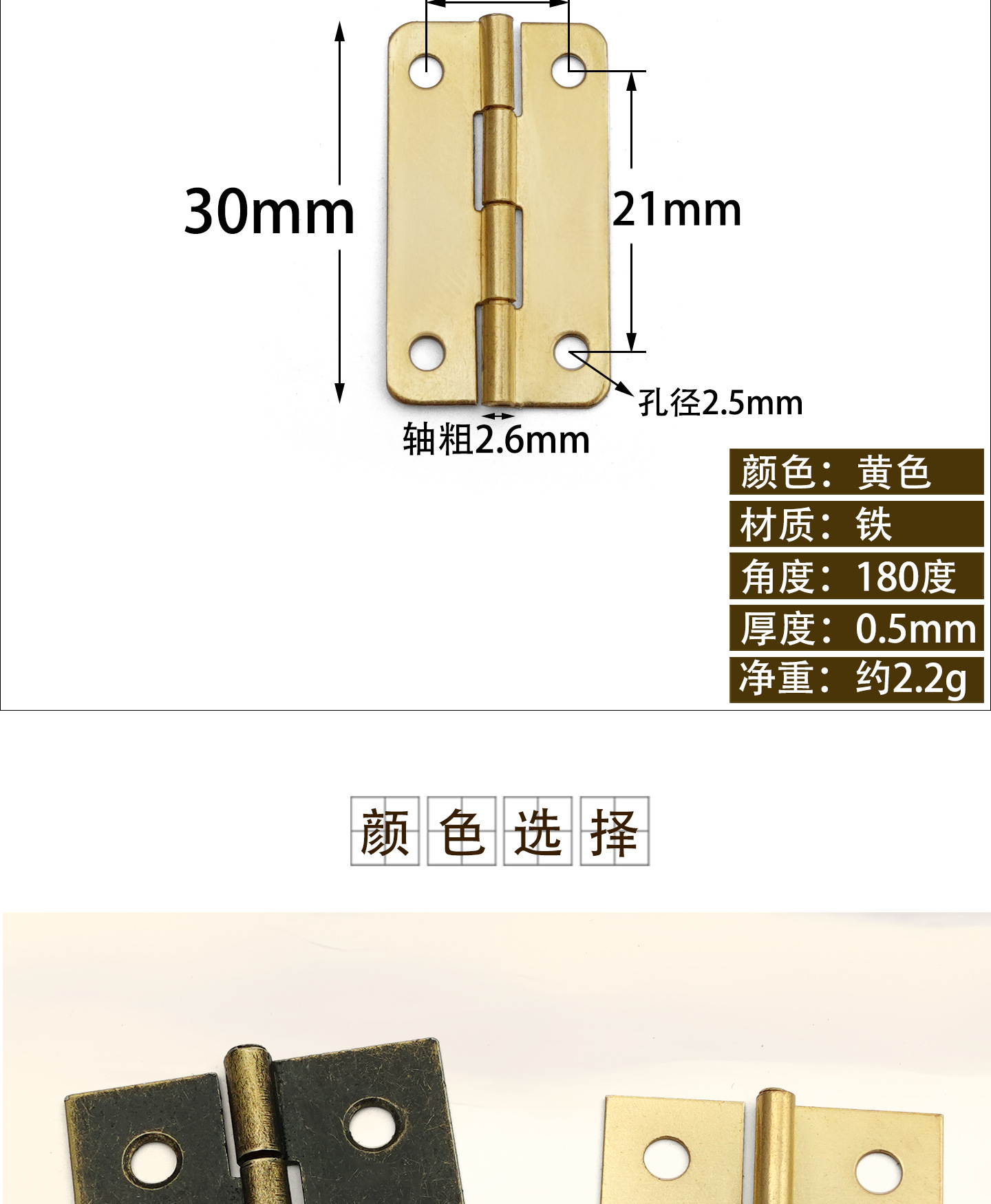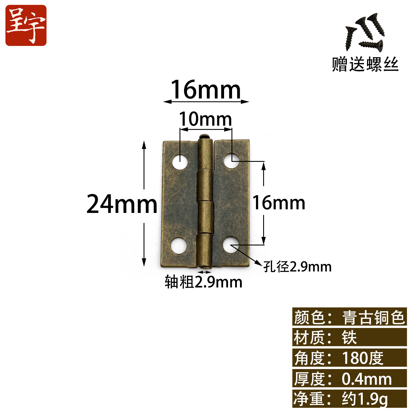呈宇迷你铁合页包装盒五金配件合页铁皮直角鸡仔铰礼品木木盒铰链