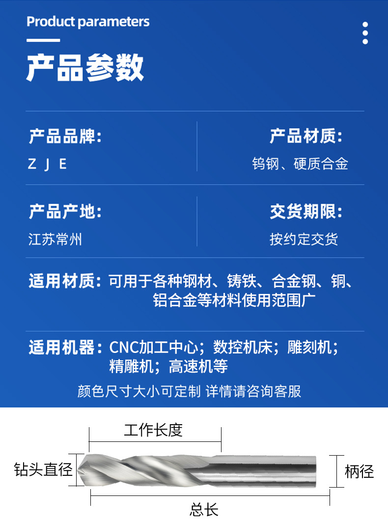 钨钢麻花钻头打孔器硬质合金不锈钢开孔器钻头CNC数控直柄钻头