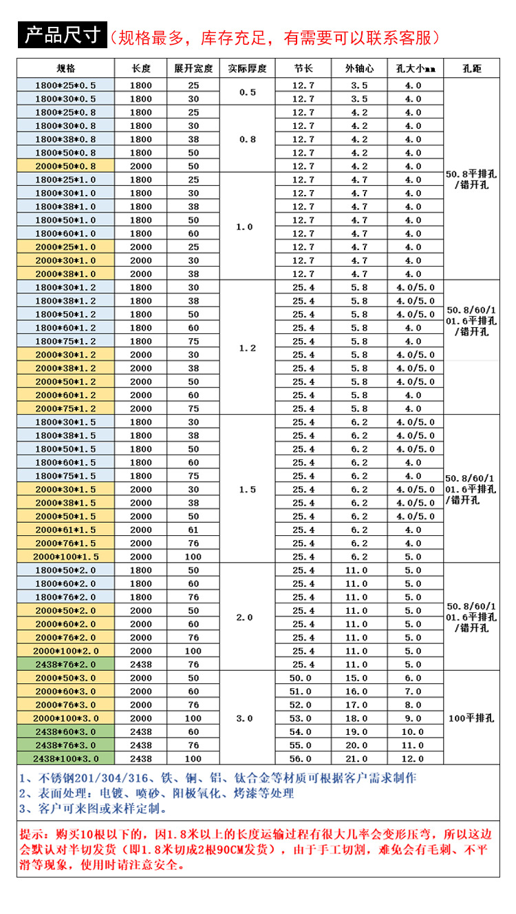 | 1800*38*1.2mm (304)(1800*38*1.2MM(304)) | USD $9.88 | 9741 piece available |