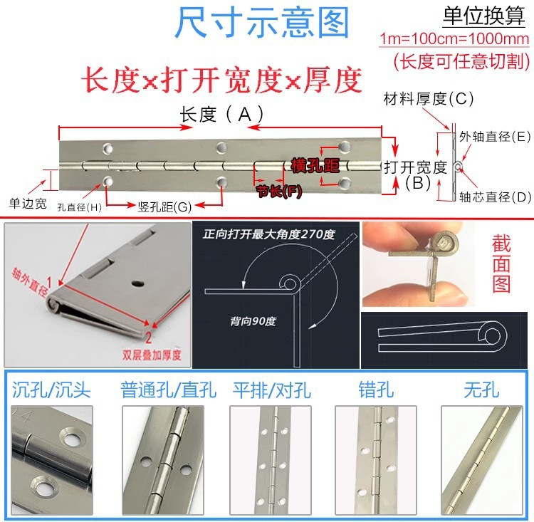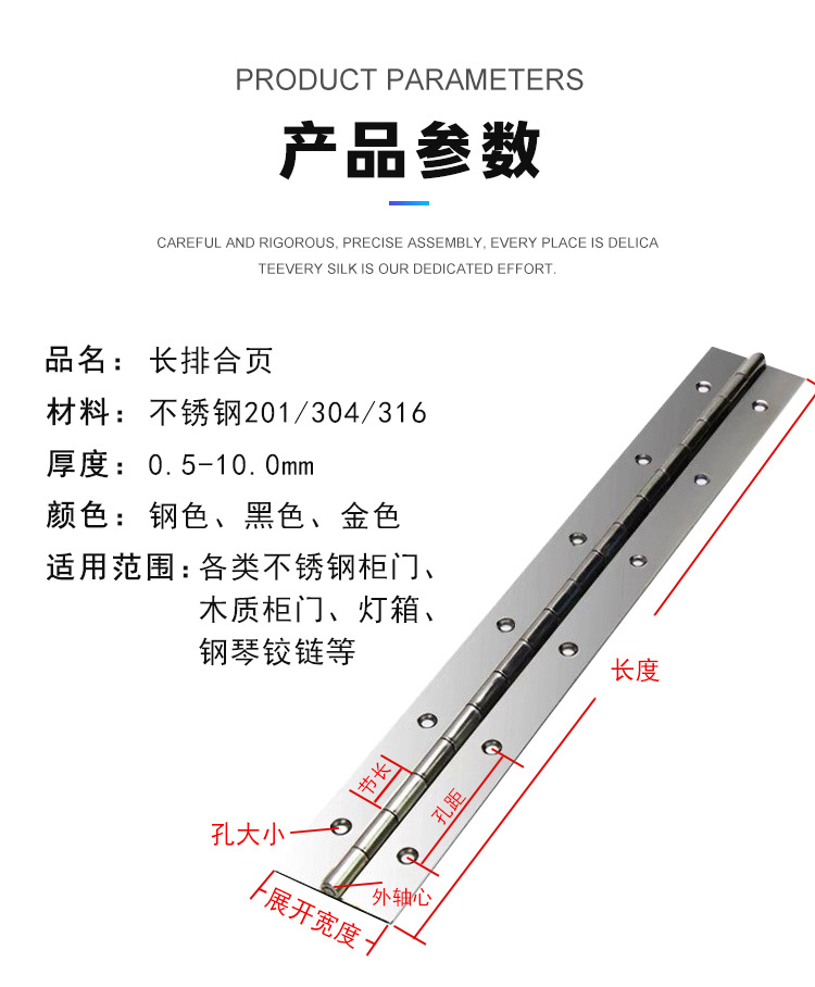 源头工厂直营定制304不锈钢长条合页铰链金色黑色铁铝合页折页