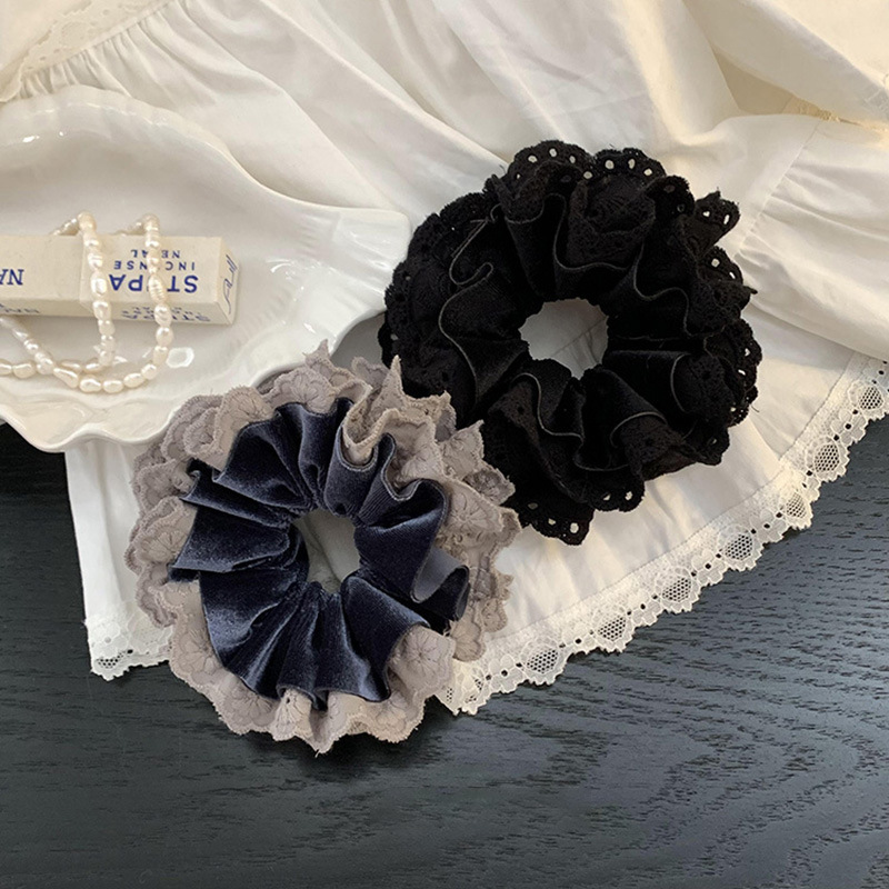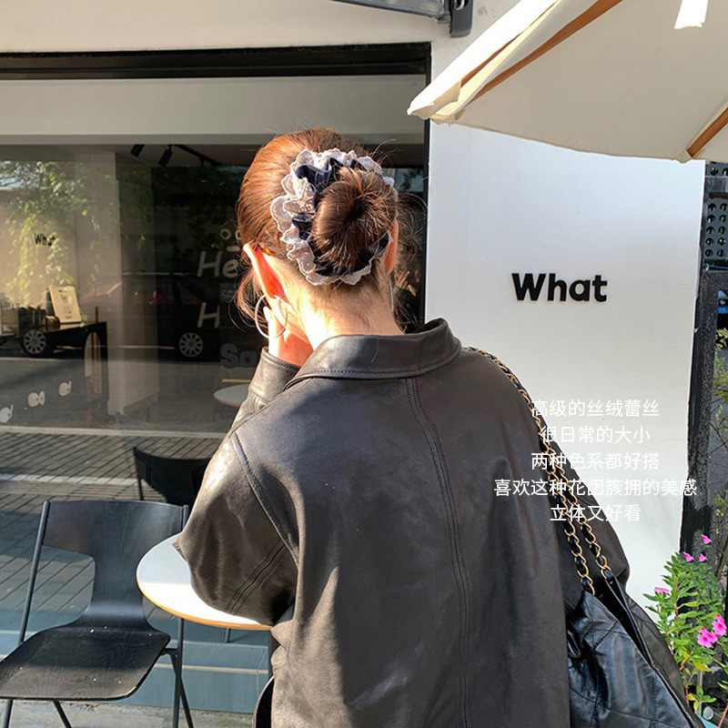韩国天鹅绒蕾丝芭蕾发圈头饰大肠圈丝绒女花边秋冬发饰头绳发绳