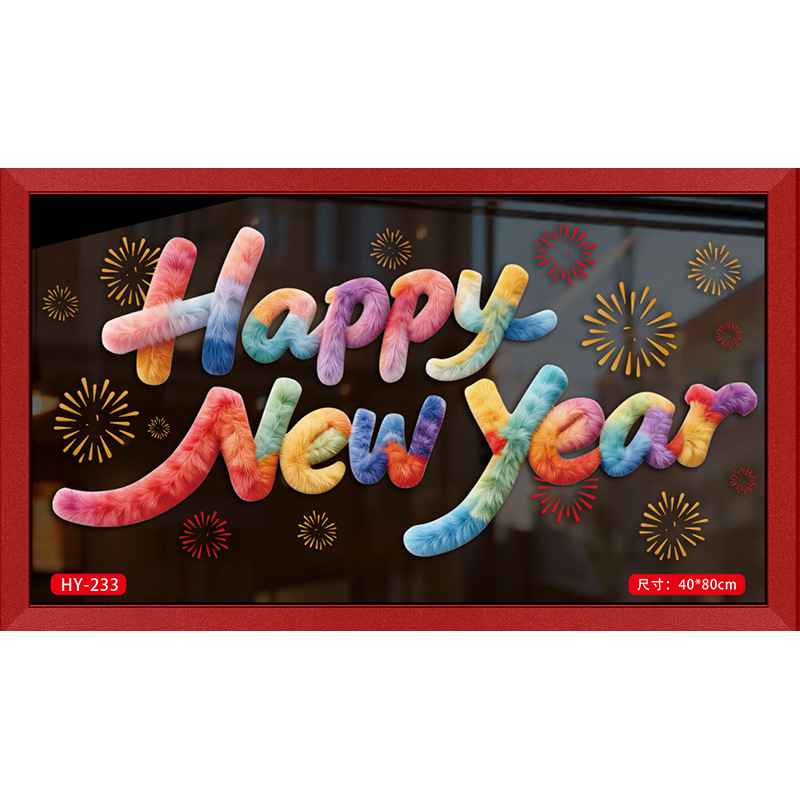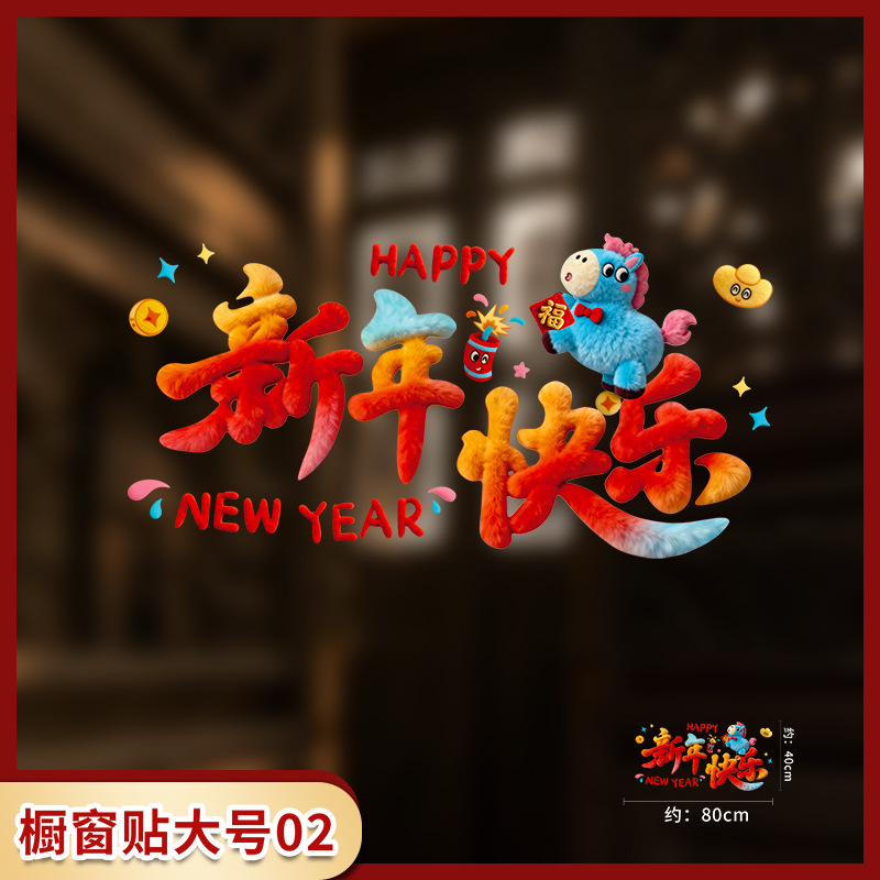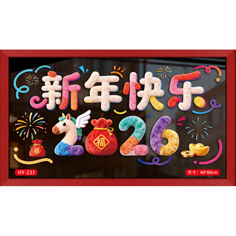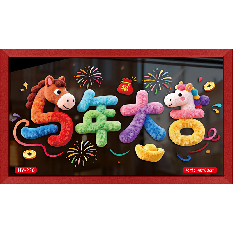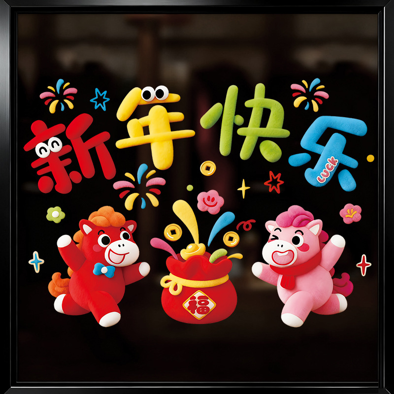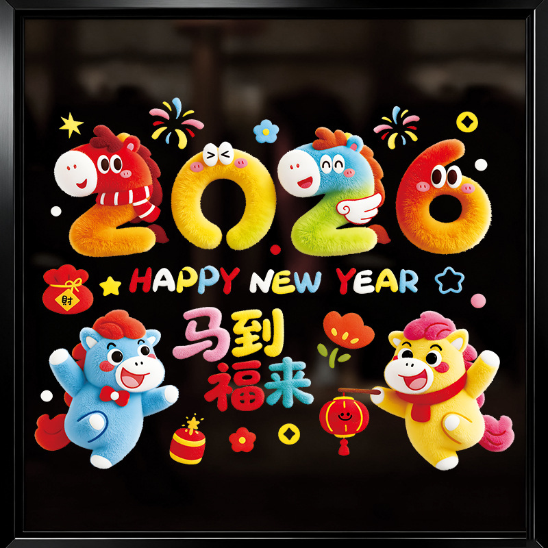 2026马年新年玻璃橱窗贴商场店铺卡通窗花静电贴过年春节装饰用品