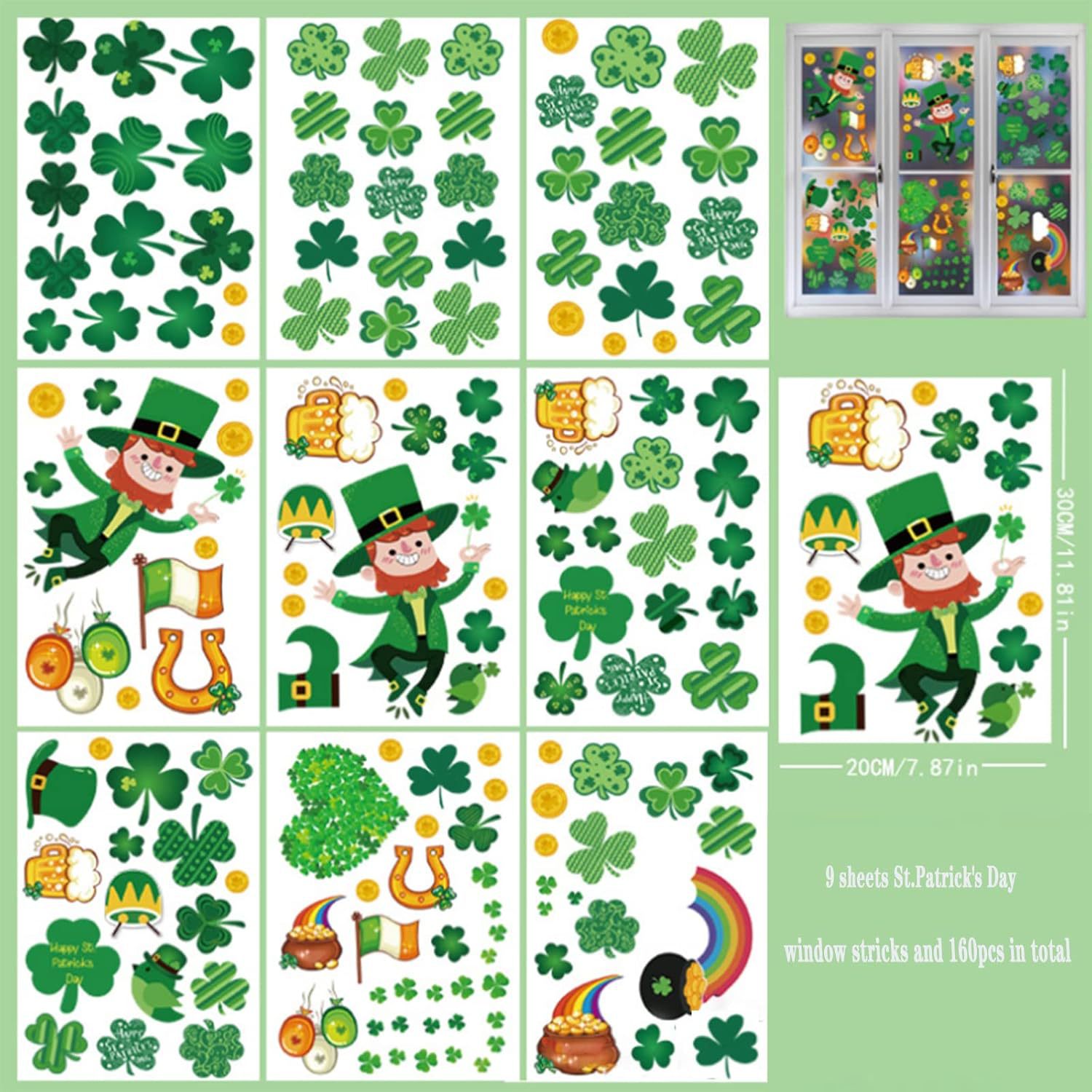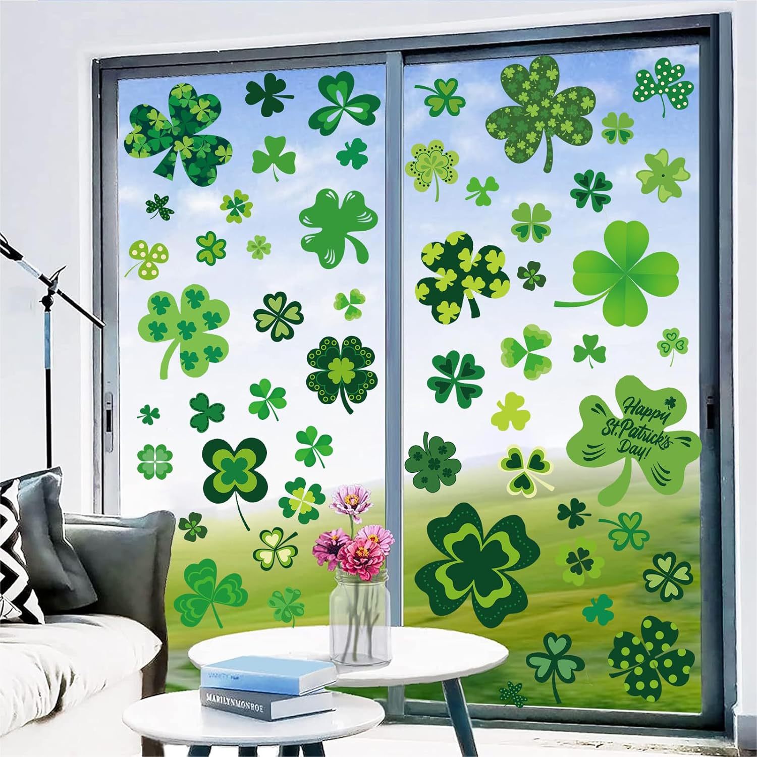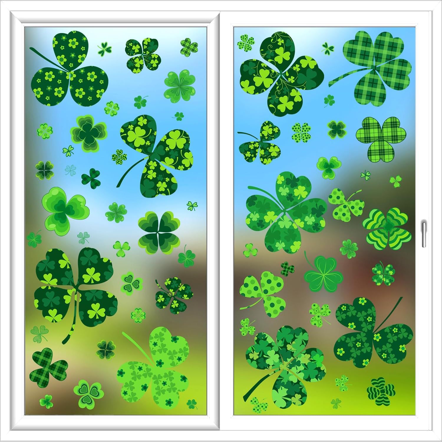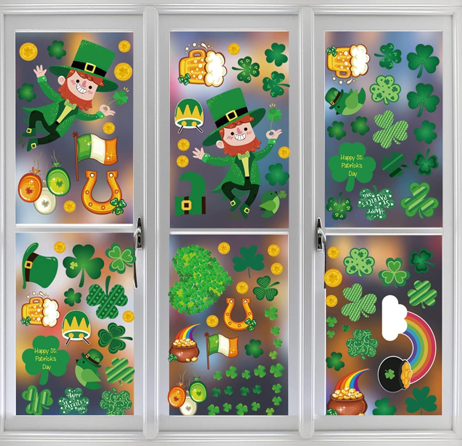 节日氛围双面窗户静电贴 三叶草主题环保PVC家庭学校玻璃门窗装饰