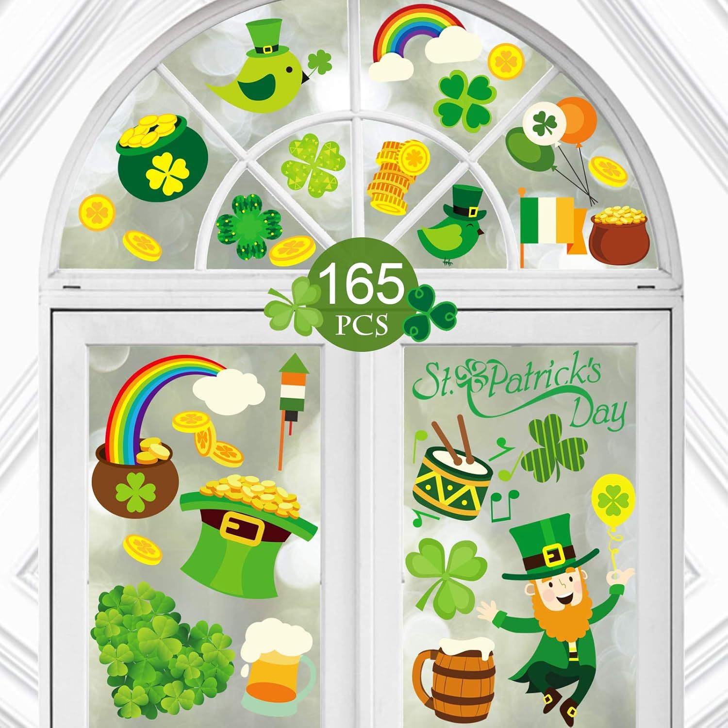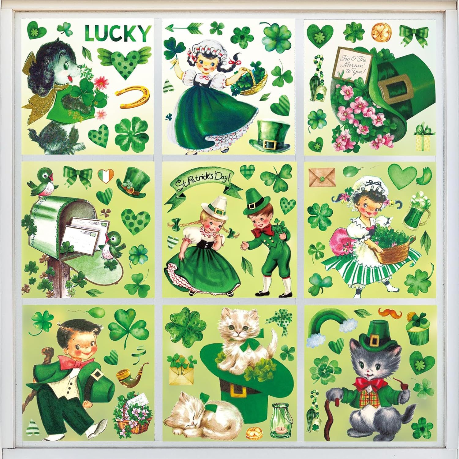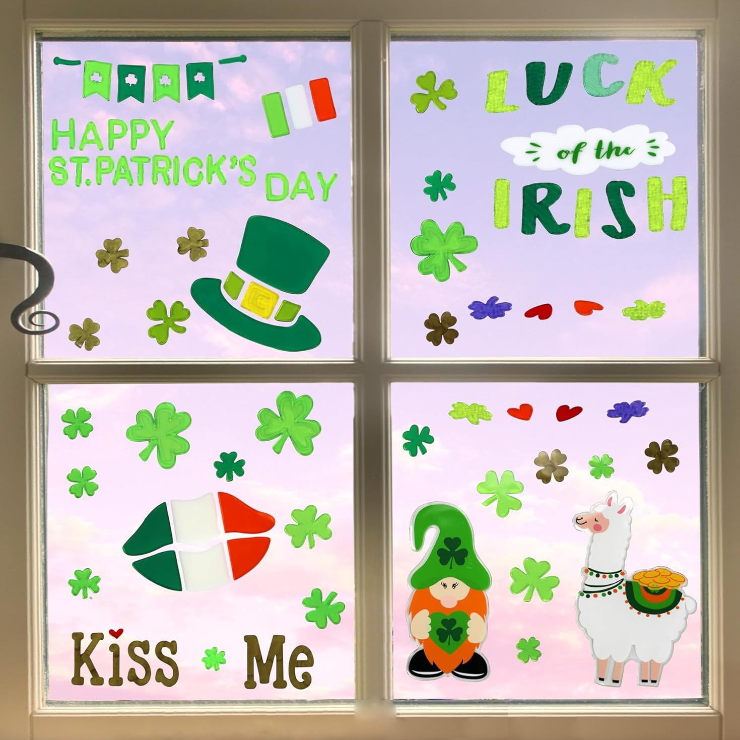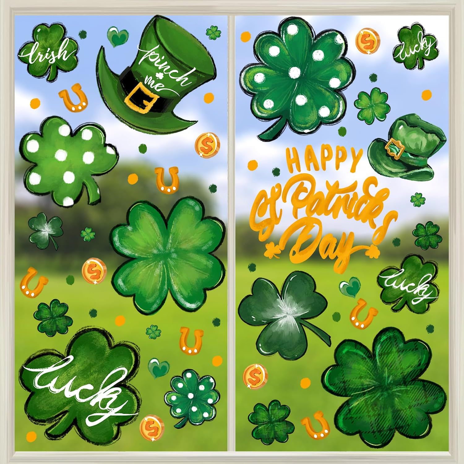 节日氛围双面窗户静电贴 三叶草主题环保PVC家庭学校玻璃门窗装饰