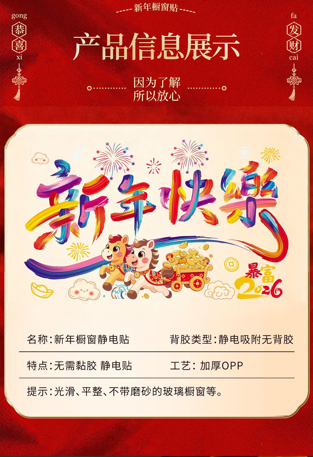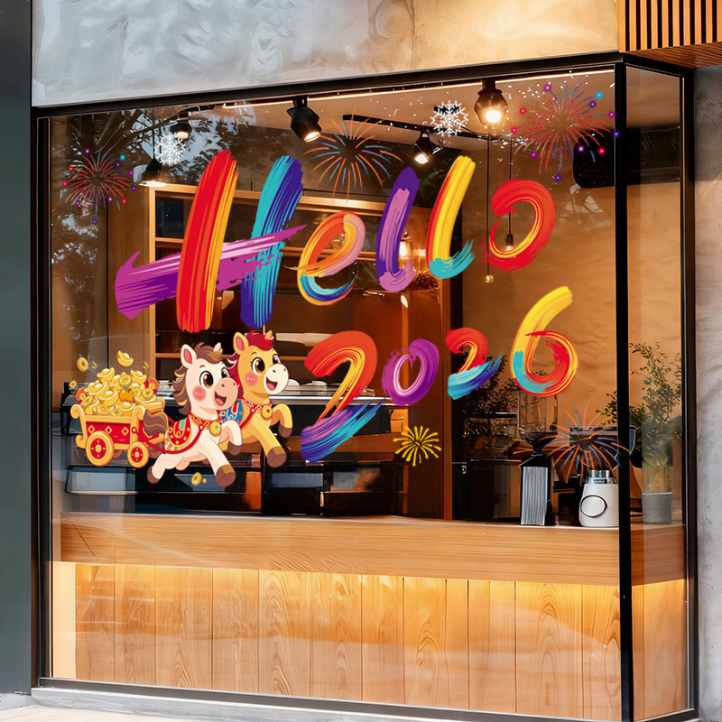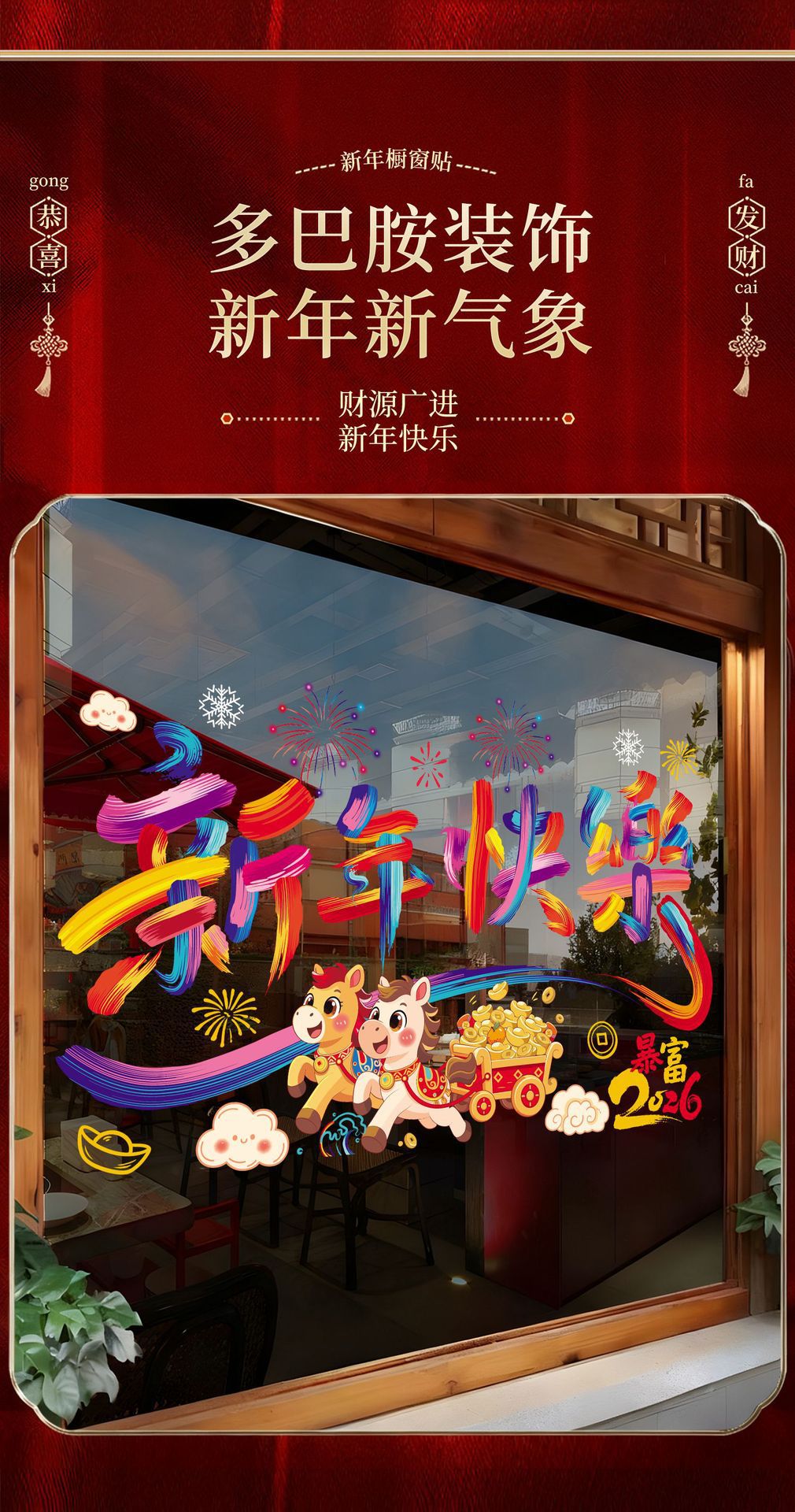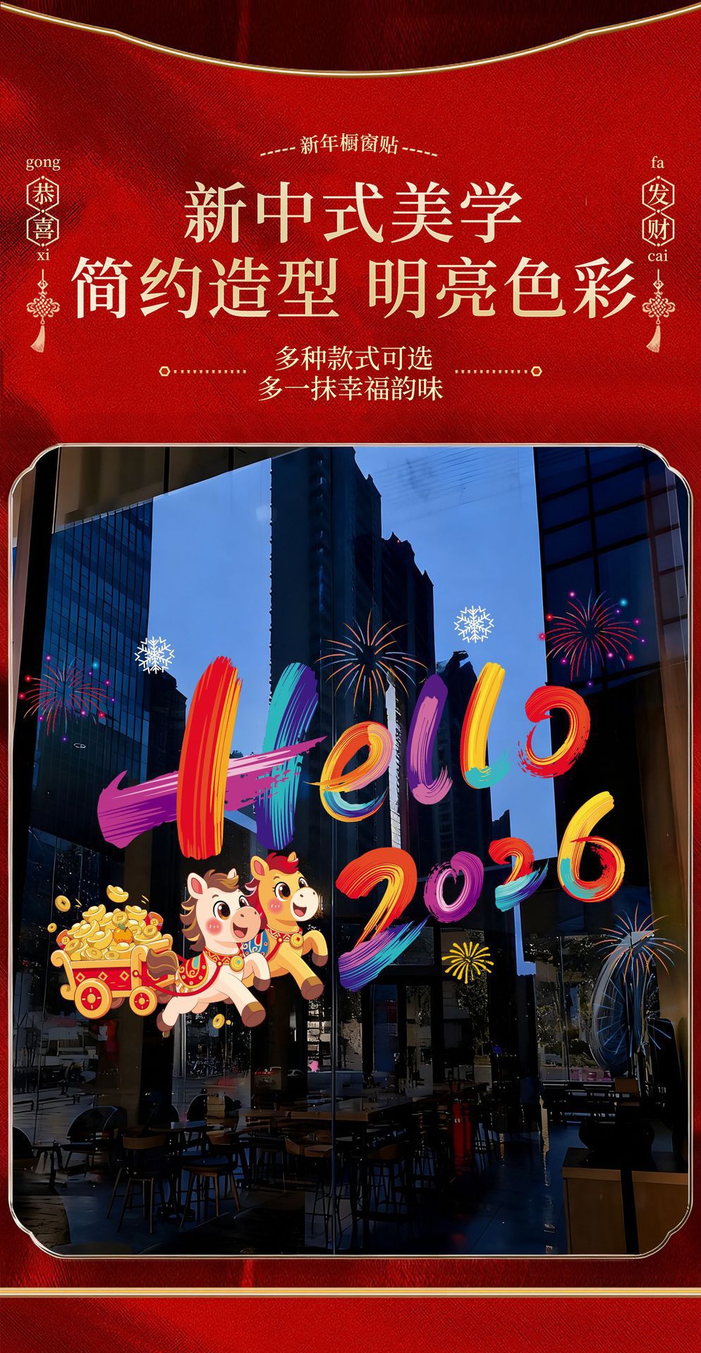 新款2026新年快乐玻璃静电贴马年教室商场布置窗户门元旦装饰贴画