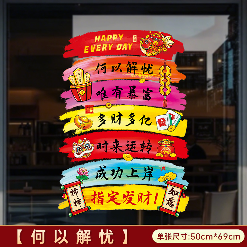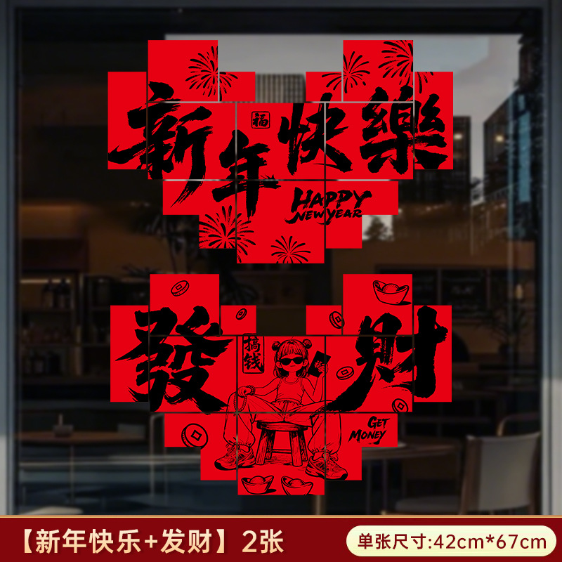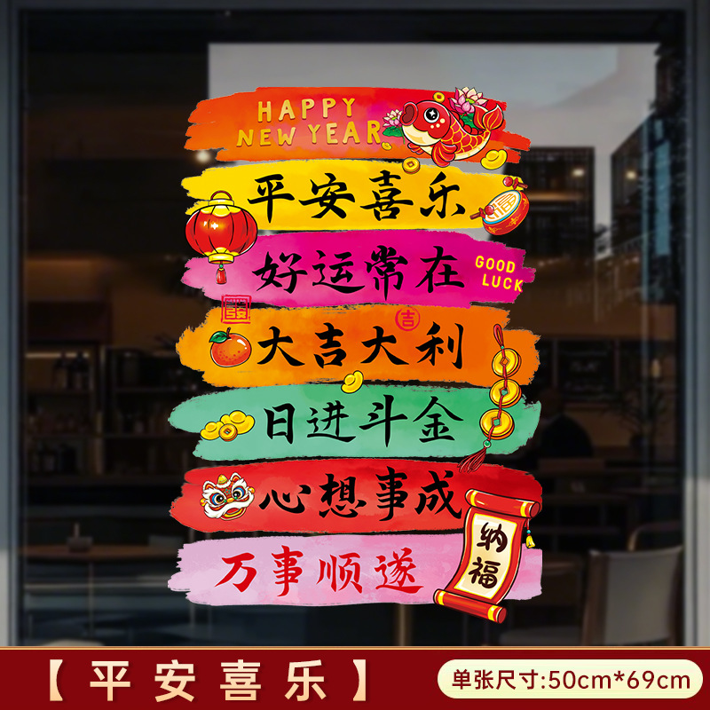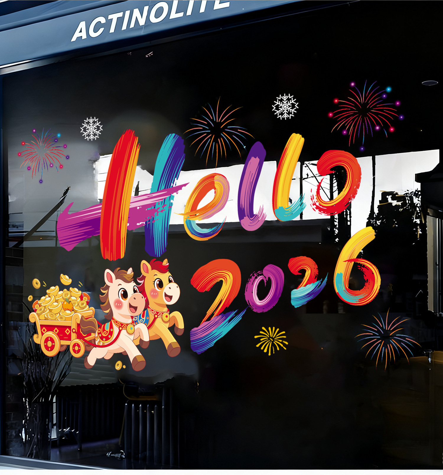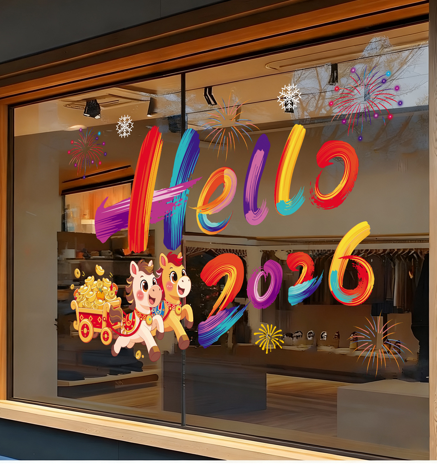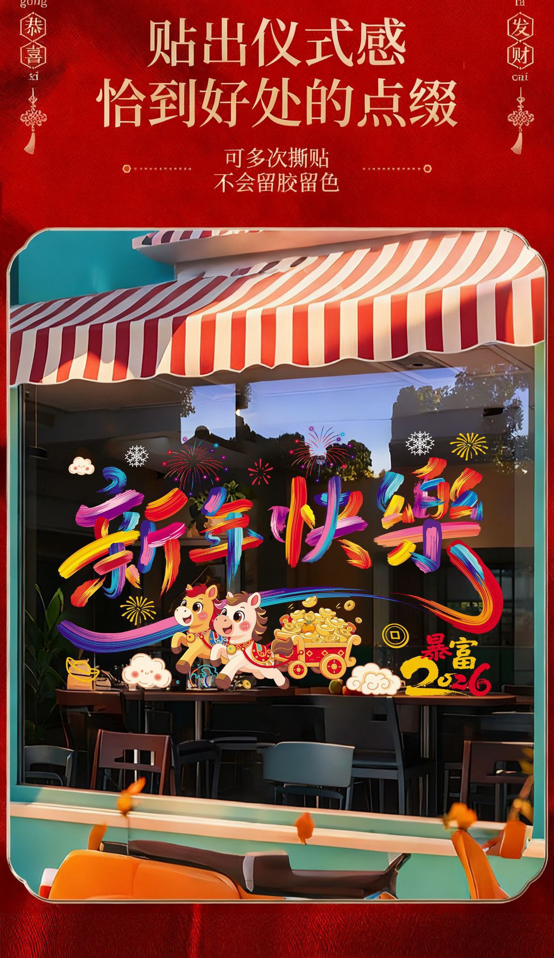 新款2026新年快乐玻璃静电贴马年教室商场布置窗户门元旦装饰贴画