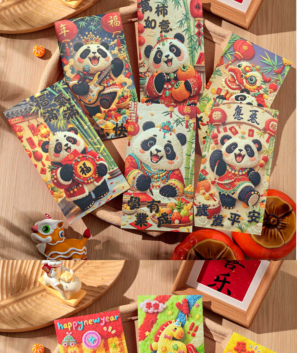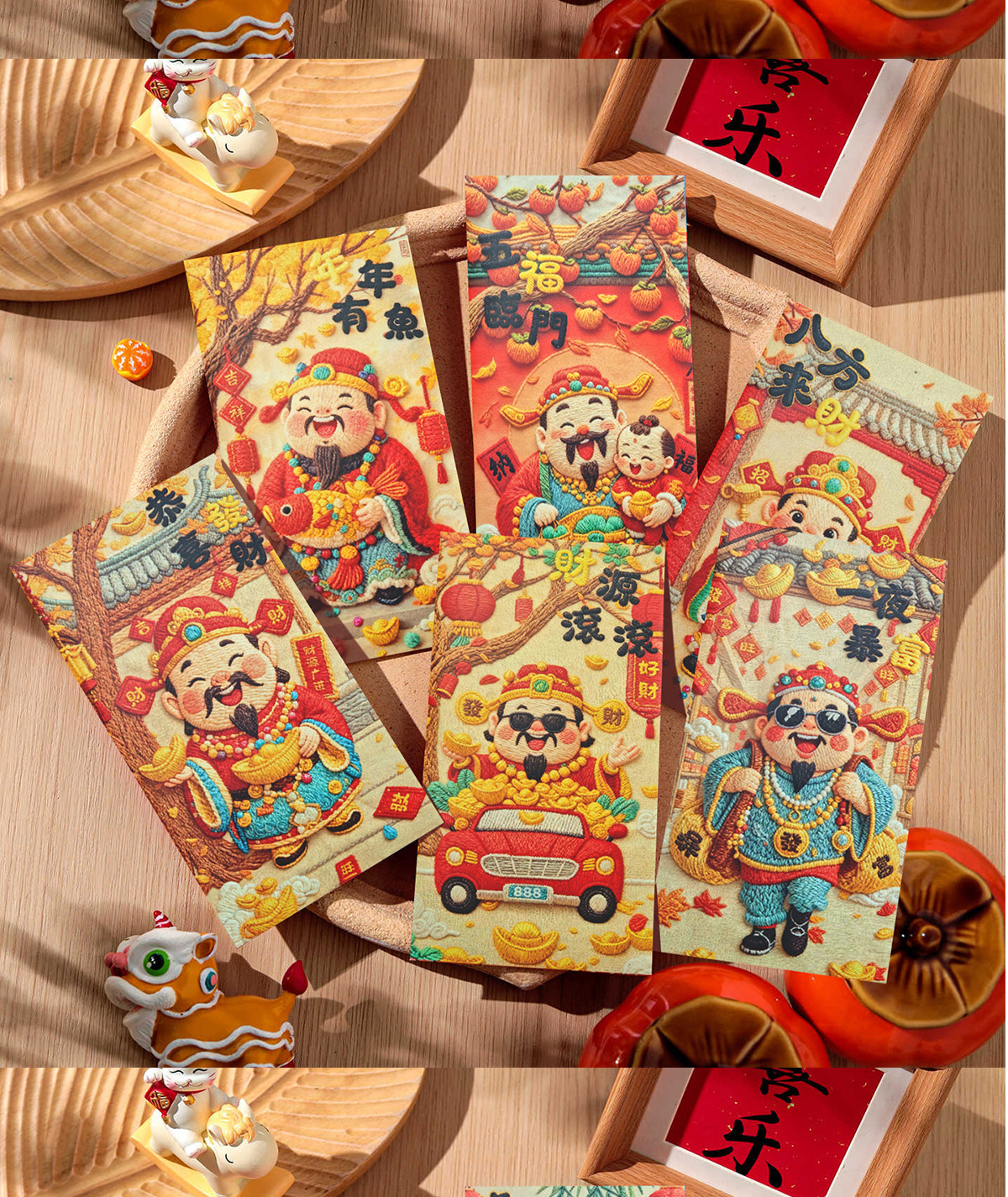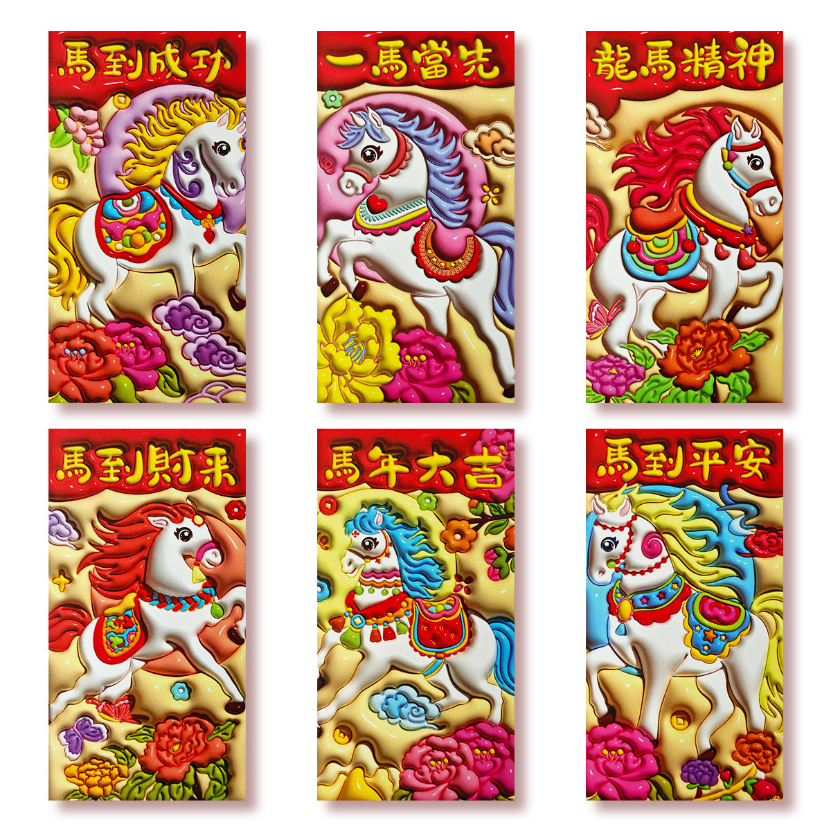 抖音爆款2026马年5D平面毛绒刺绣风格可爱卡通Q版春节利是封红包