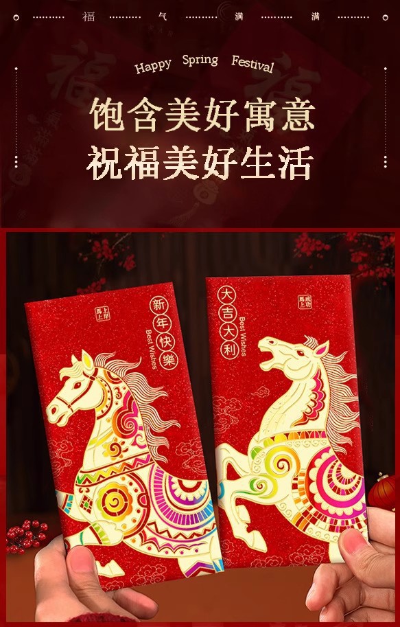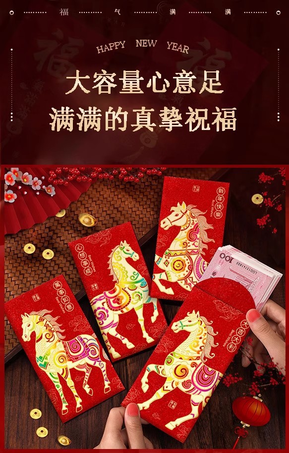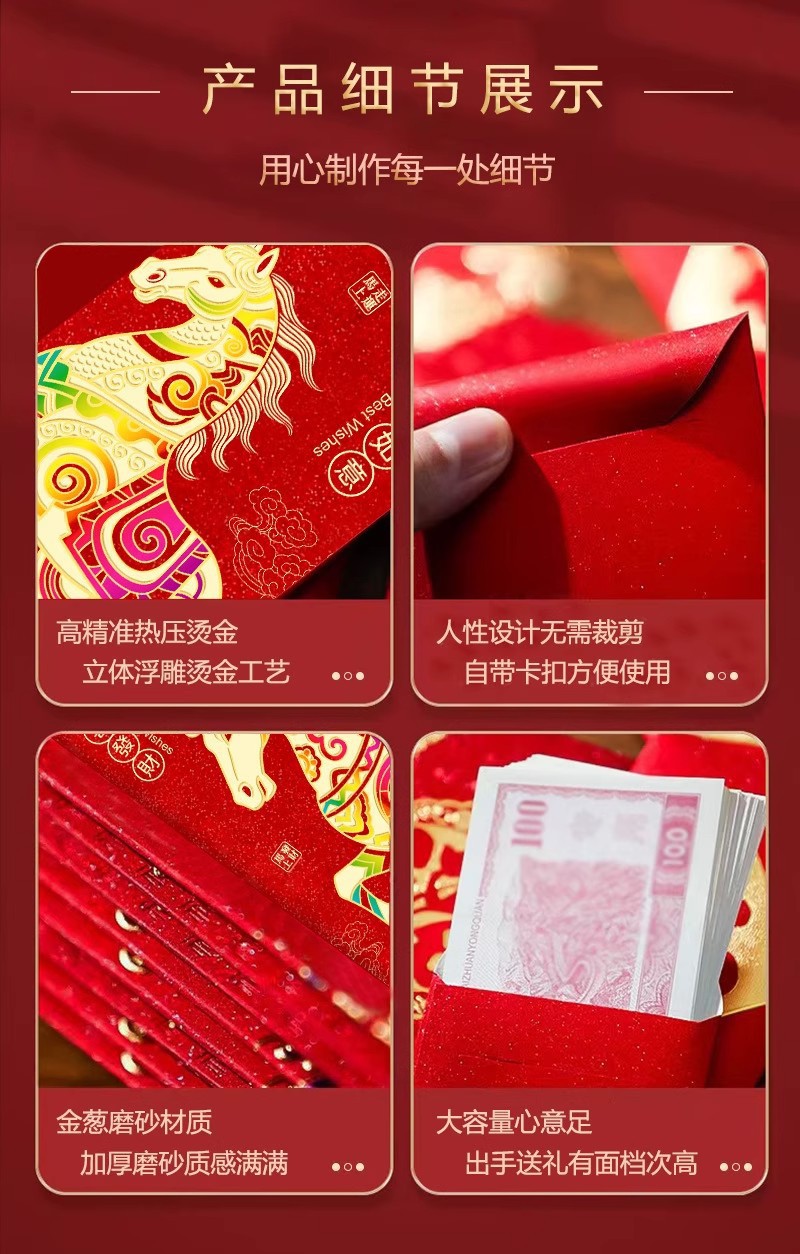 2026马年新款创意红包3D炫彩红包春节立体百元利是封过新年压岁包