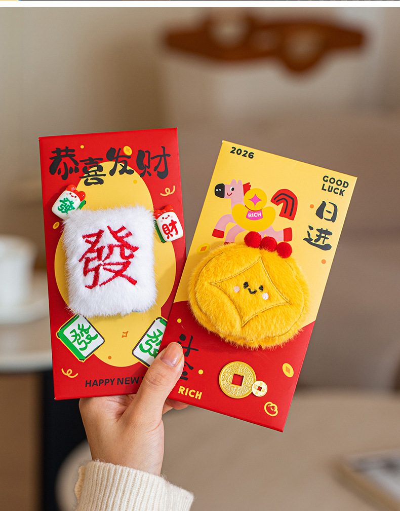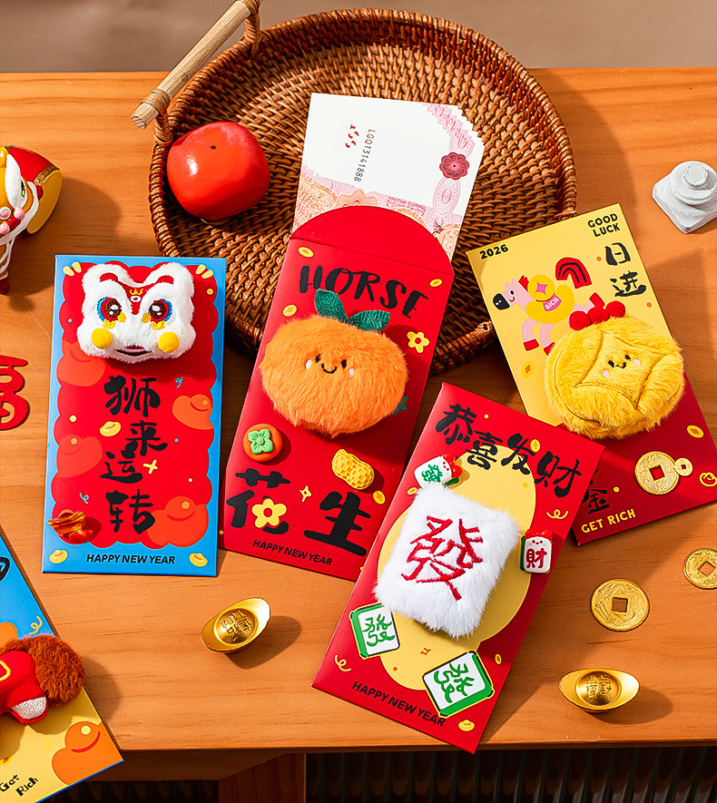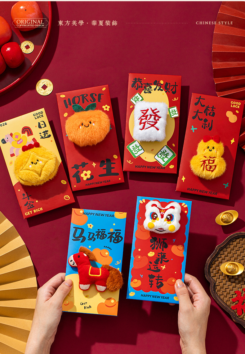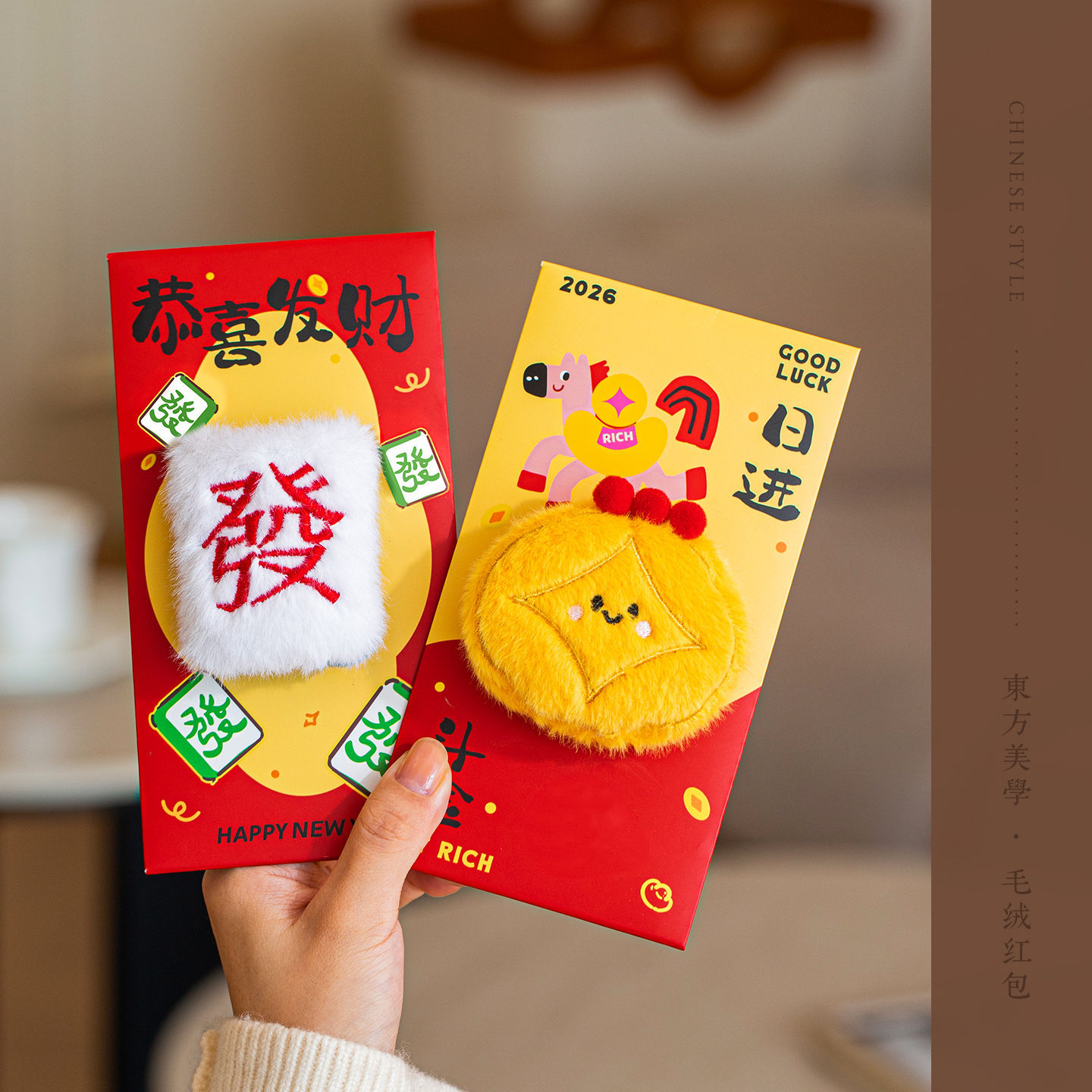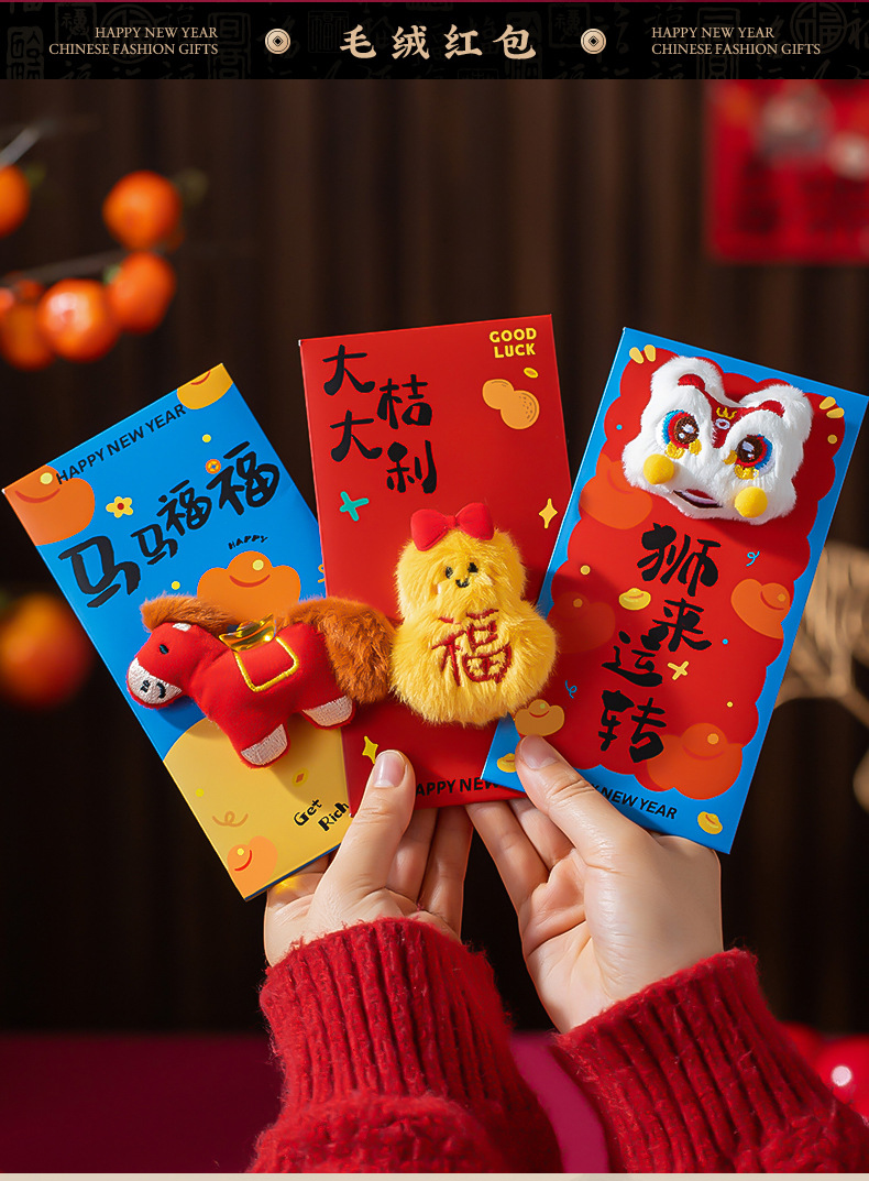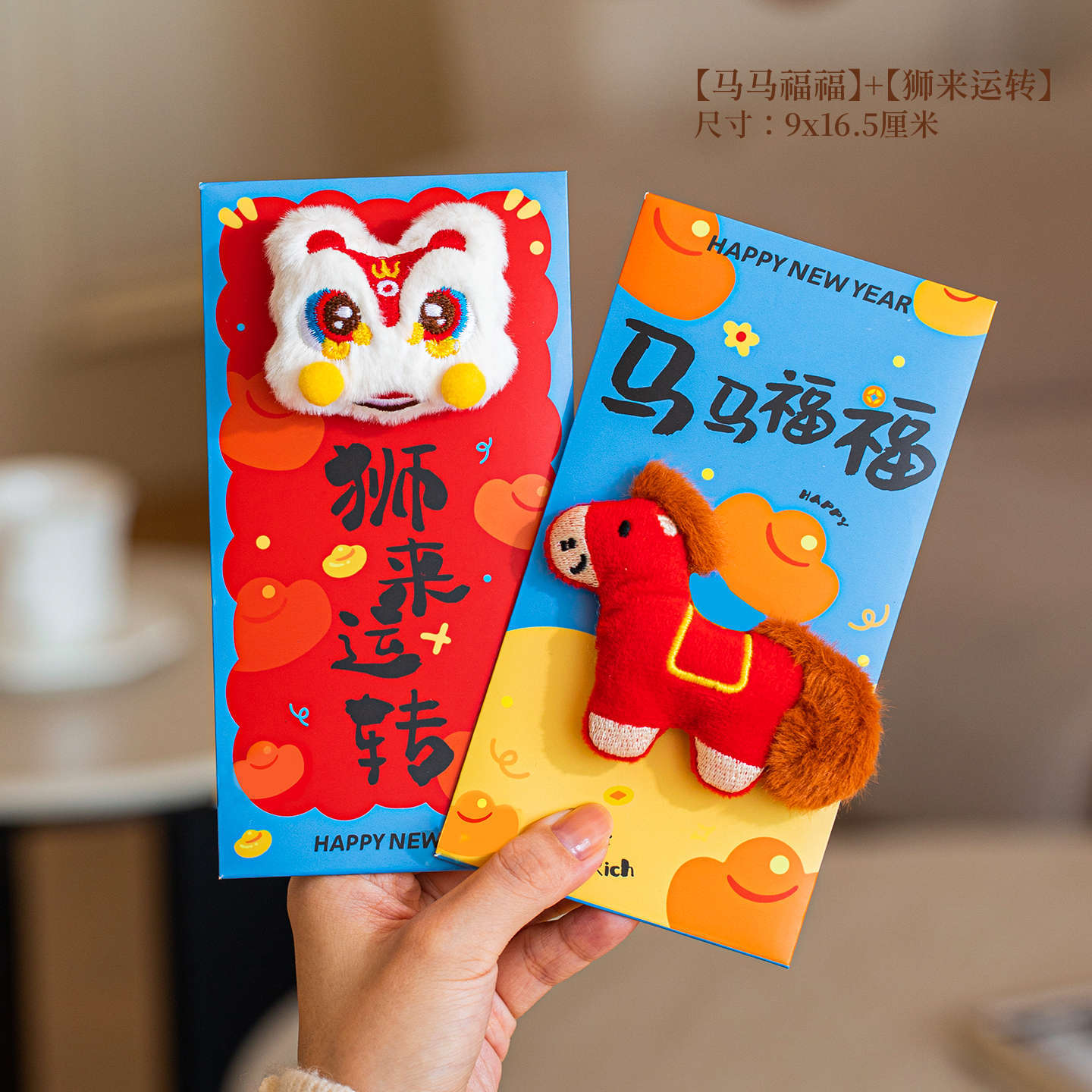 2026马年红包春节新年毛绒卡通个性创意利是封袋过年压岁红包现货