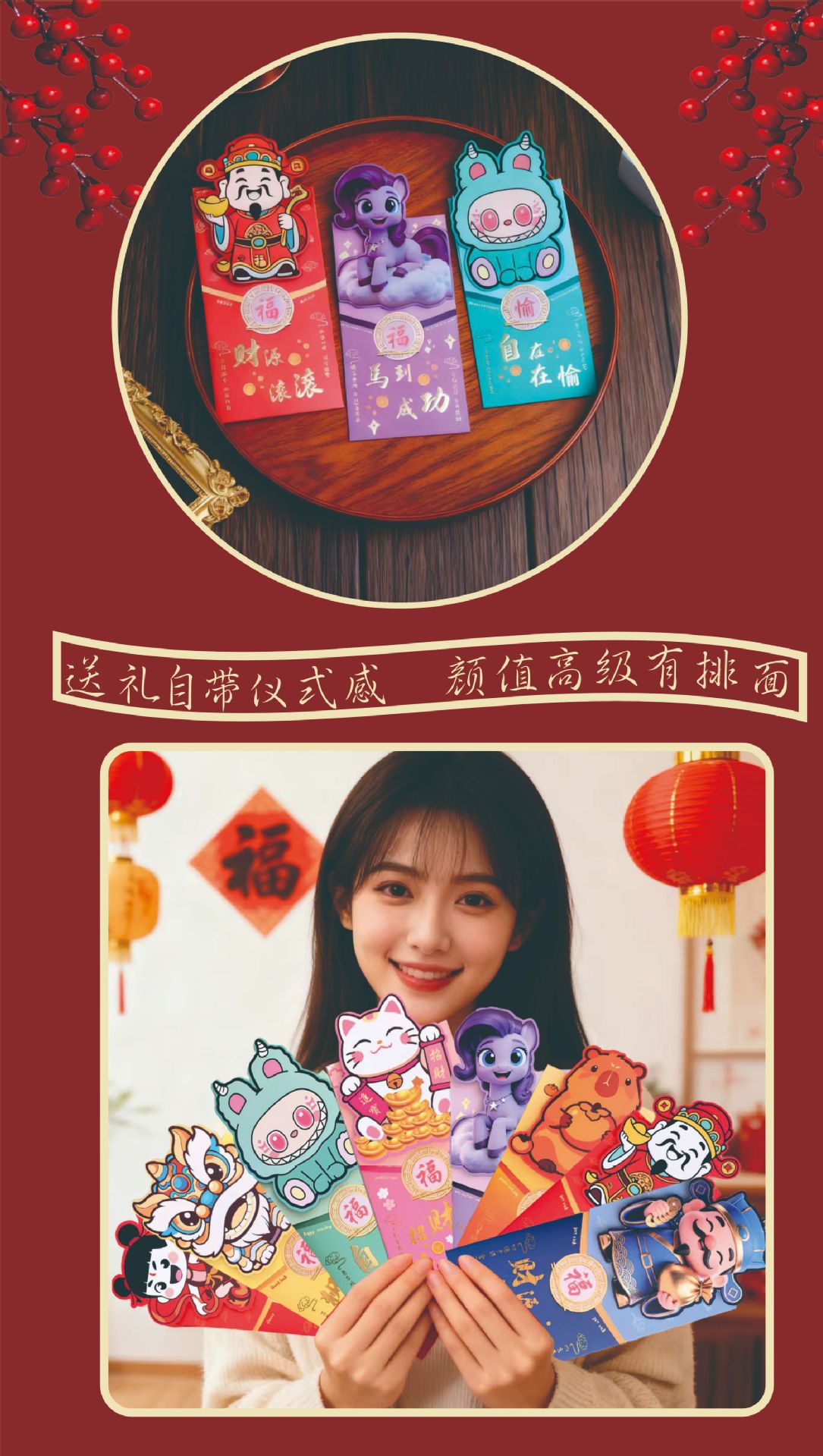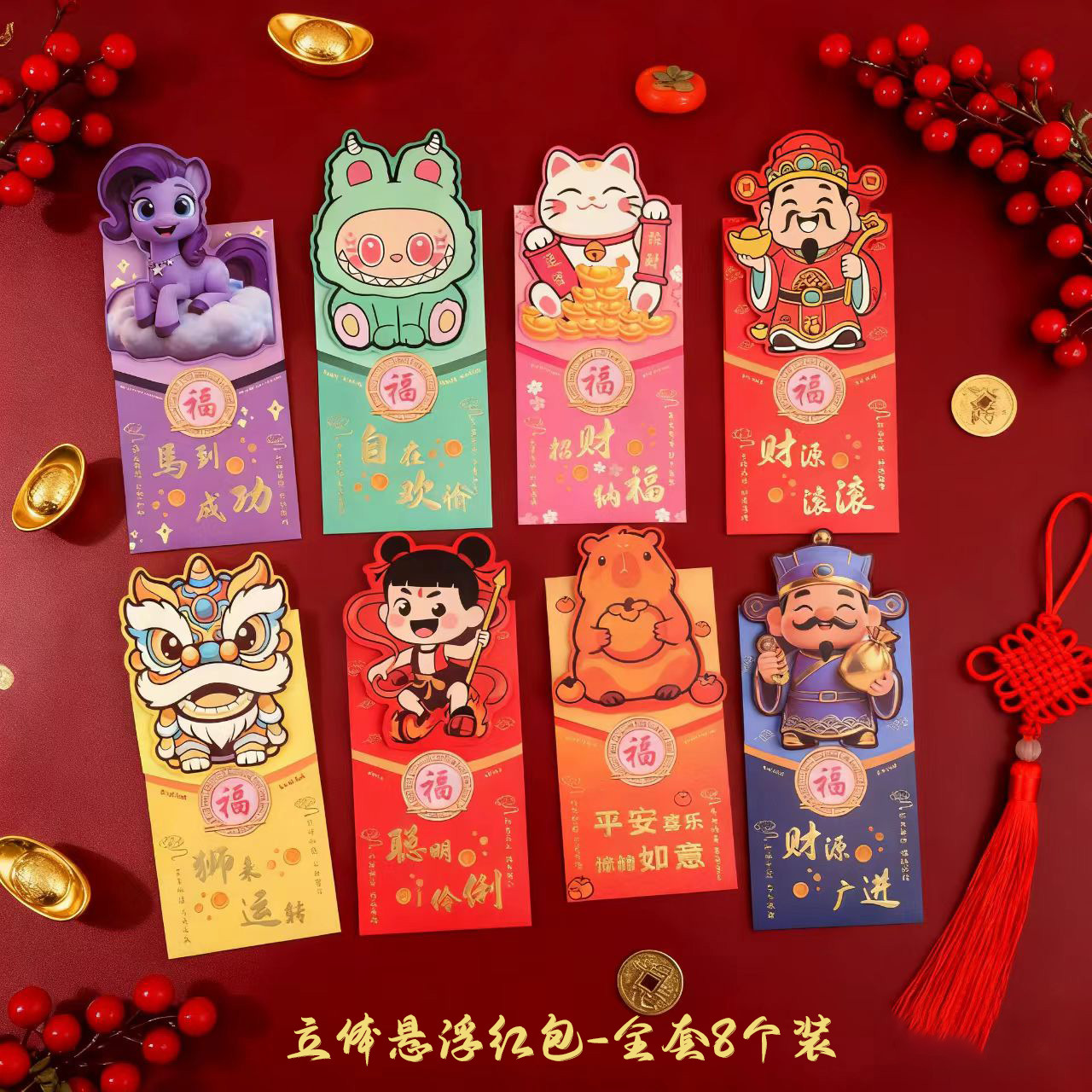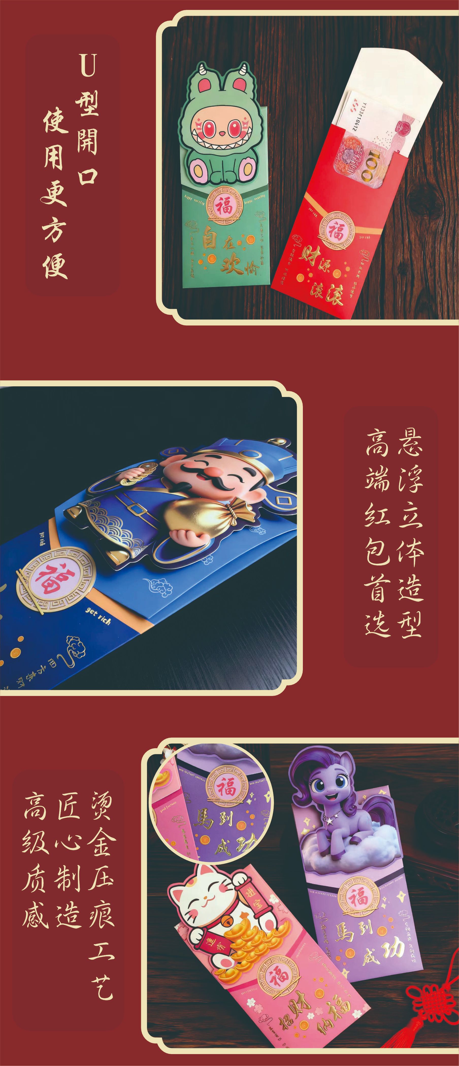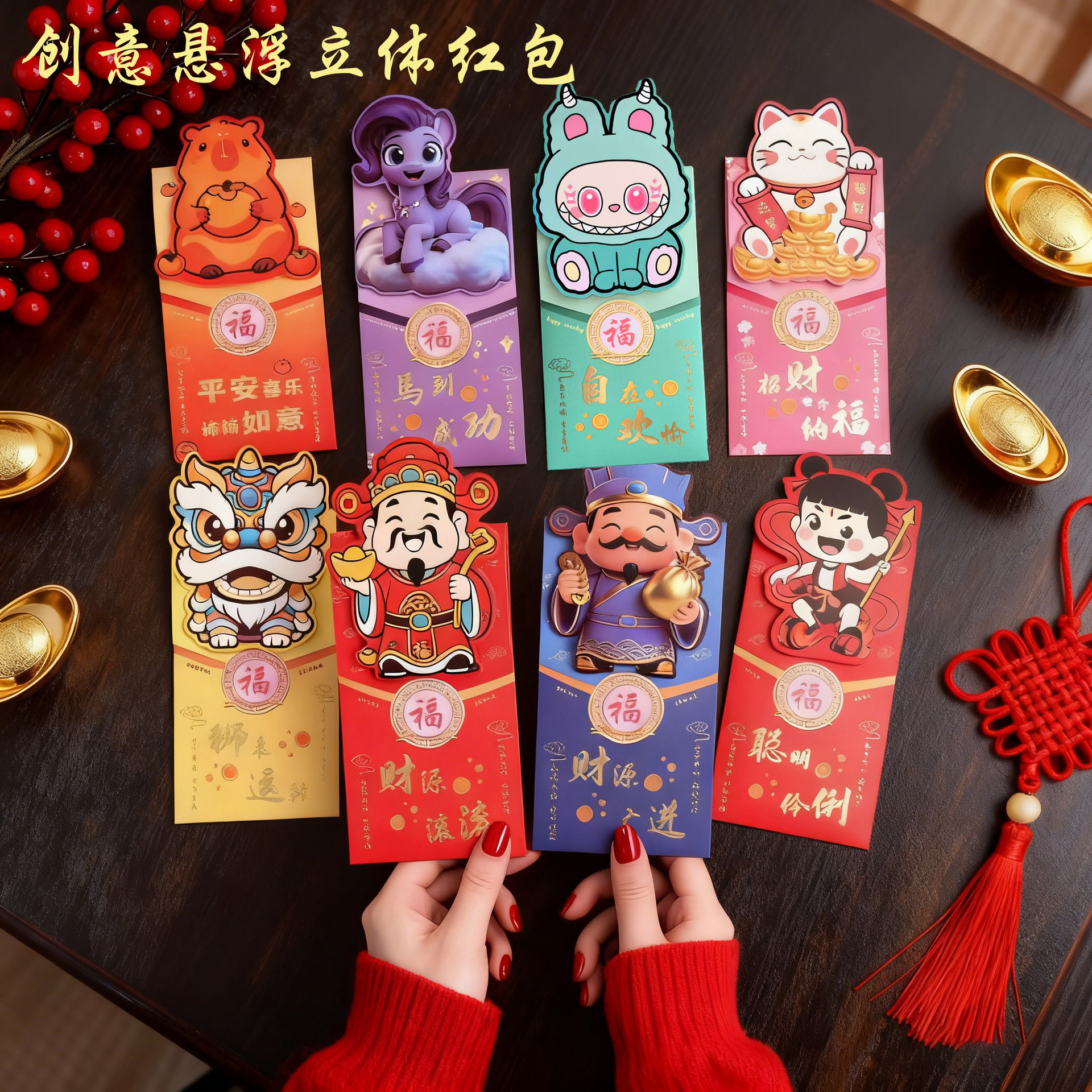 2026新款马年红包3D立体悬浮款红包创意卡通造型拉布布财神利是封