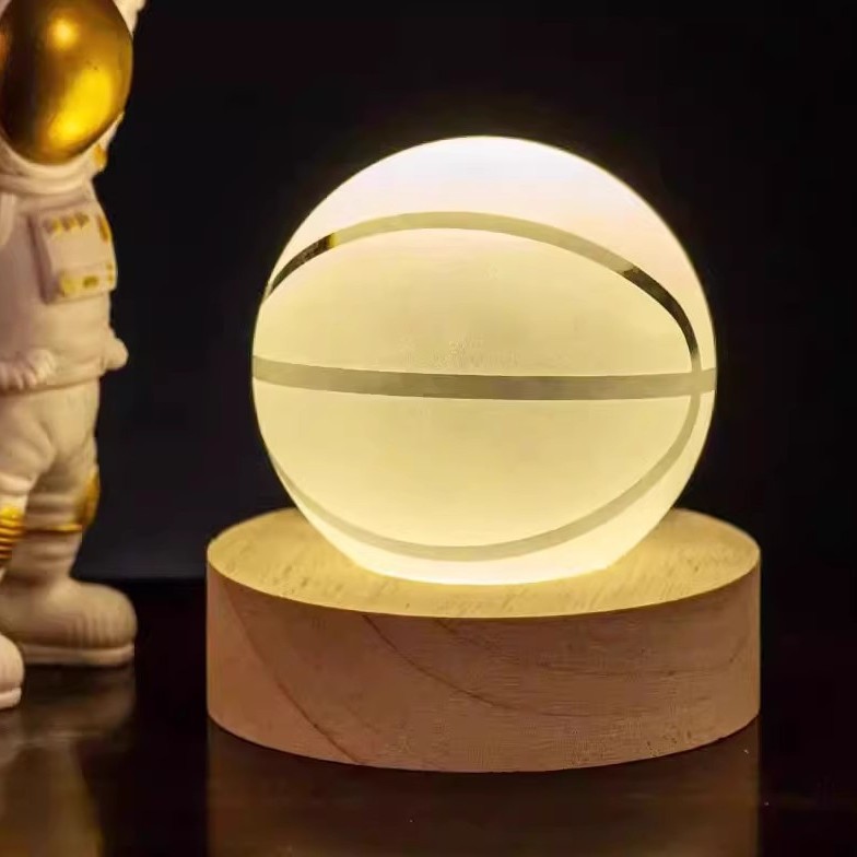 厂家创意水晶橄榄球足球篮球小夜灯工艺品六一儿童节礼品摆件批发