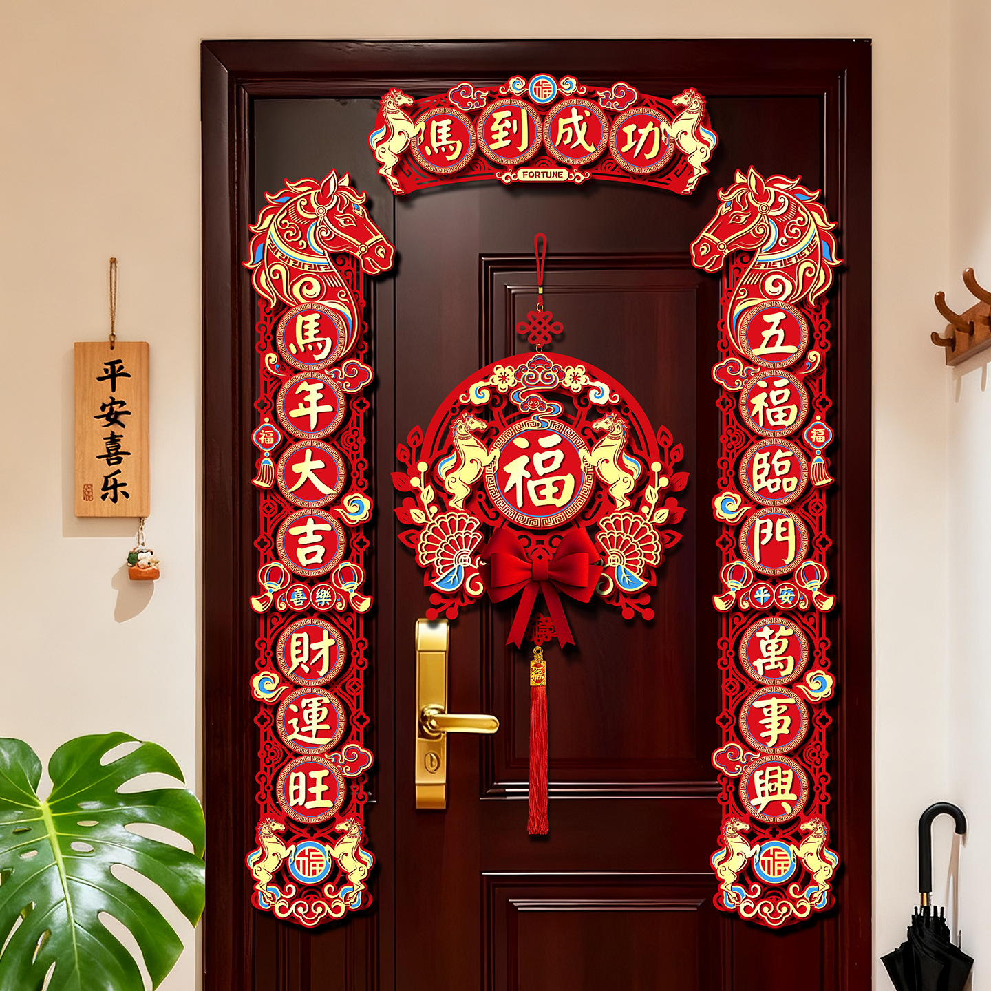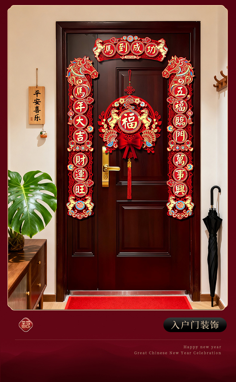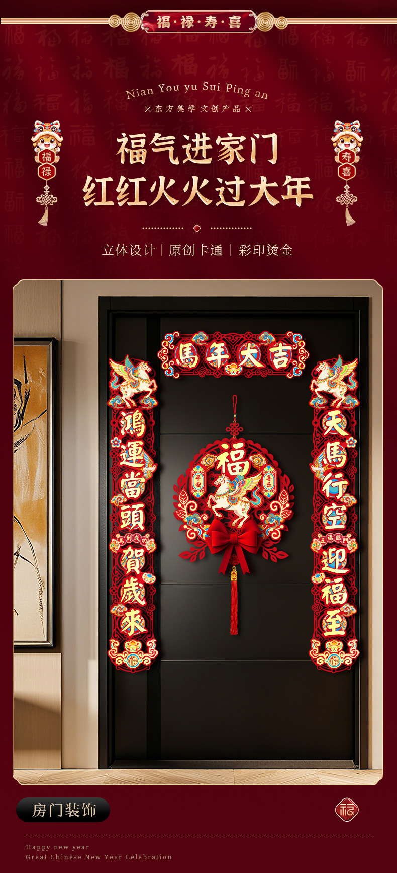 2026马年对联新春布置装饰用品春节磁吸对联马年布置门贴全套装饰