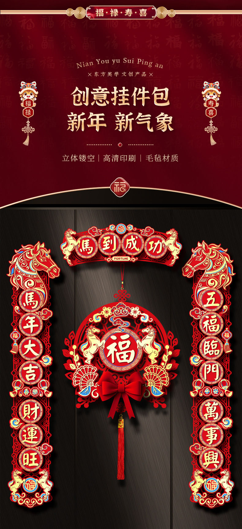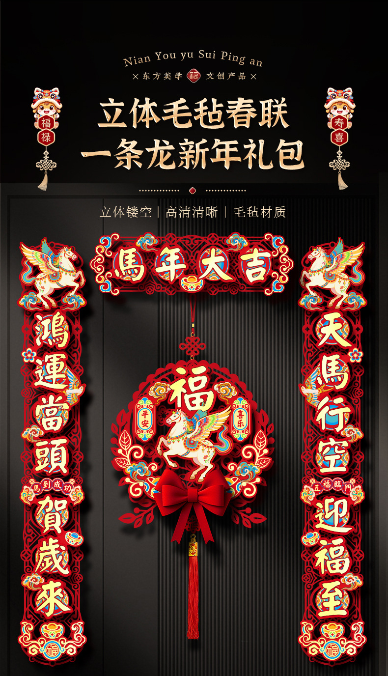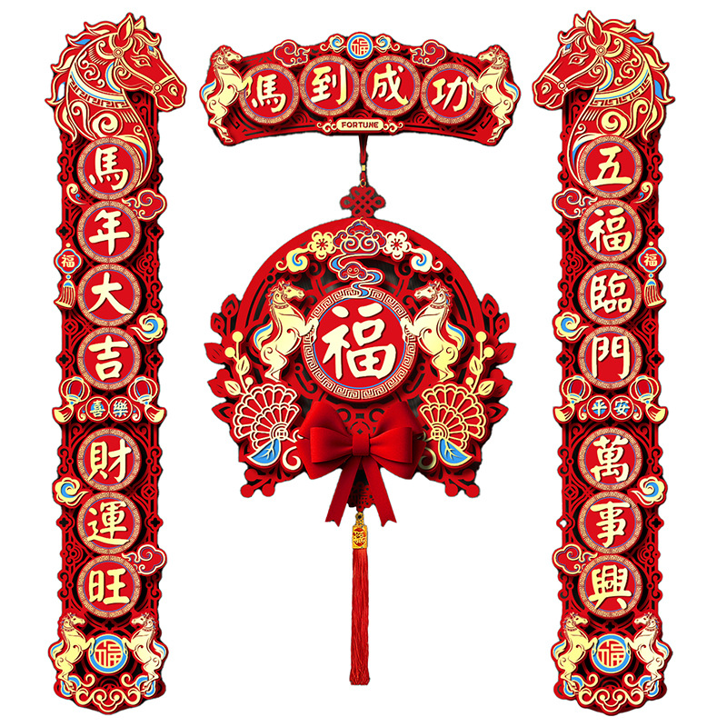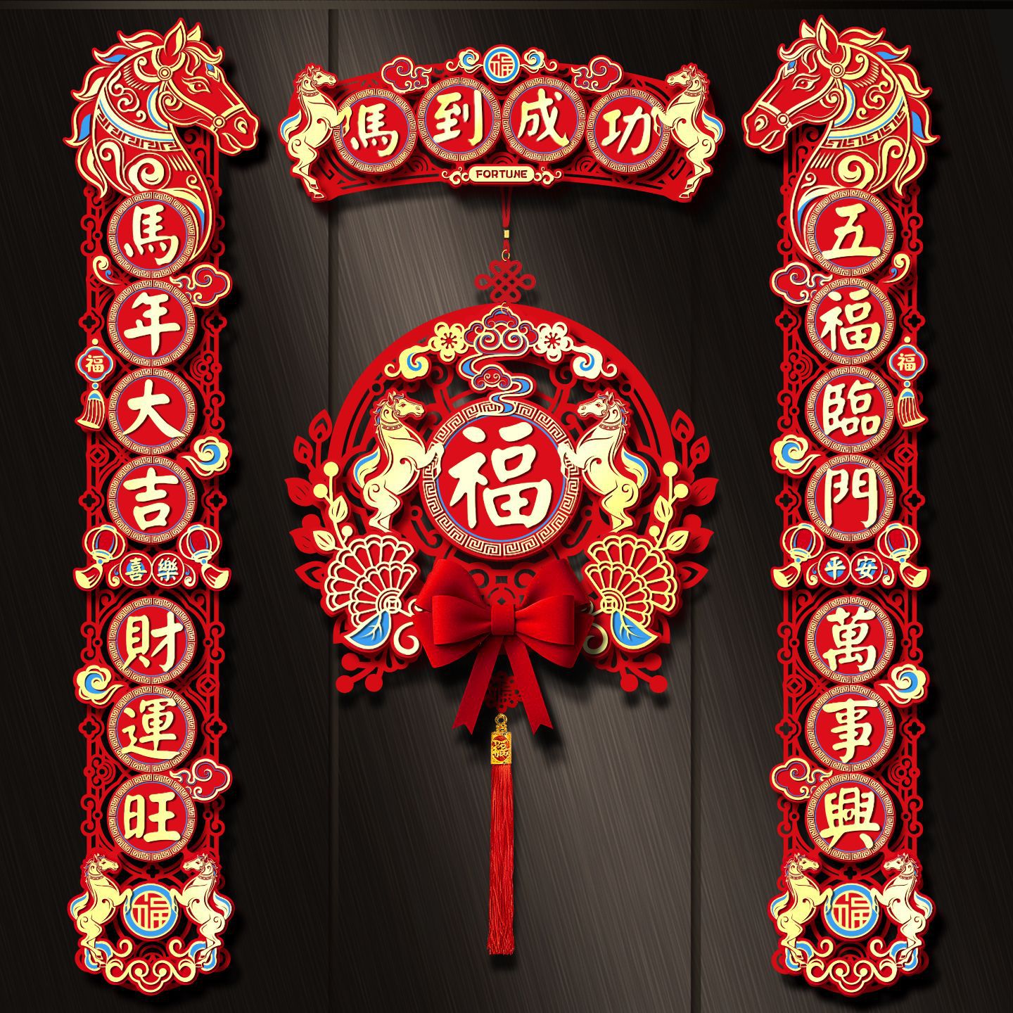 2026马年对联新春布置装饰用品春节磁吸对联马年布置门贴全套装饰