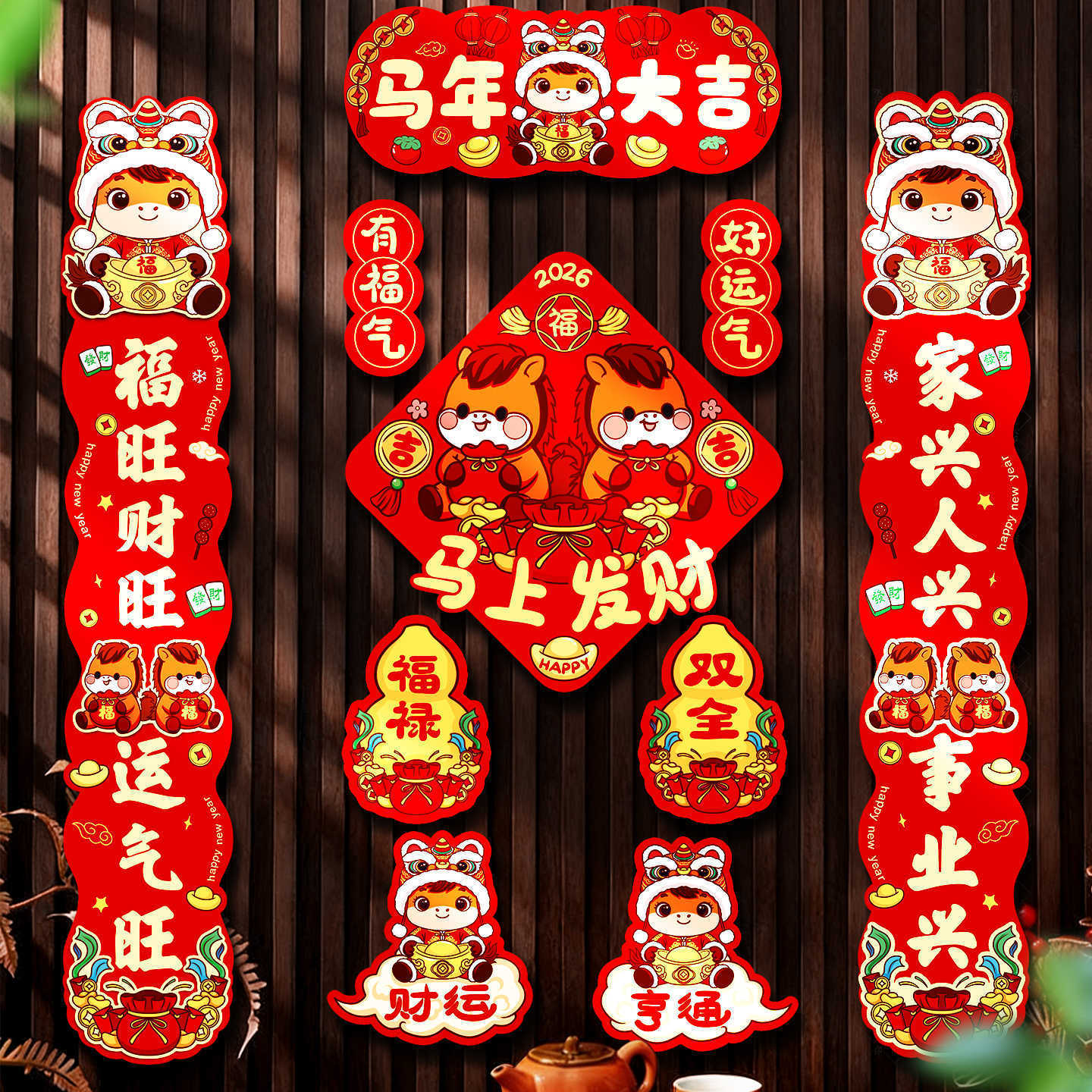 磁吸对联马年新款卡通春联家用新年春节过年福字春联入户门贴装饰