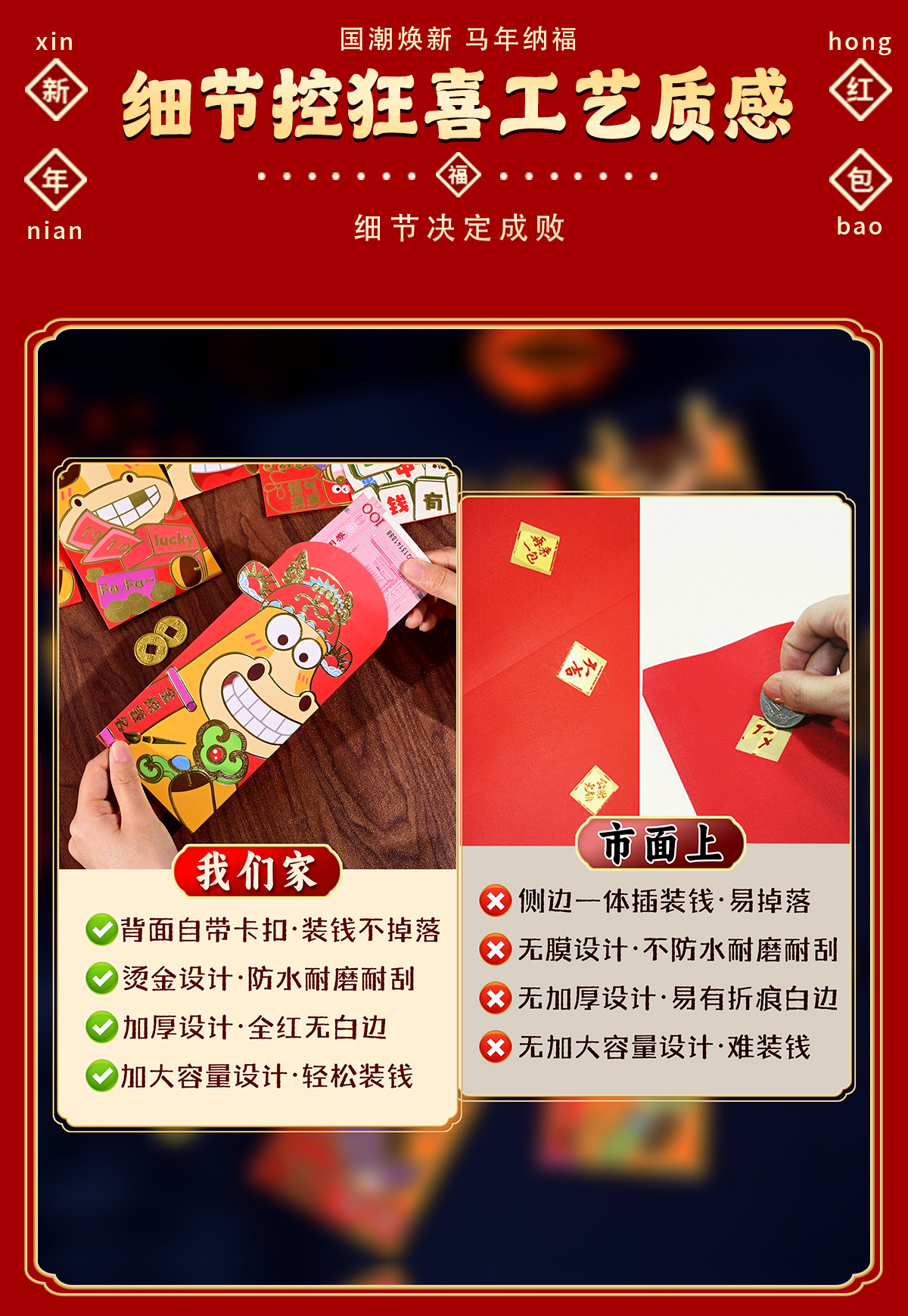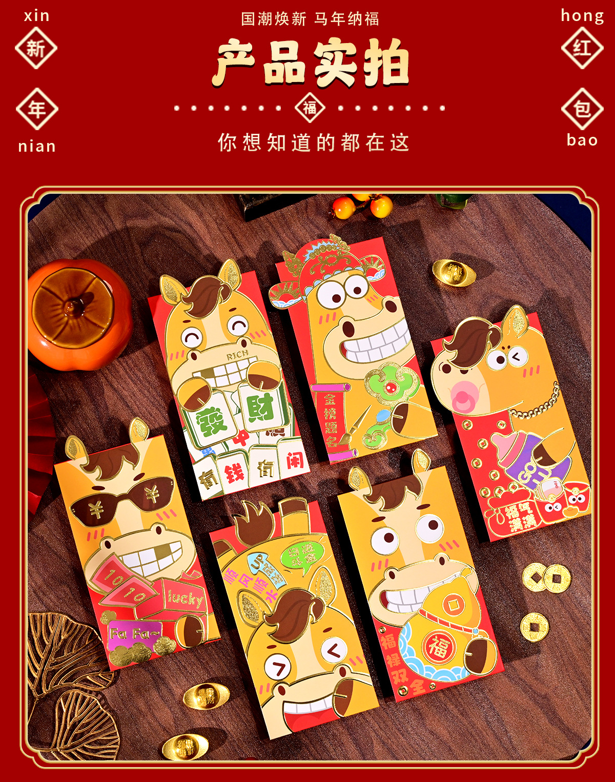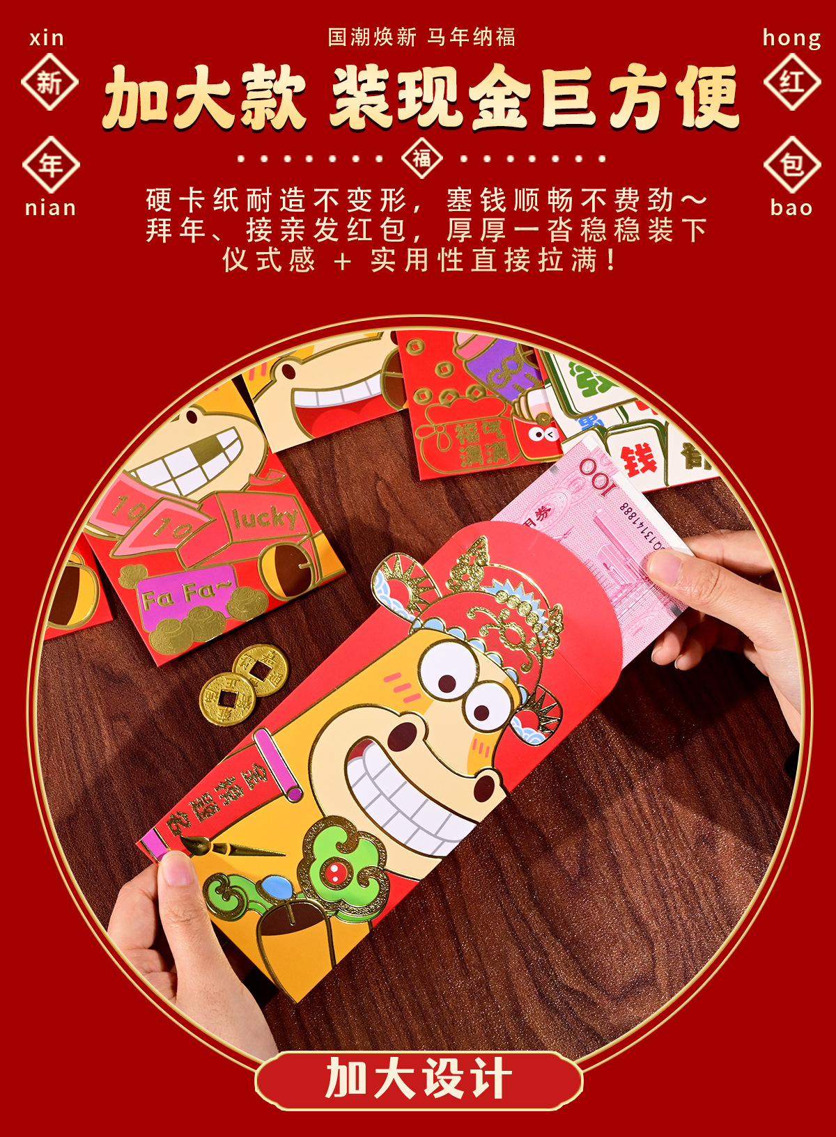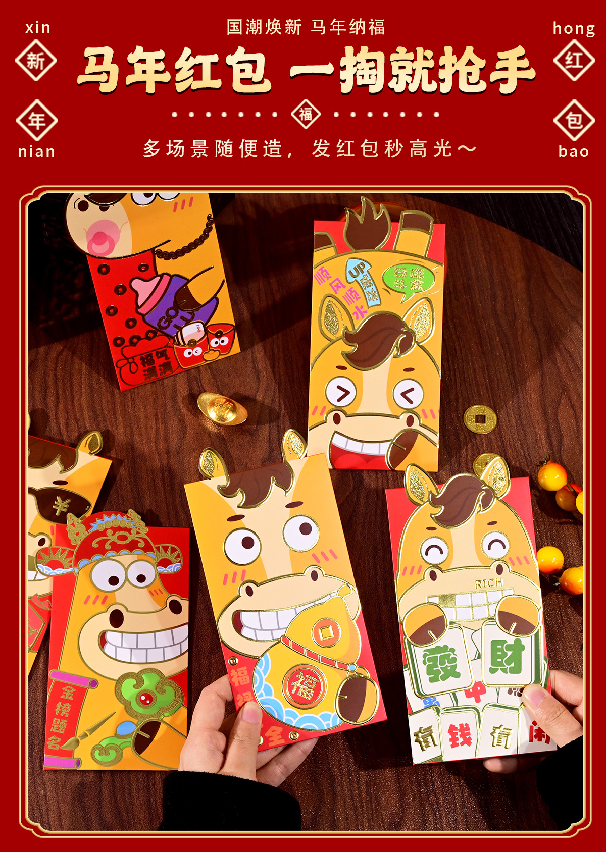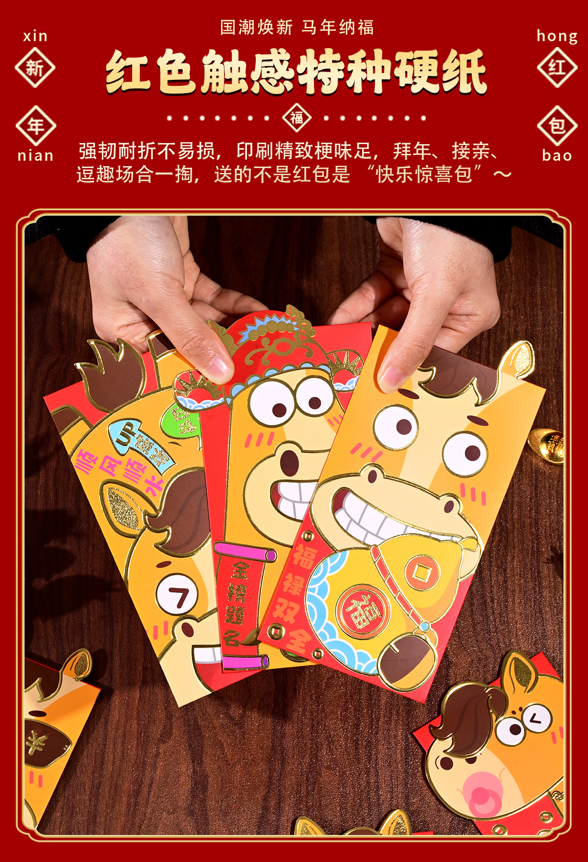 立体卡通马年压岁红包创意新春迎新年贺喜加厚烫金利是封现货批发