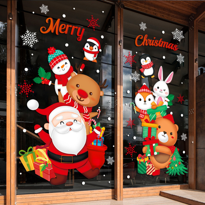 圣诞装饰品静电商场店铺玻璃贴圣诞节圣诞老人雪人圣诞树铃铛贴画