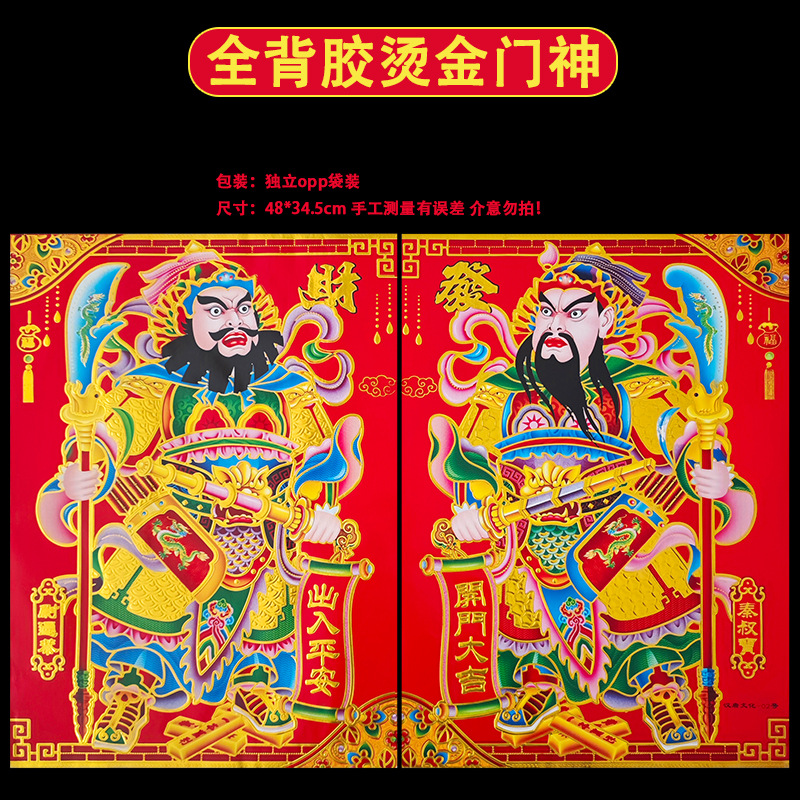 门神 厂家直销四开植绒烫金门神 新年春节门贴财神年货用品批发