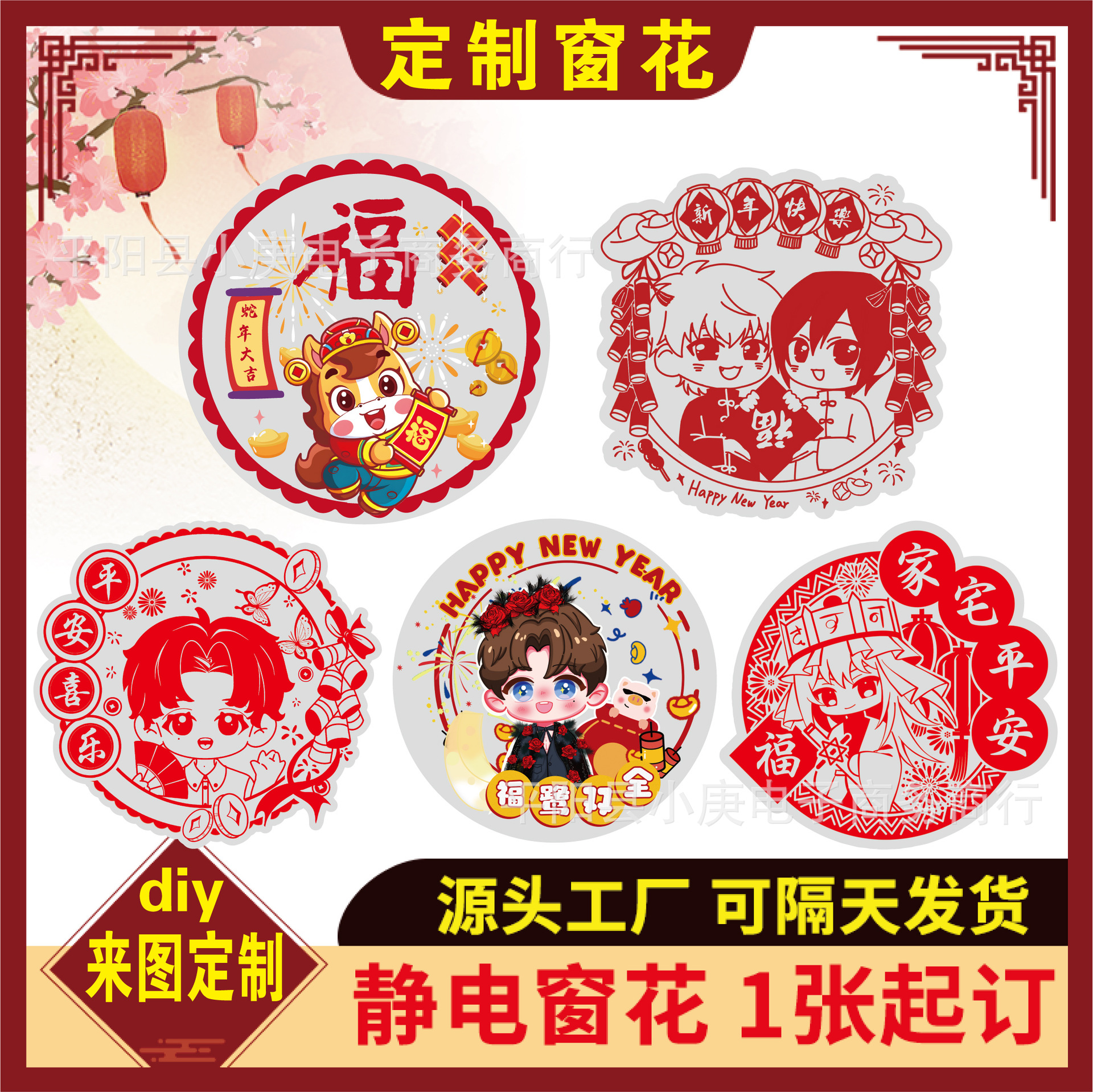 2026马年新款福字贴新年剪纸过年玻璃窗花静电贴春节窗户装饰定制
