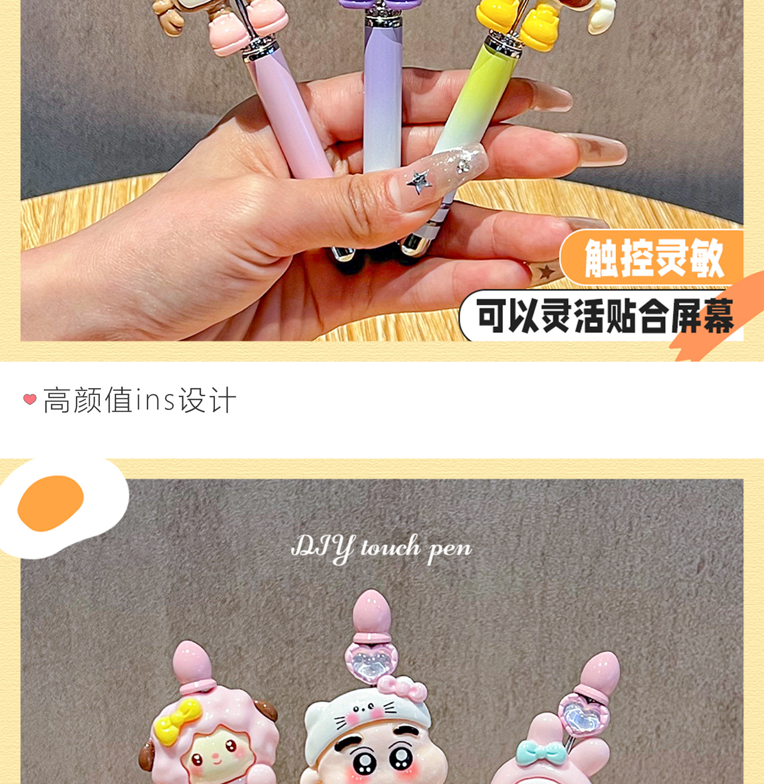 手工diy三丽欧配件手机平板高颜值触屏笔卡通ins风速干中性笔跨境