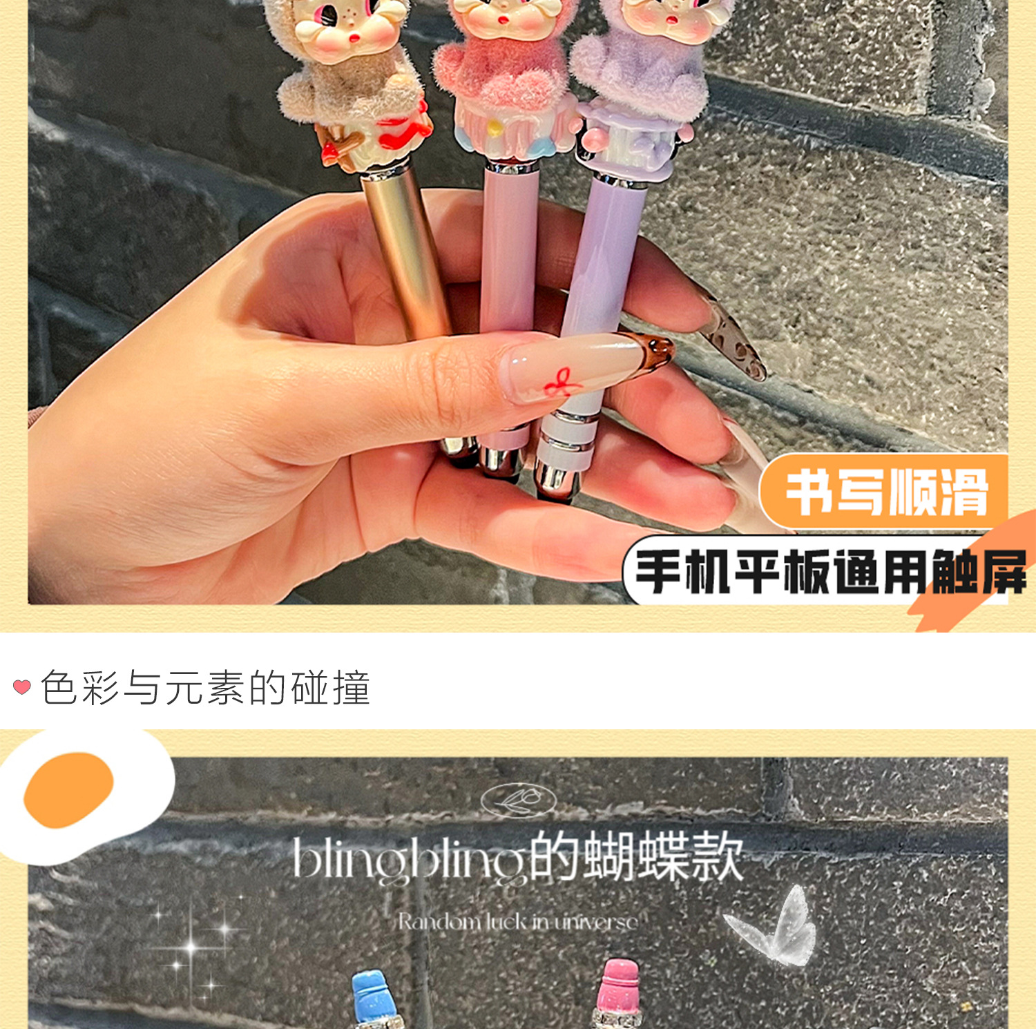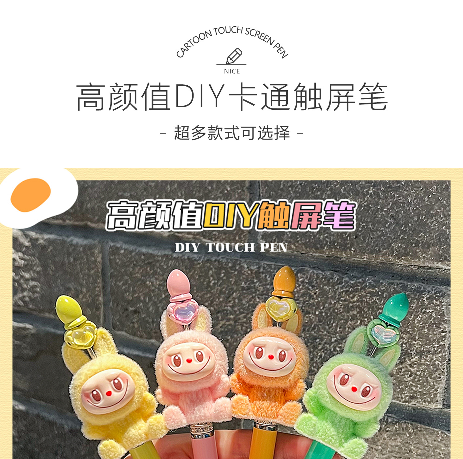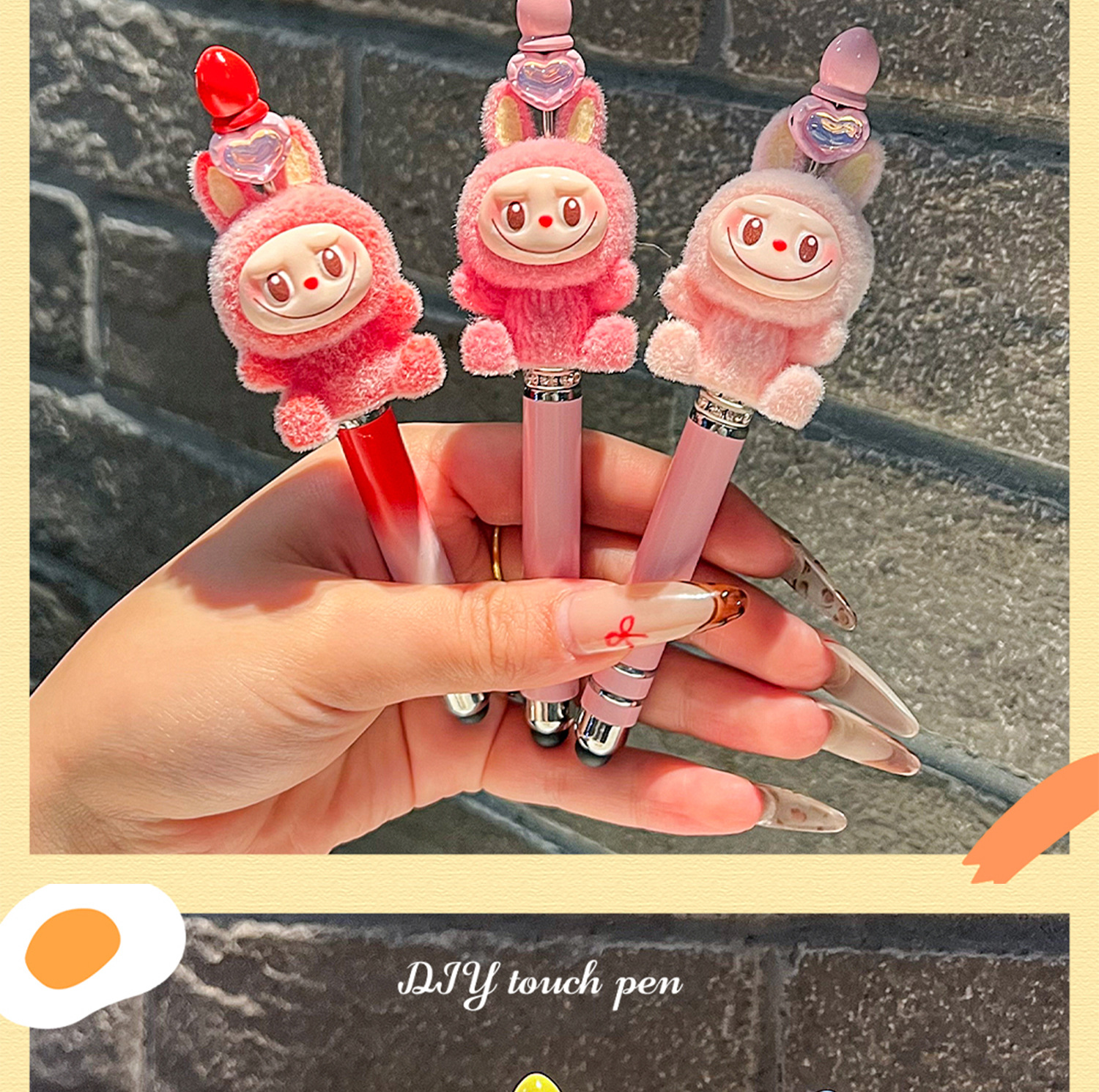 diy手绘串珠labubu公仔手机触屏圆珠笔卡通学生拉布布写字中性笔