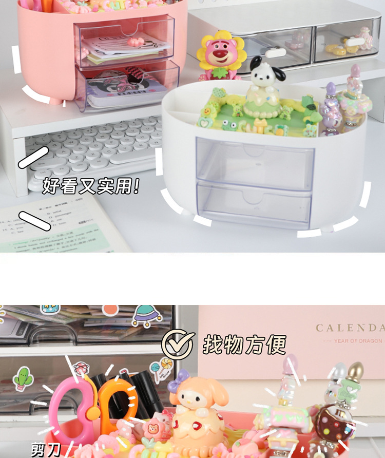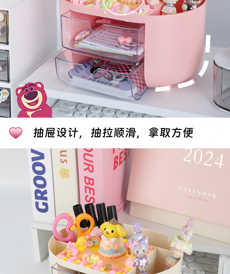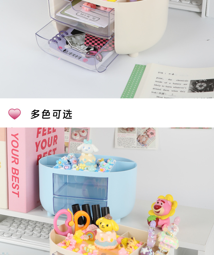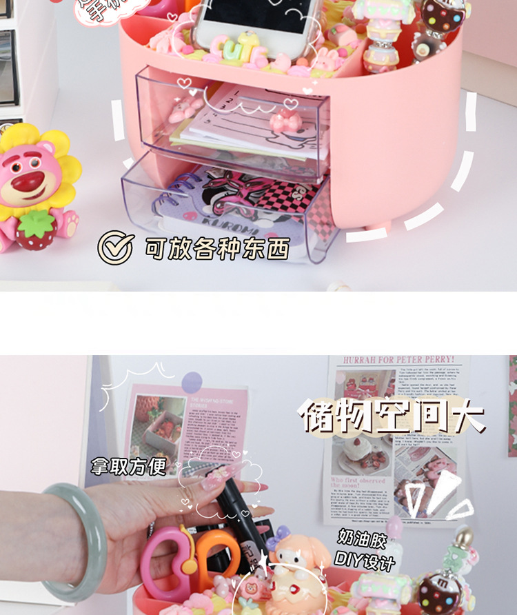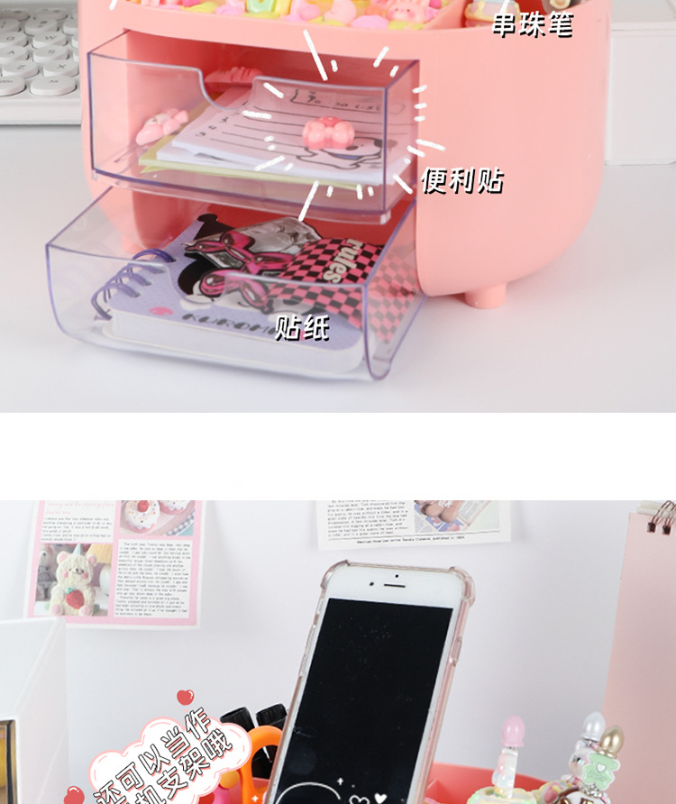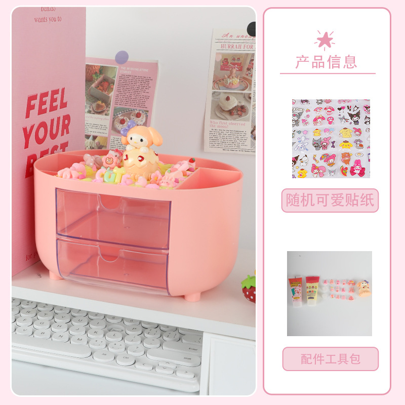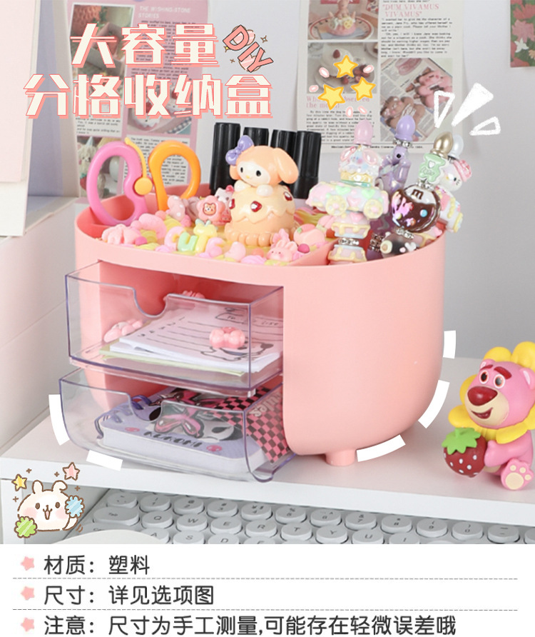 多功能女孩手工DIY分格收纳盒 儿童创意抽屉式桌面防尘整理笔筒盒