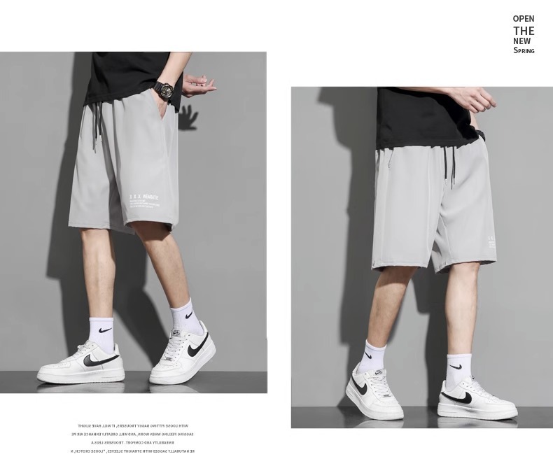 新款夏季外穿运动跑步短裤男ins薄款速干五分裤冰丝宽松休闲裤子