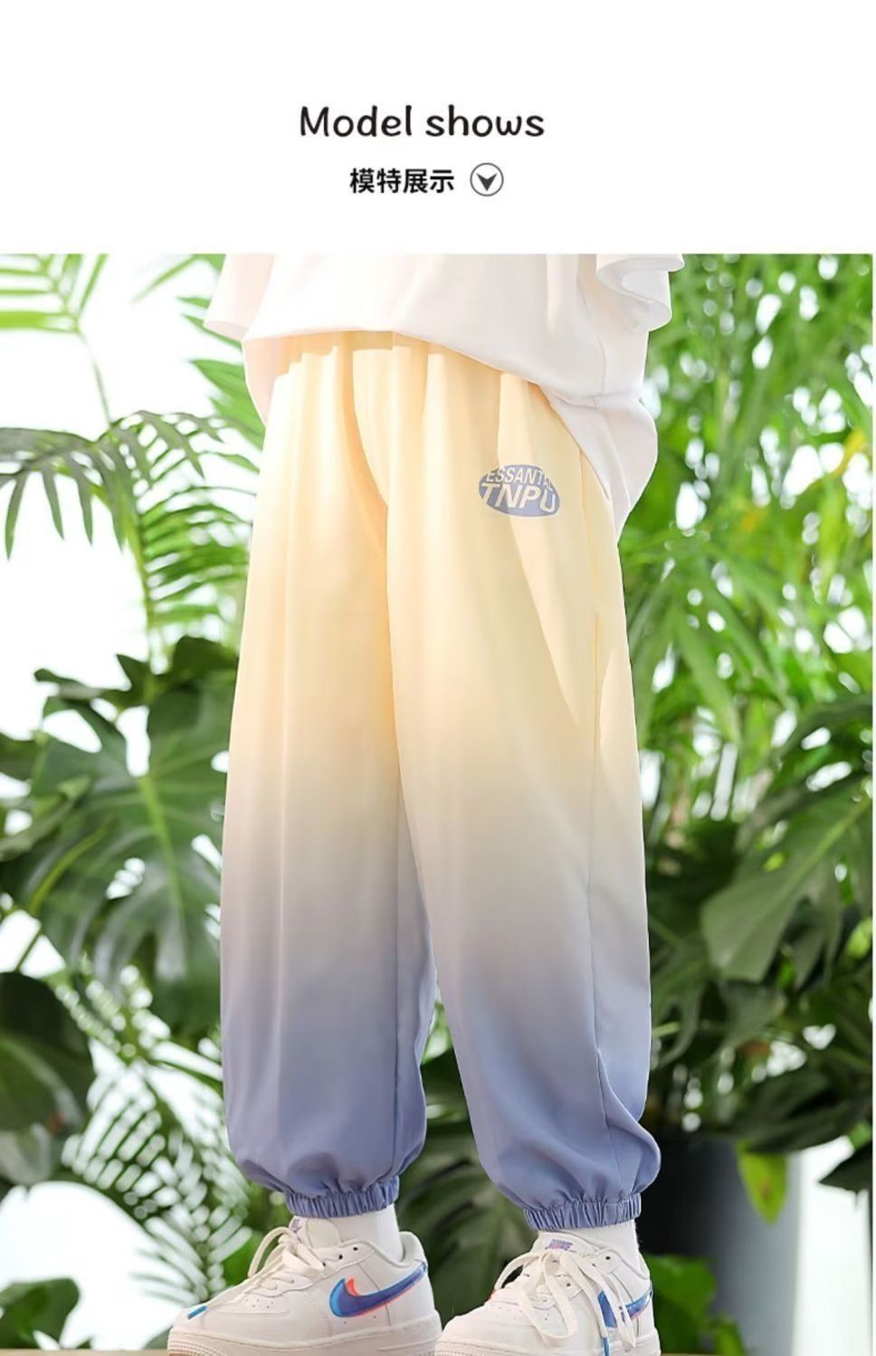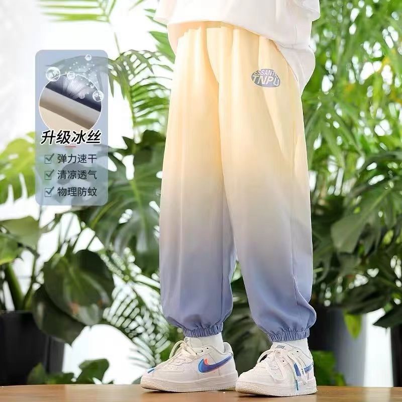 男童夏季薄款防蚊裤儿童渐变冰丝裤男女中大童百搭休闲速干长裤潮