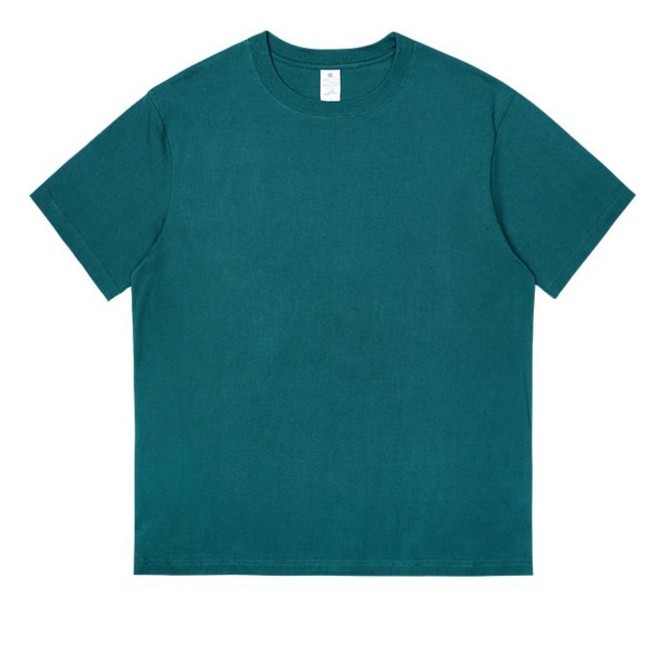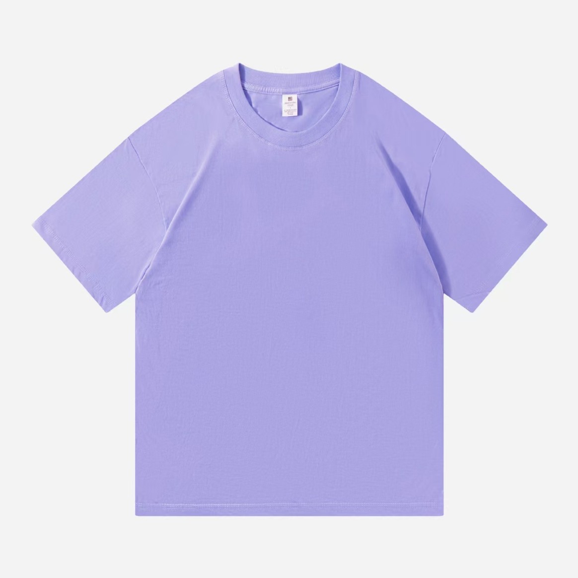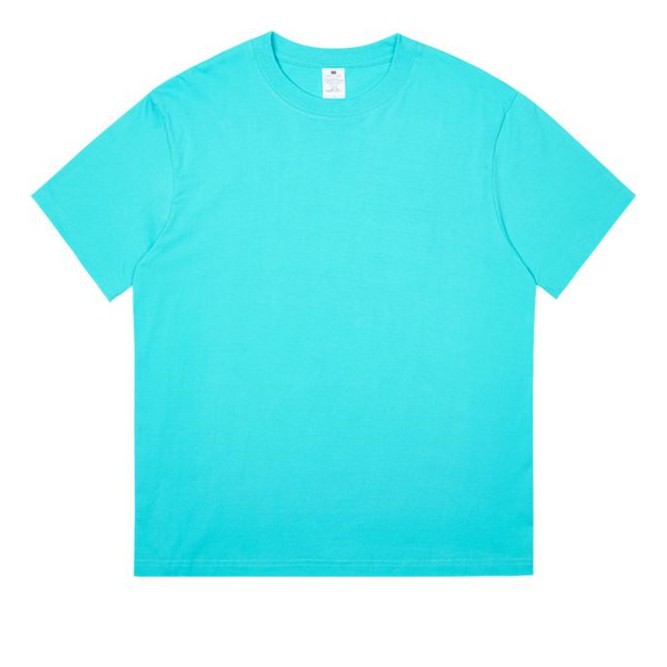 夏日限定奶蓝色!400g重磅纯棉圆领短袖T恤女 淡蓝色百搭上衣男夏