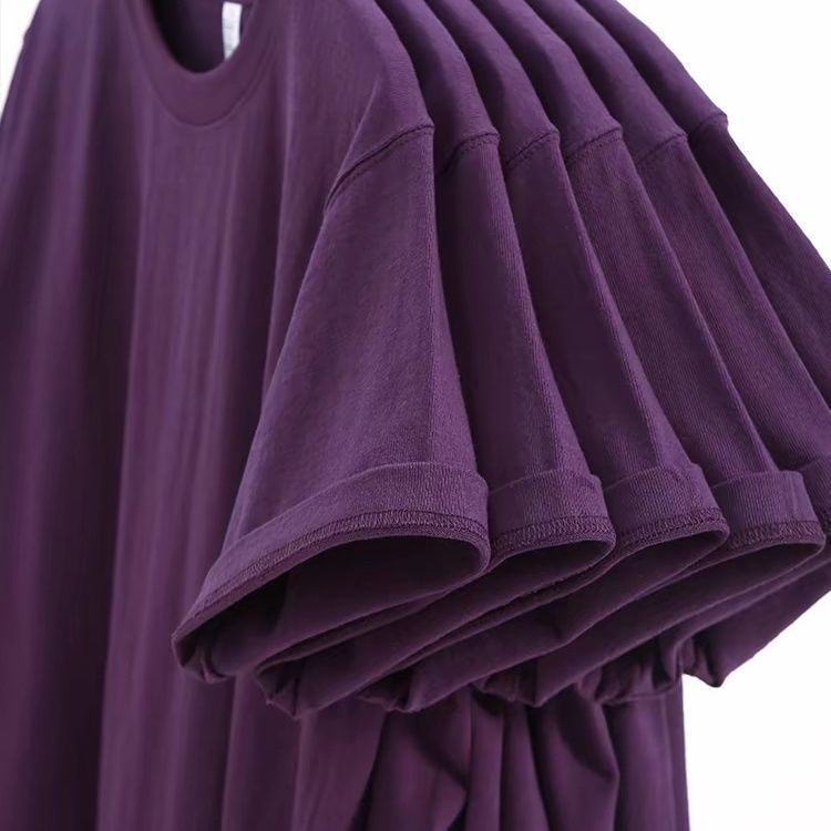 葡萄紫潮流痞帅宽松短袖T恤男女新款夏季体恤半袖百搭ins上衣纯棉