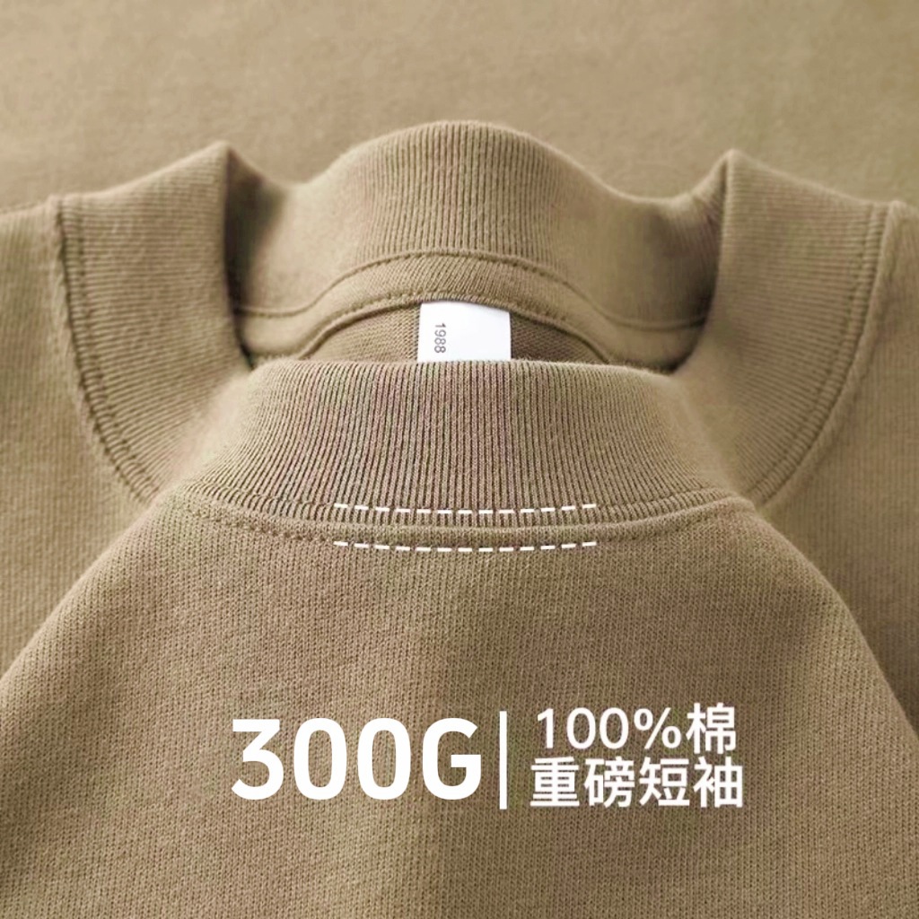 300g精梳纯棉重磅夏季圆领短袖T恤纯色厚实不透宽松百搭半袖上衣