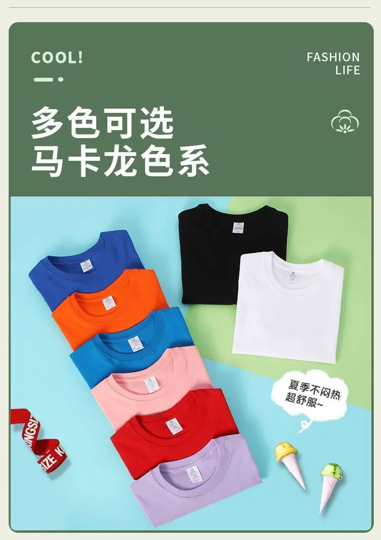 精梳棉儿童圆领t恤印制logo中大童糖果色半袖幼儿园班服可印制