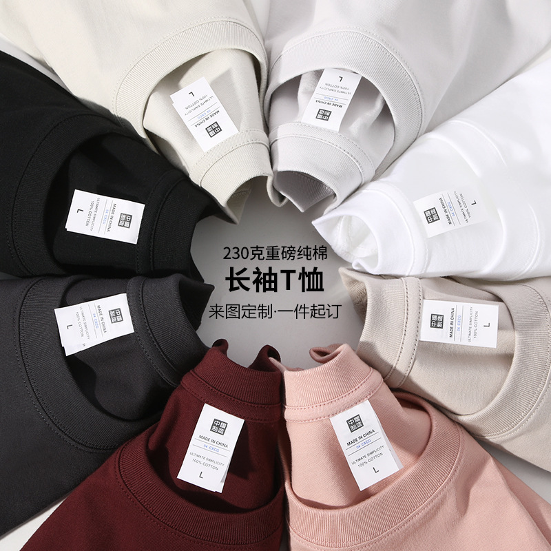 240克重磅新疆精梳棉圆领纯色长袖男t恤宽松打底衫上衣可一件代发