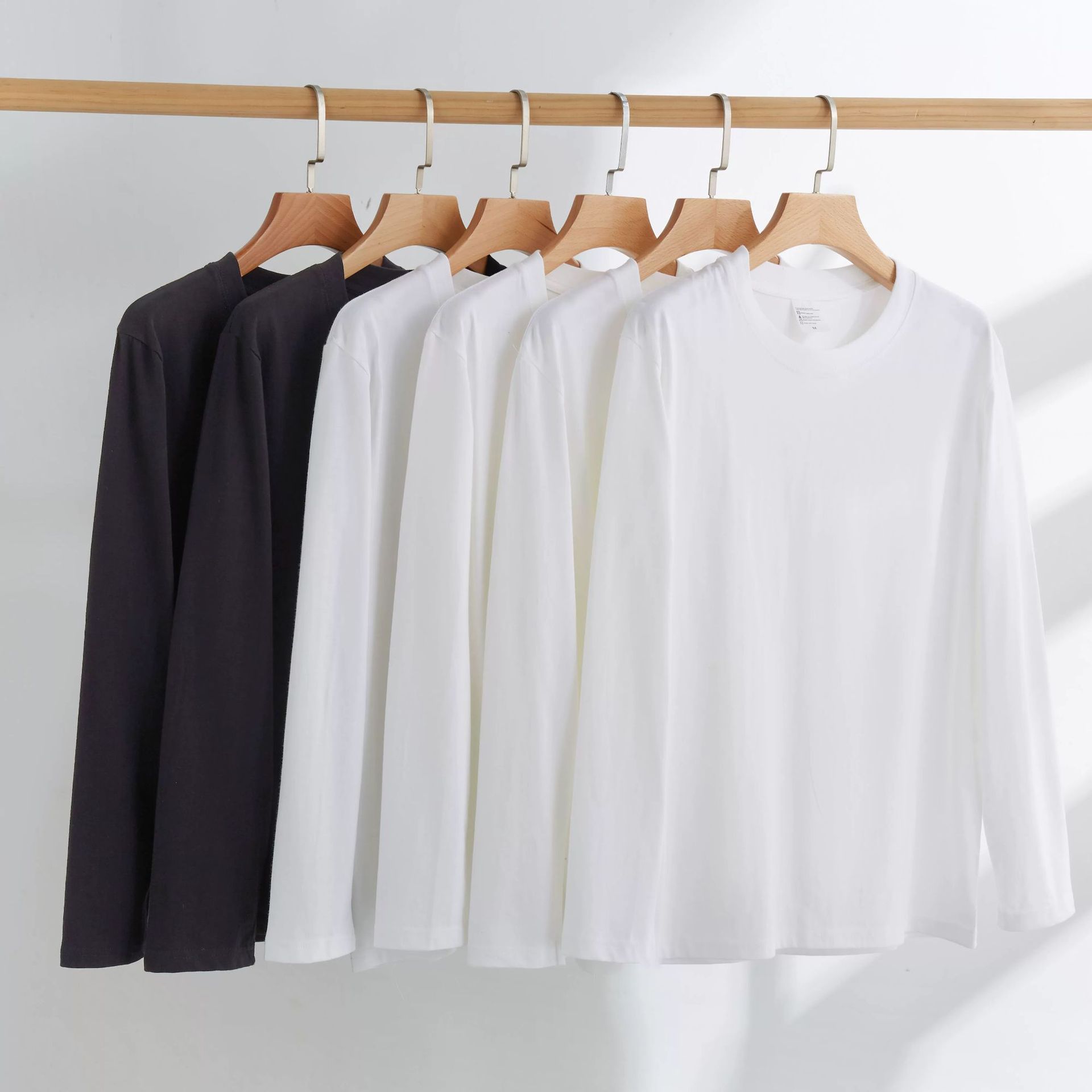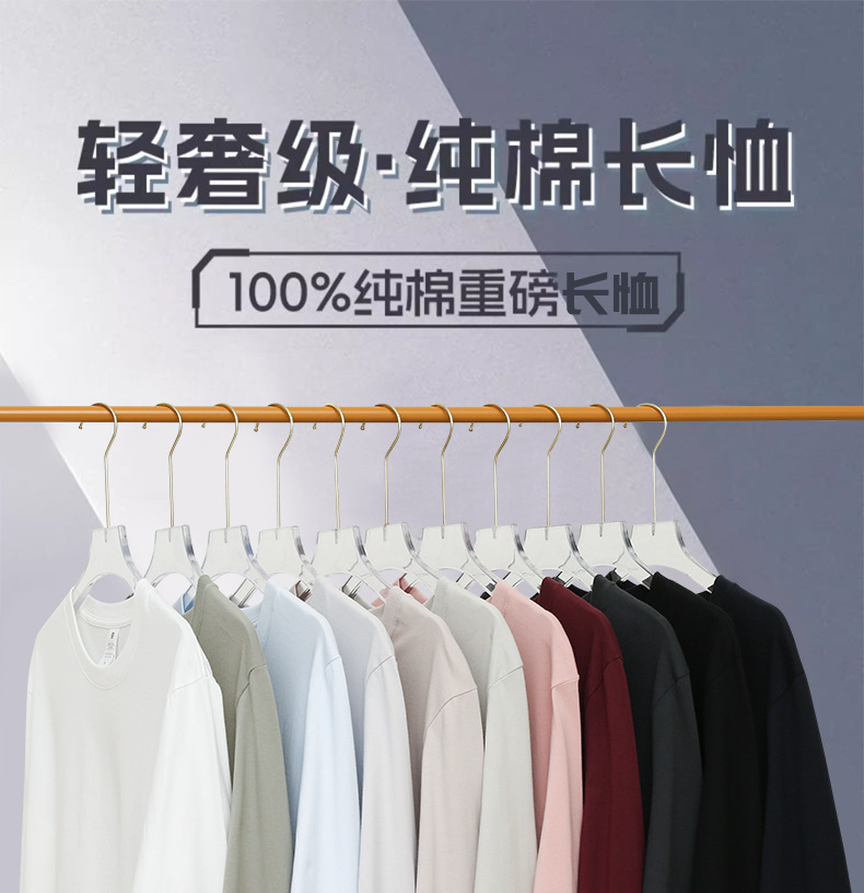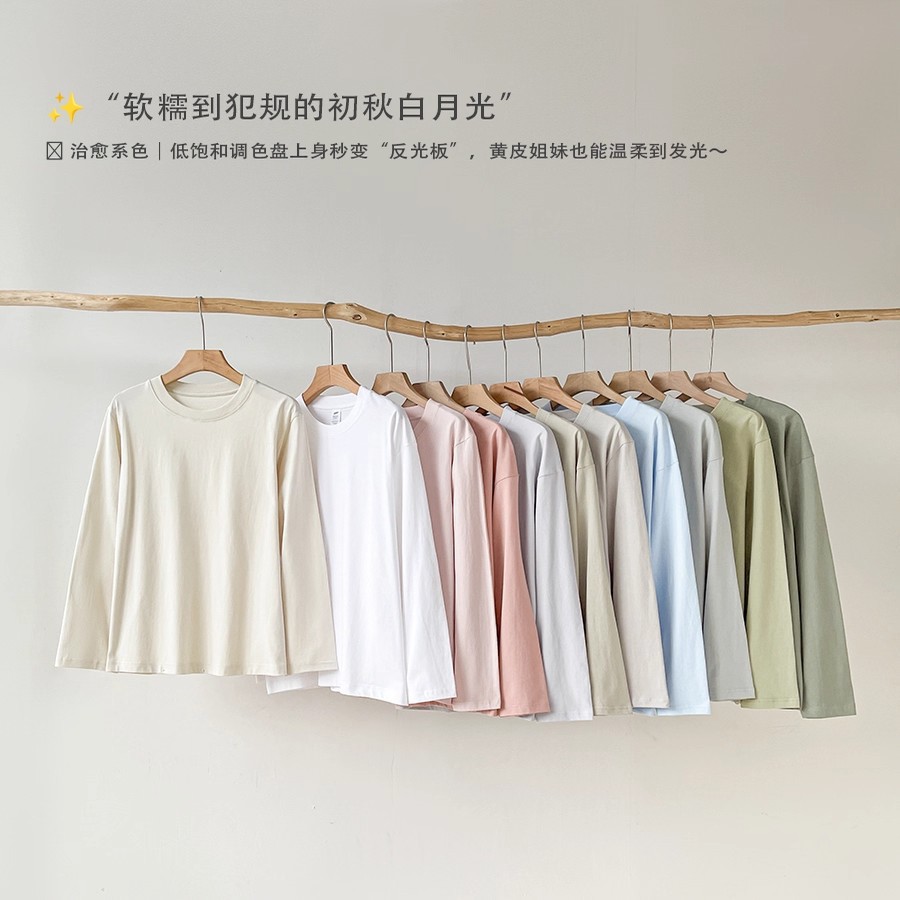 纯棉纯色t恤打底衫圆领宽松休闲2025秋季长袖百搭上衣男女同款