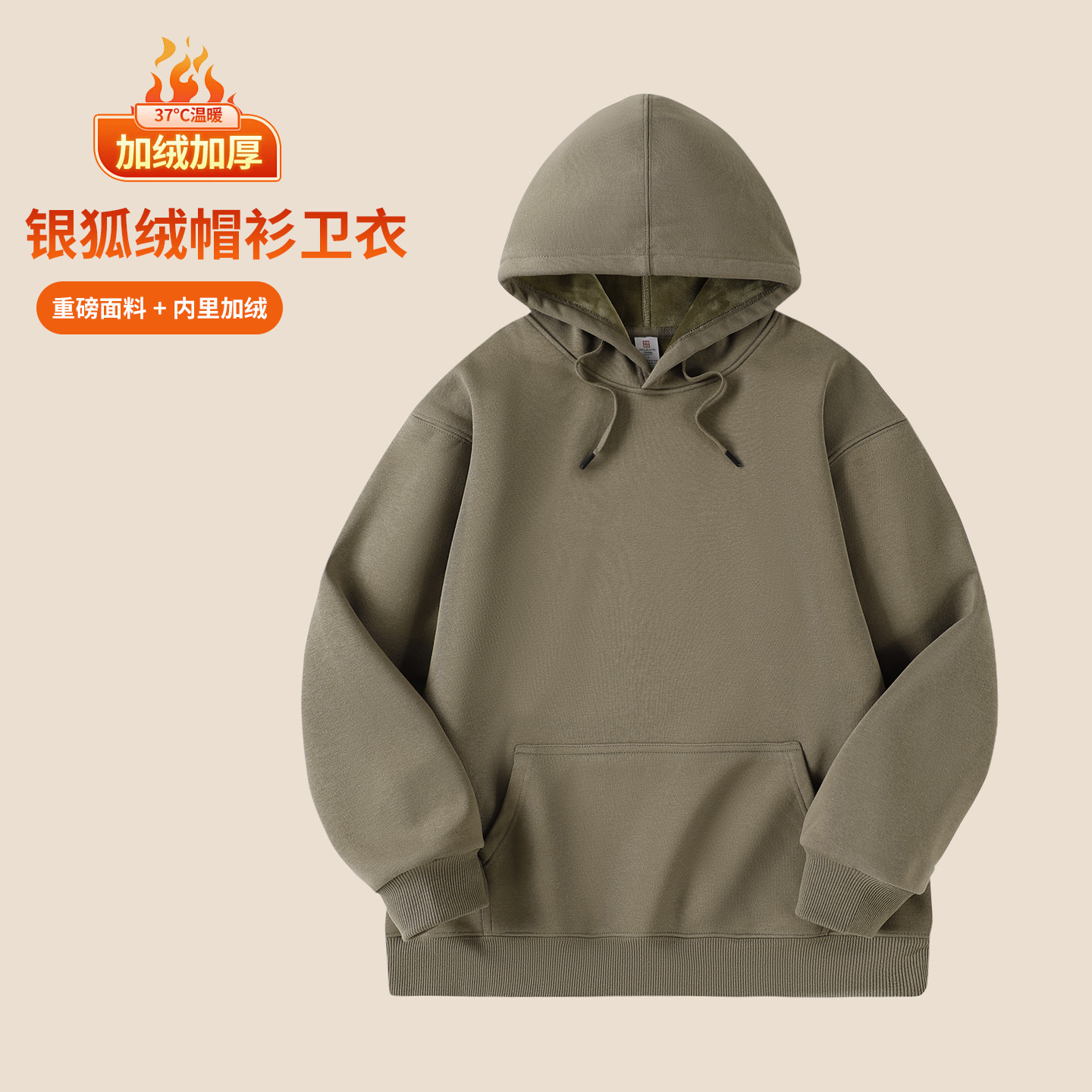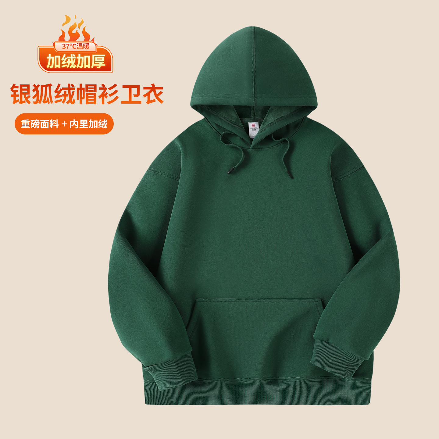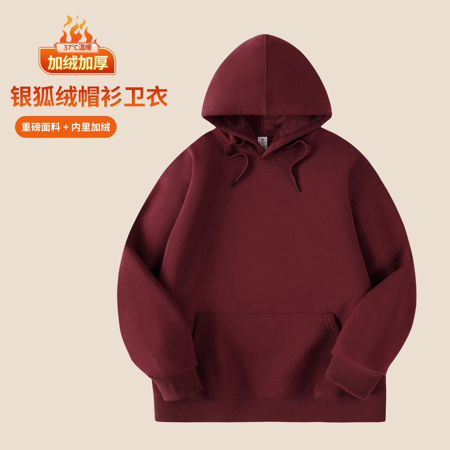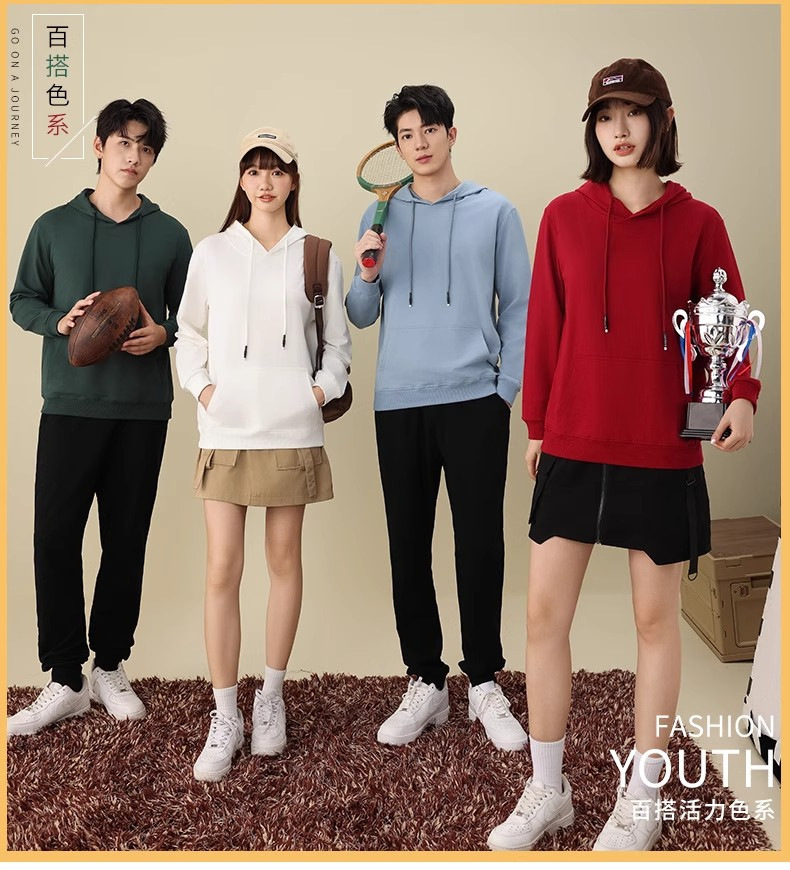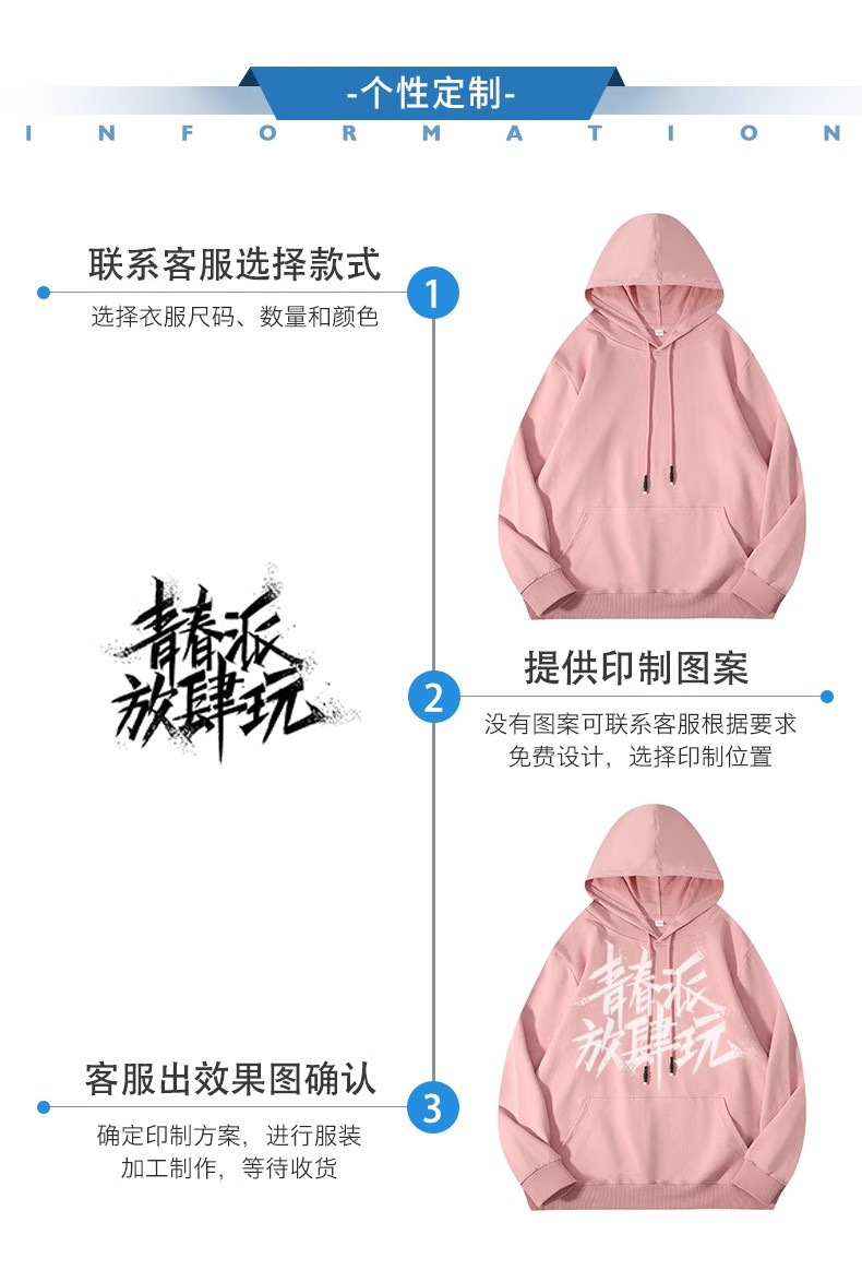 华棉连帽卫衣工作服印制男秋冬季加绒企业团建班服餐饮工装印logo
