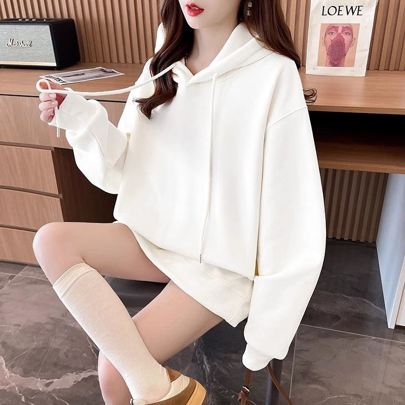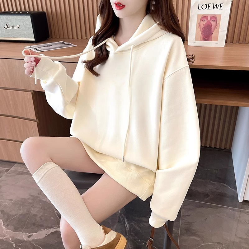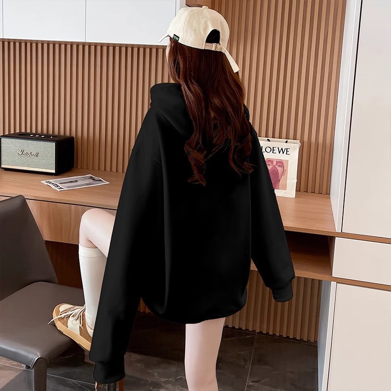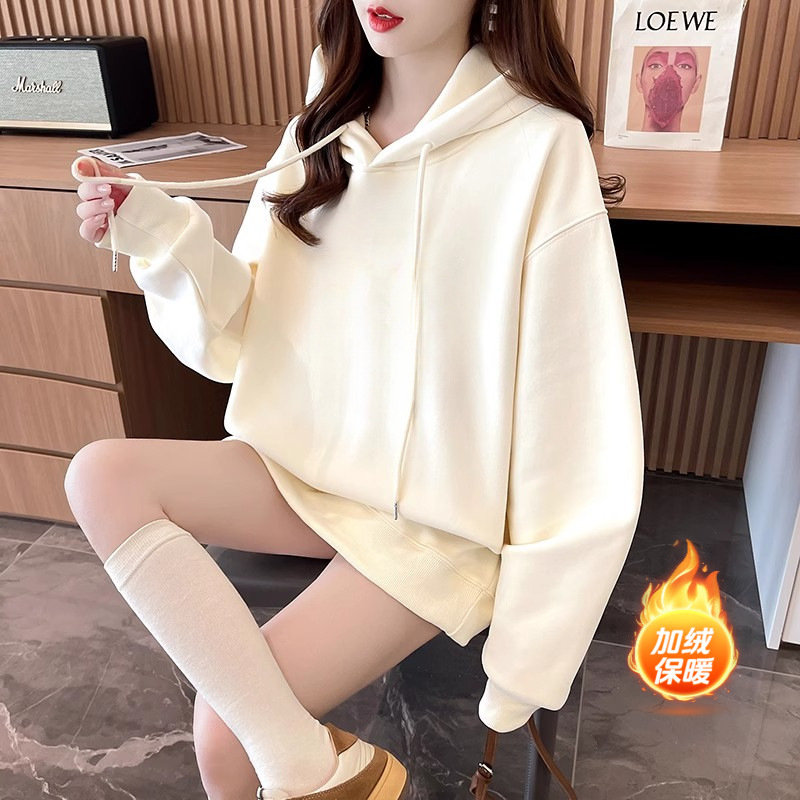 红色本命年时尚连帽套头卫衣女2025秋冬新款加绒宽松印制休闲外套