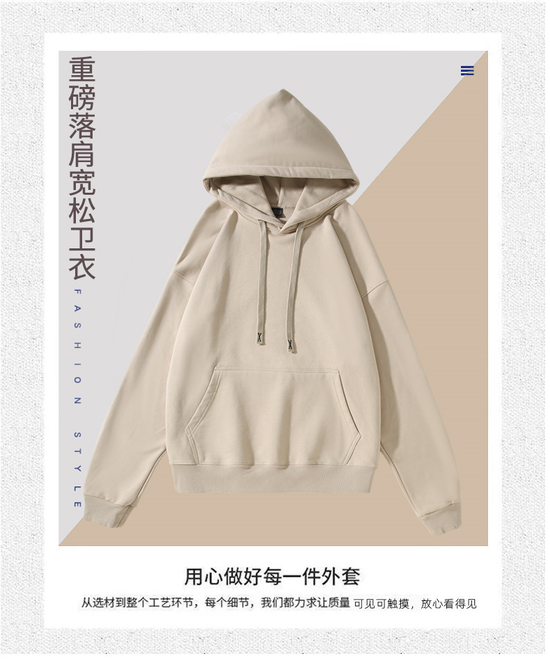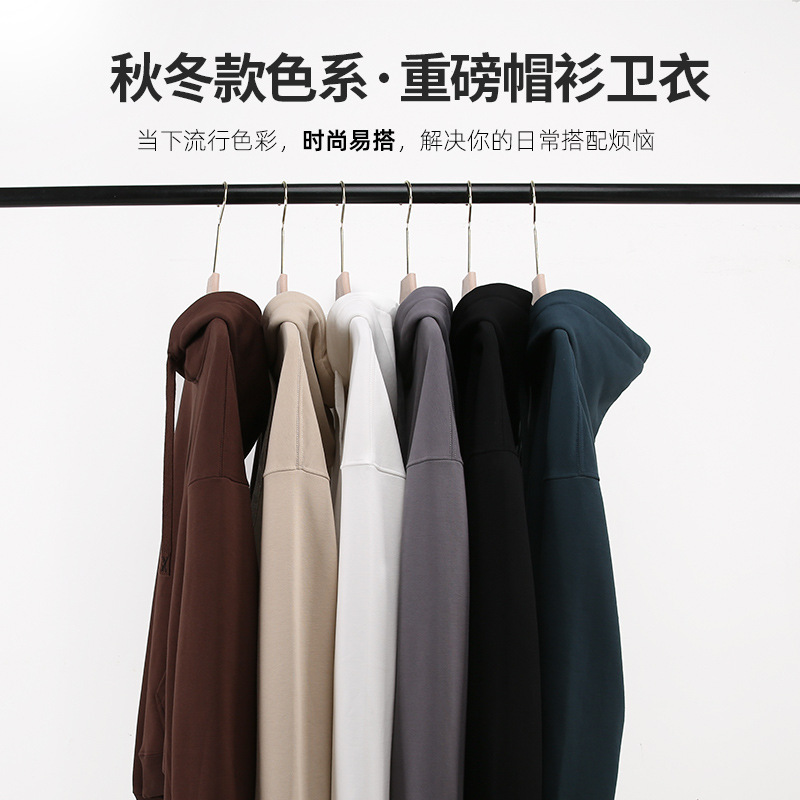 男女秋冬季新款六色600g重磅连帽纯色卫衣美式宽松落肩纯色打底衫
