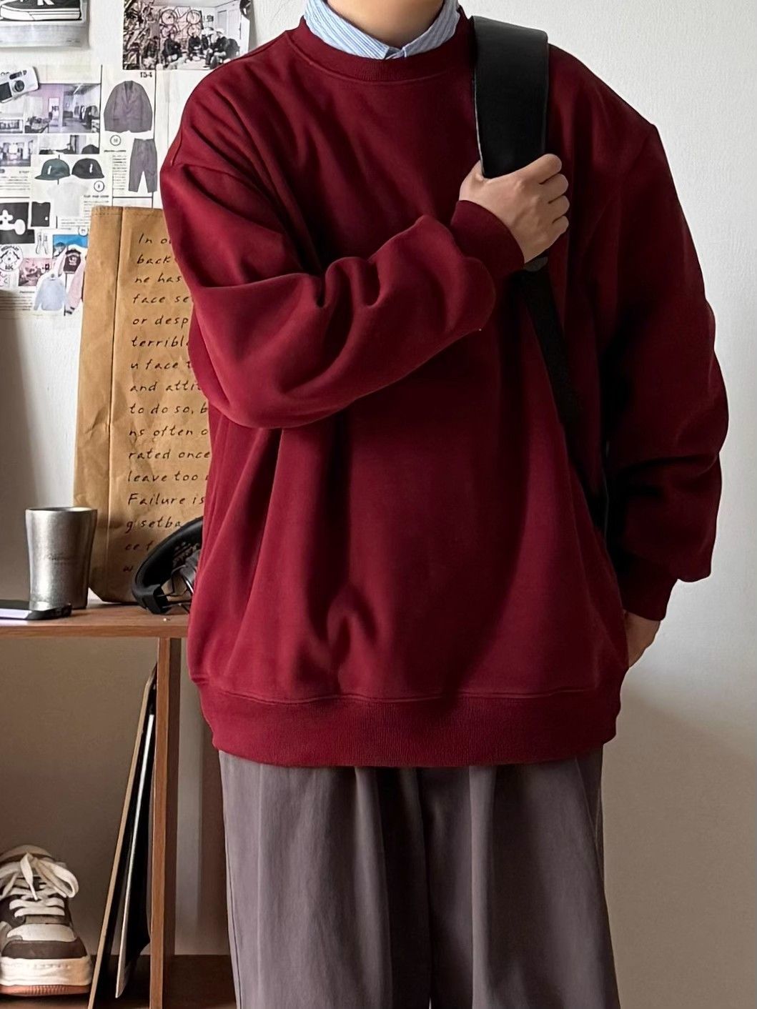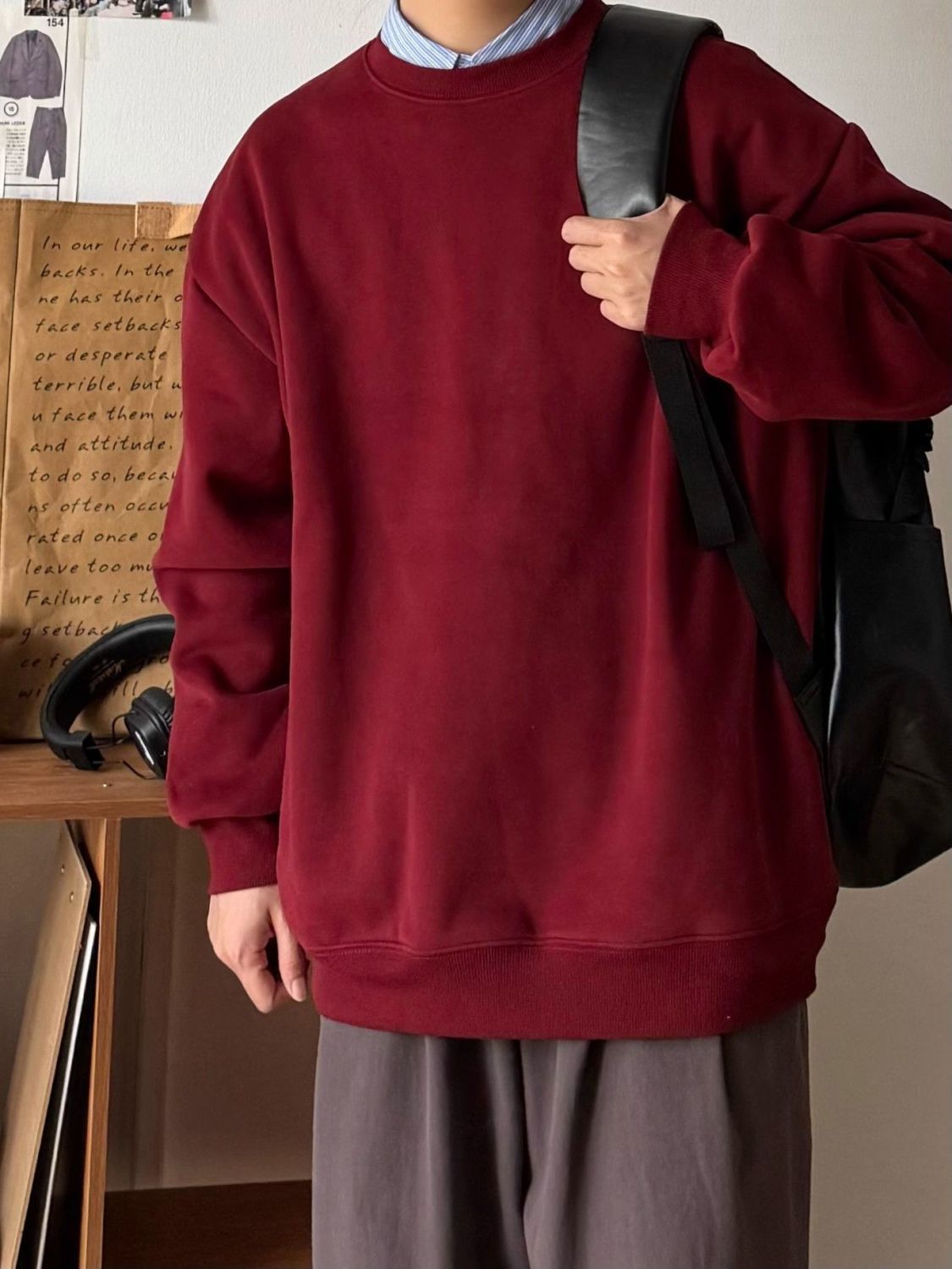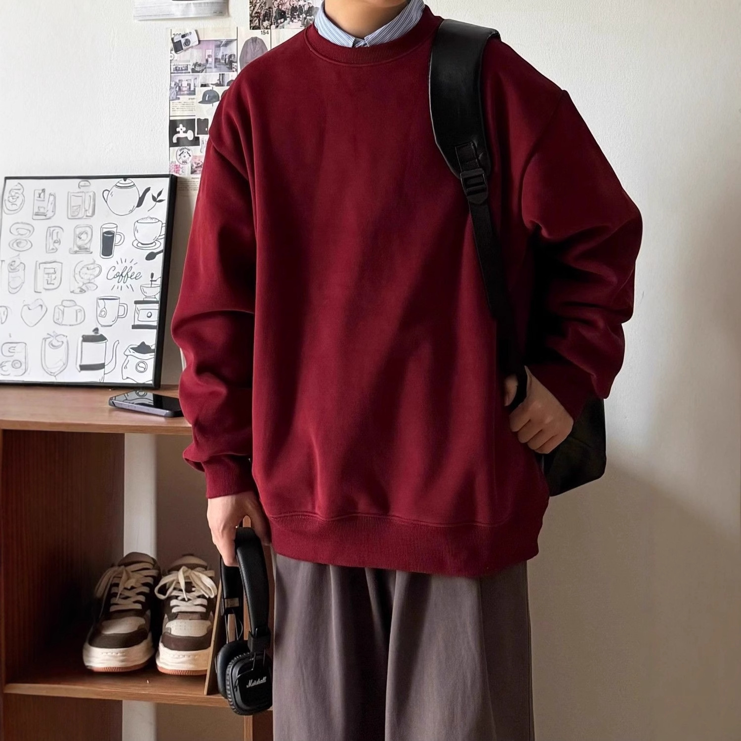 酒红色男女同款秋冬季基础保暖加厚cleanfit圆领纯情侣长袖卫衣