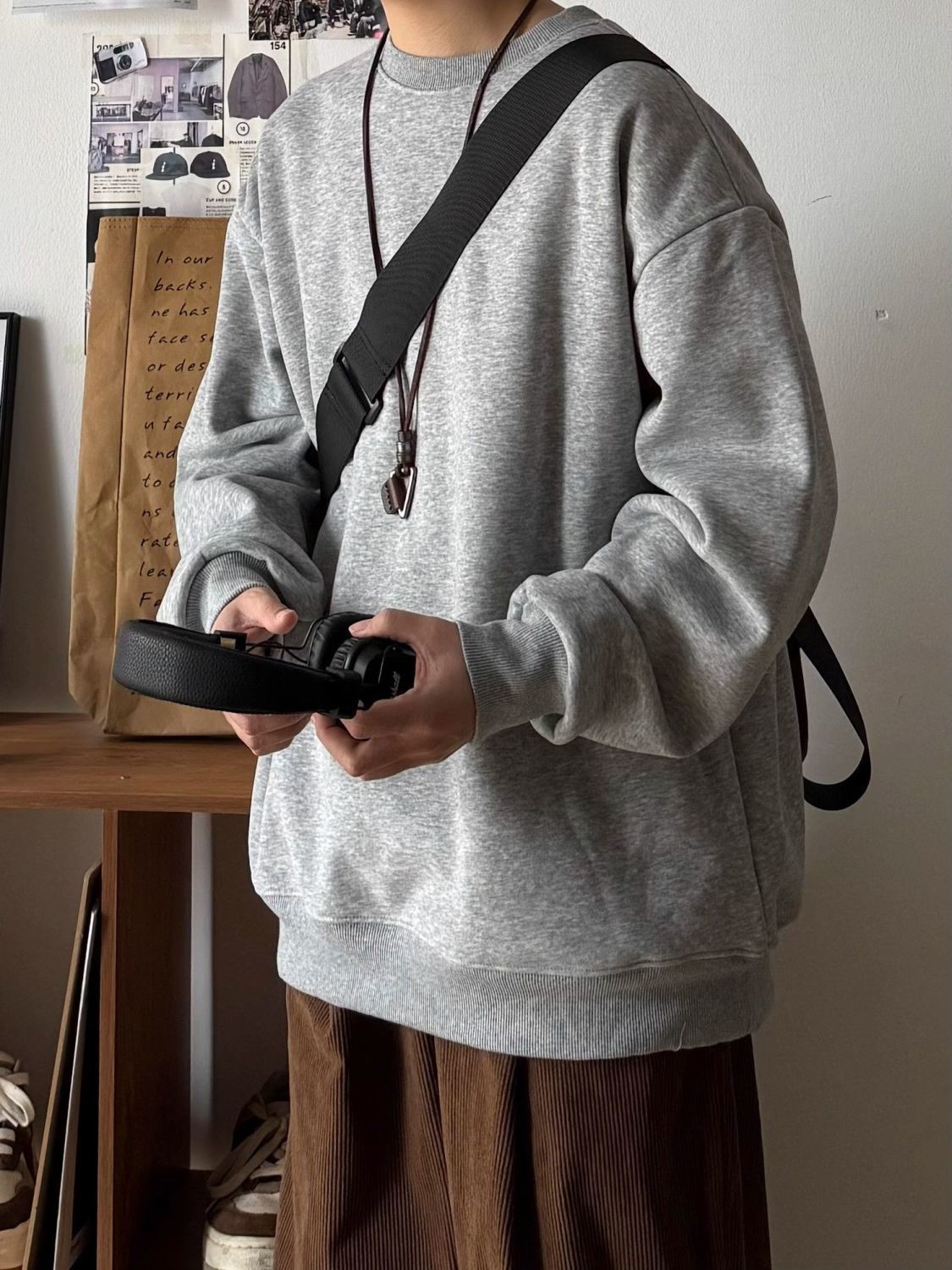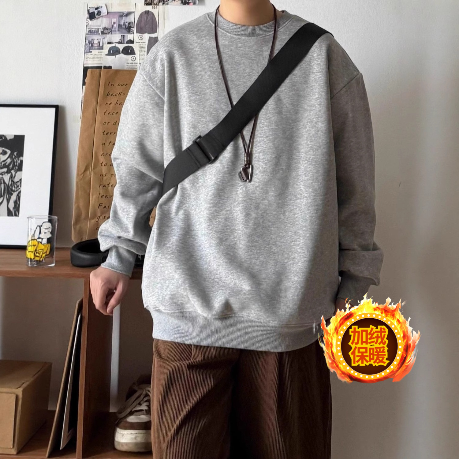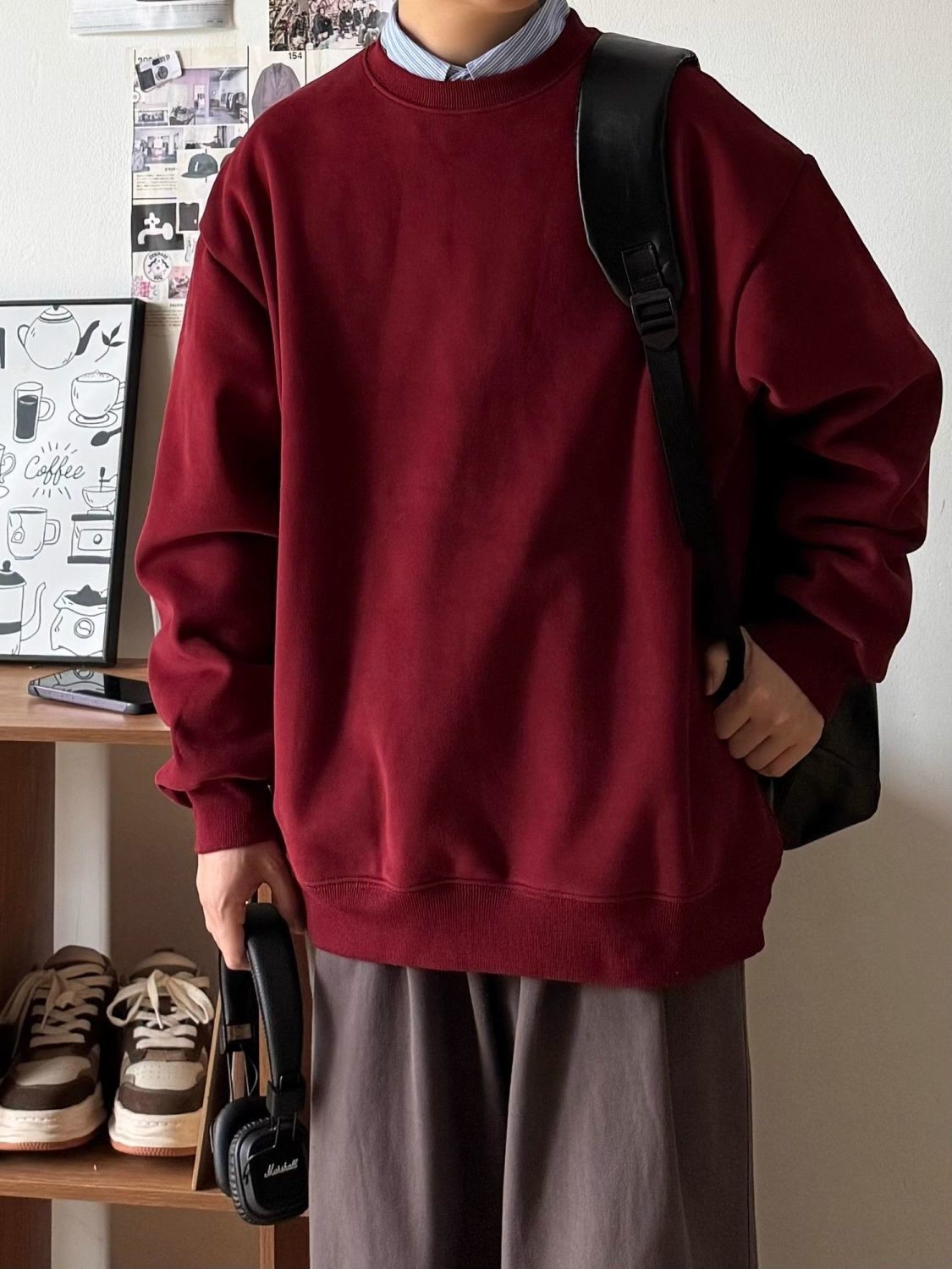 酒红色男女同款秋冬季基础保暖加厚cleanfit圆领纯情侣长袖卫衣