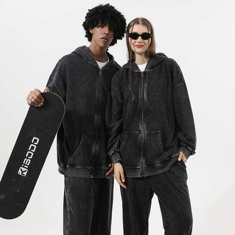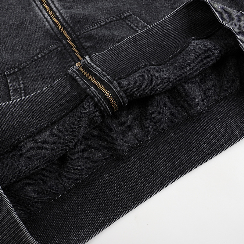 350G复古水洗拉链开衫卫衣跨境新款连帽春秋男女同款做旧卫衣外套