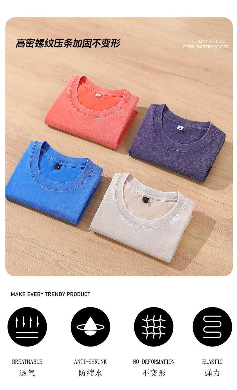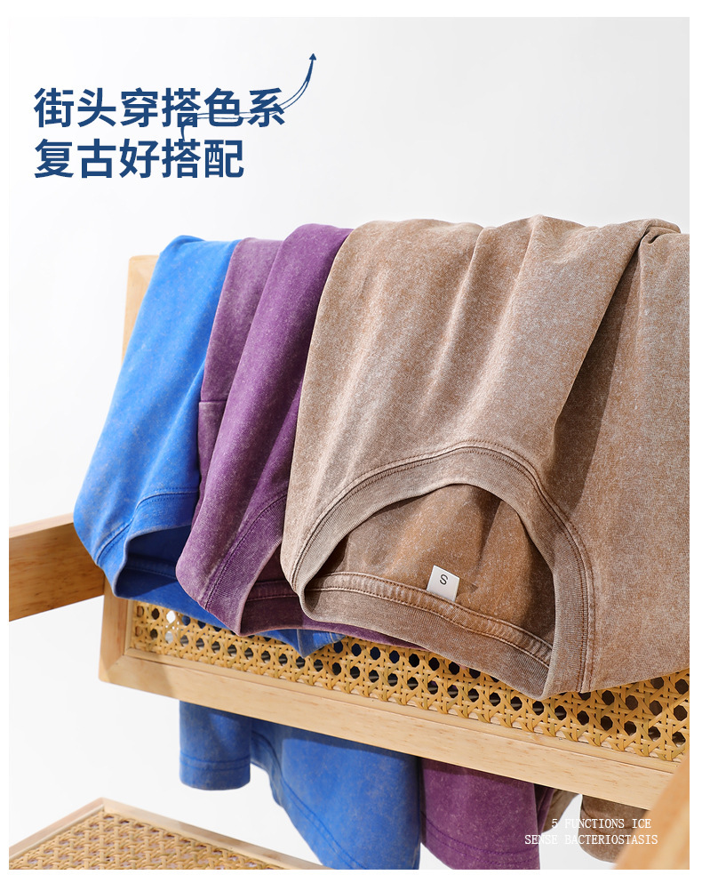 250g跨境水洗做旧T恤潮牌纯棉蜡染复古短袖雪花洗水宽松oversize