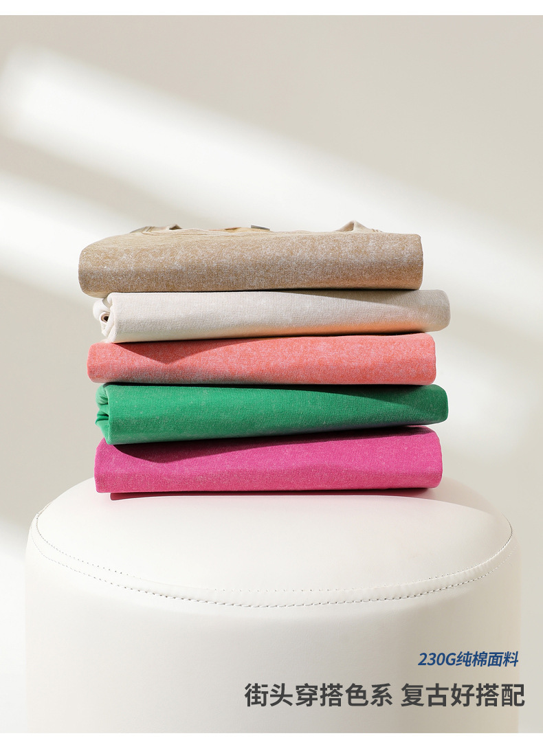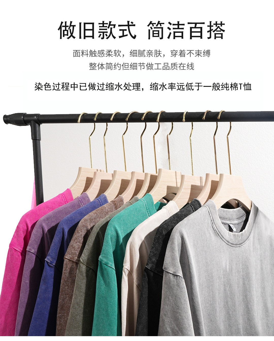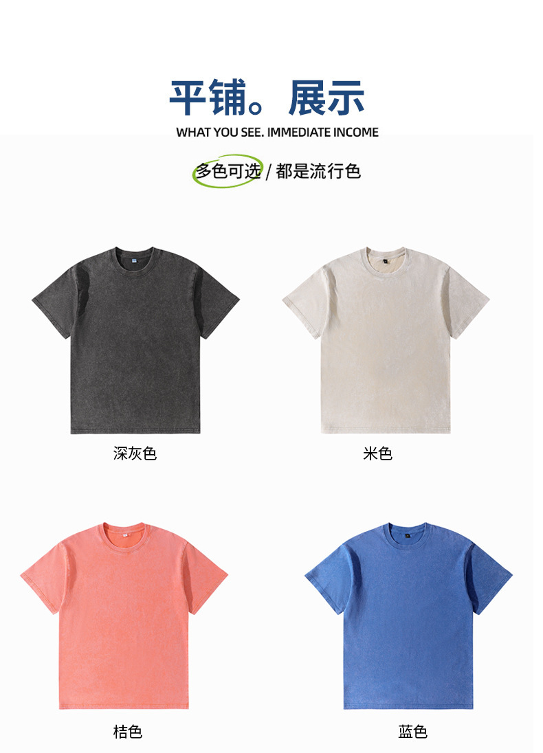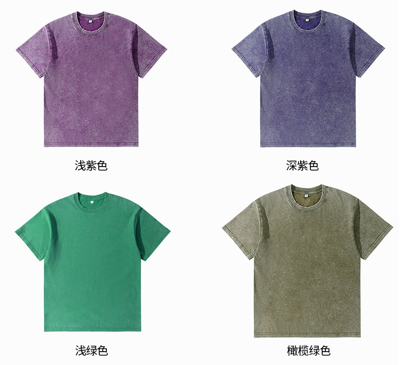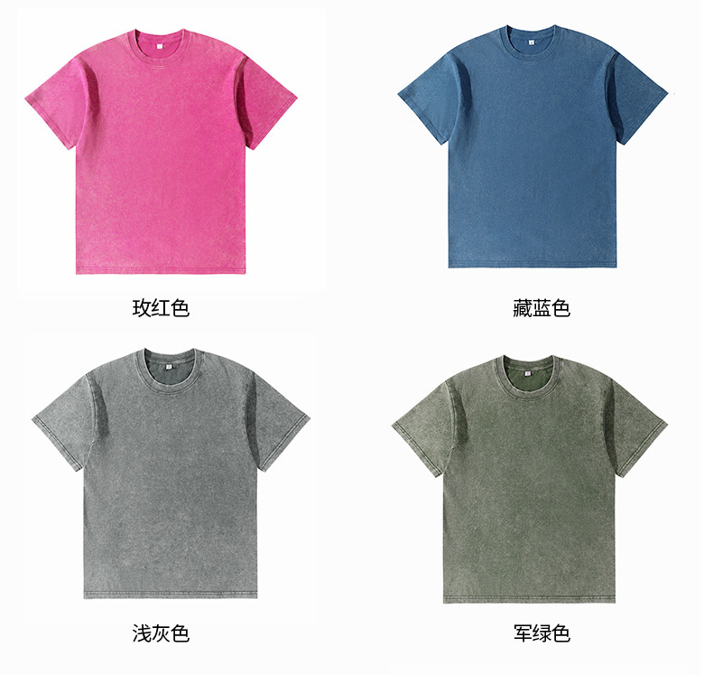 250克重磅水洗T恤纯棉做旧砂洗美式复古宽松落肩跨境半袖