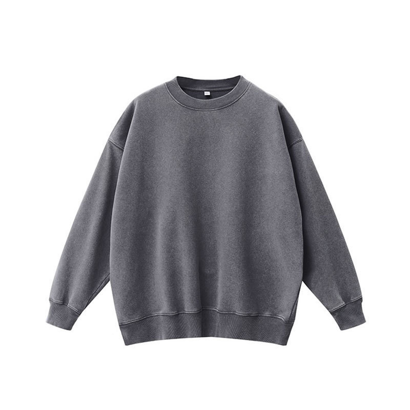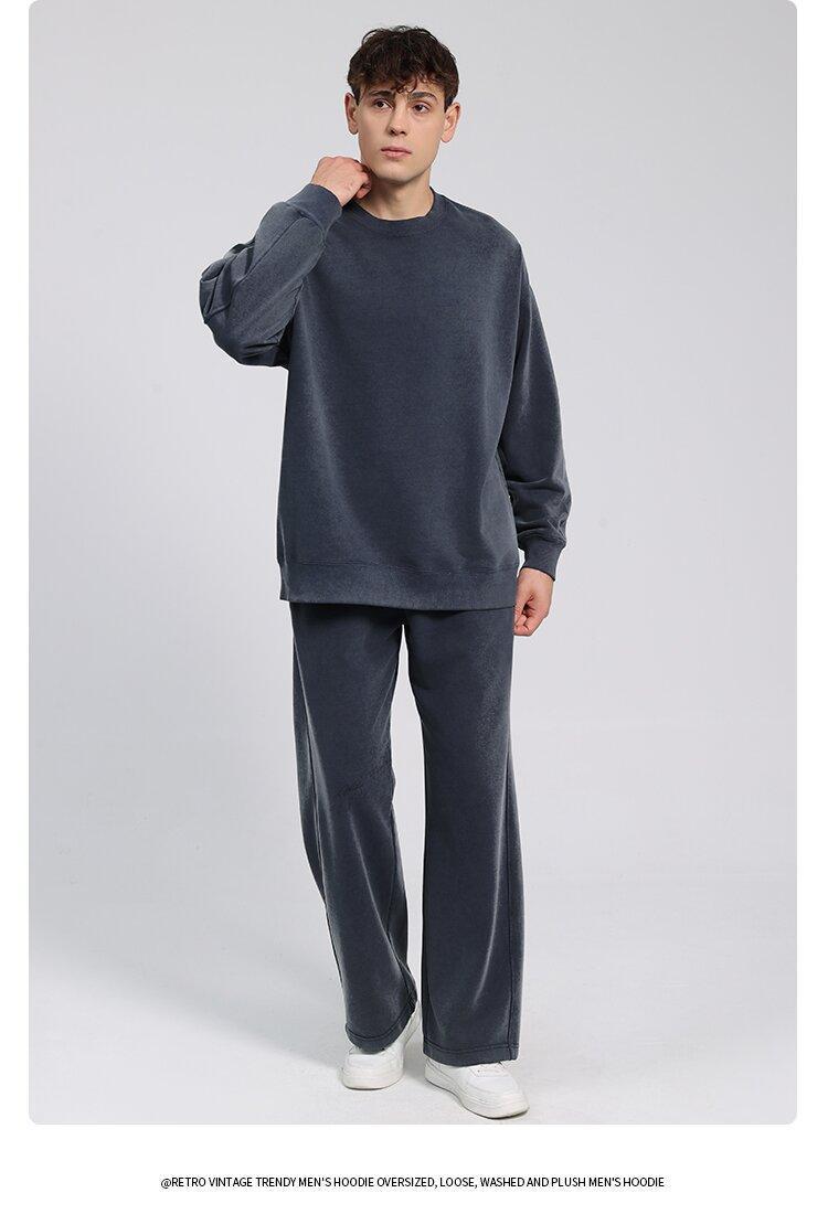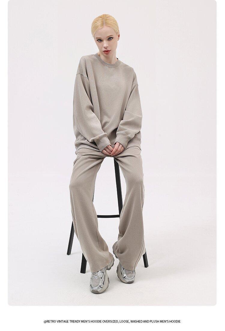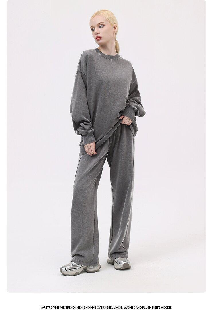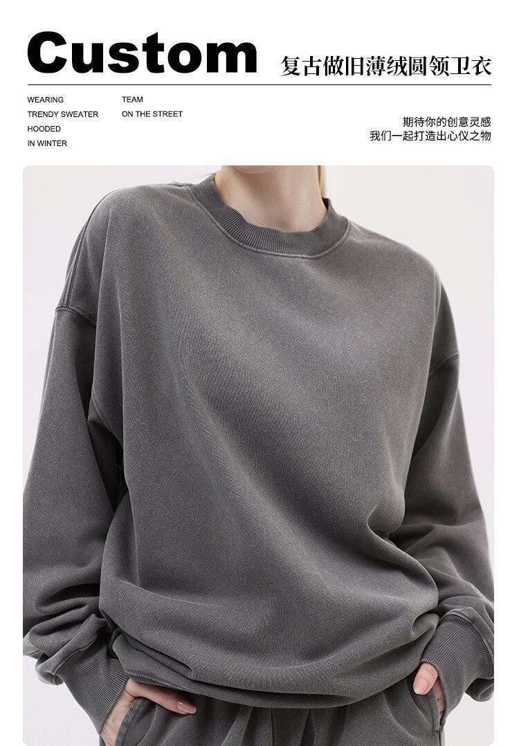400g水洗做旧圆领套头薄绒卫衣卫裤秋欧美复古运动衫跨境oversize
