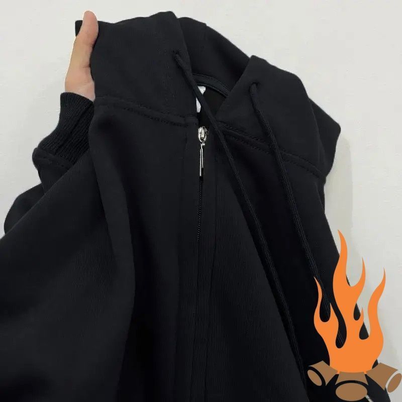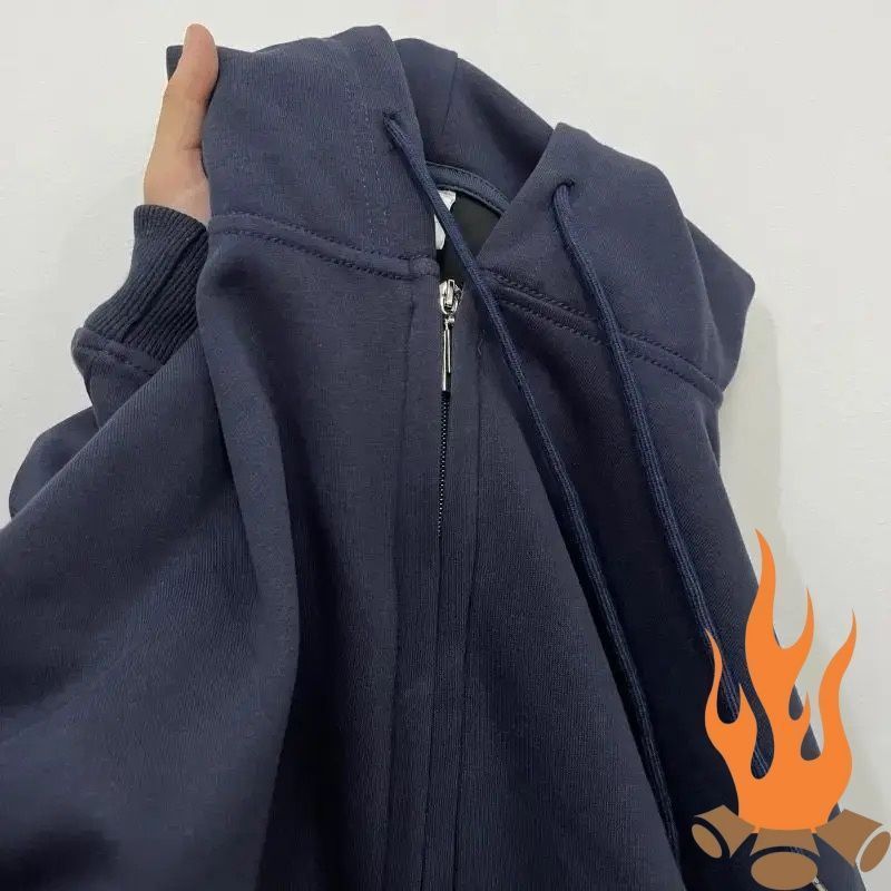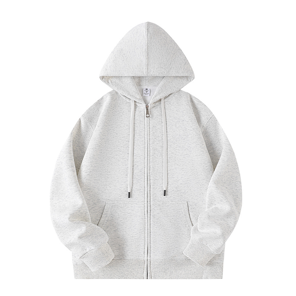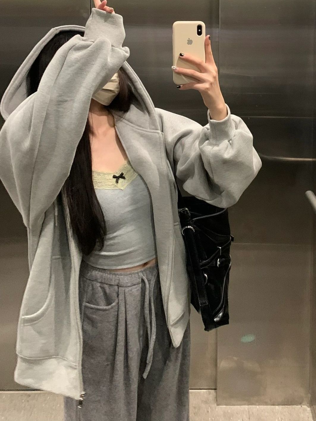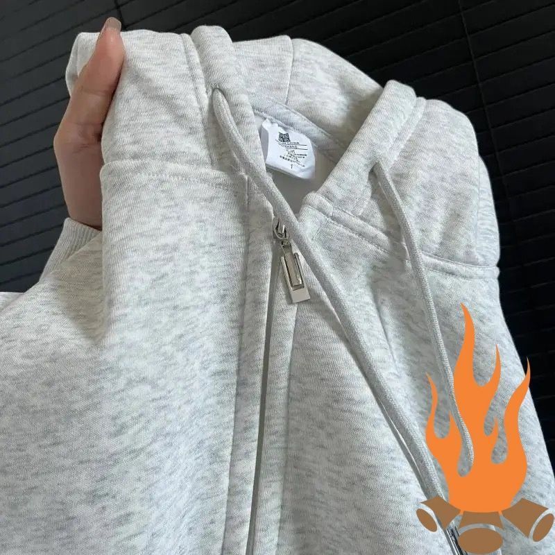 慵懒风卫衣女开衫拉链加绒加厚春秋冬季重磅潮牌纯色连帽外套上衣